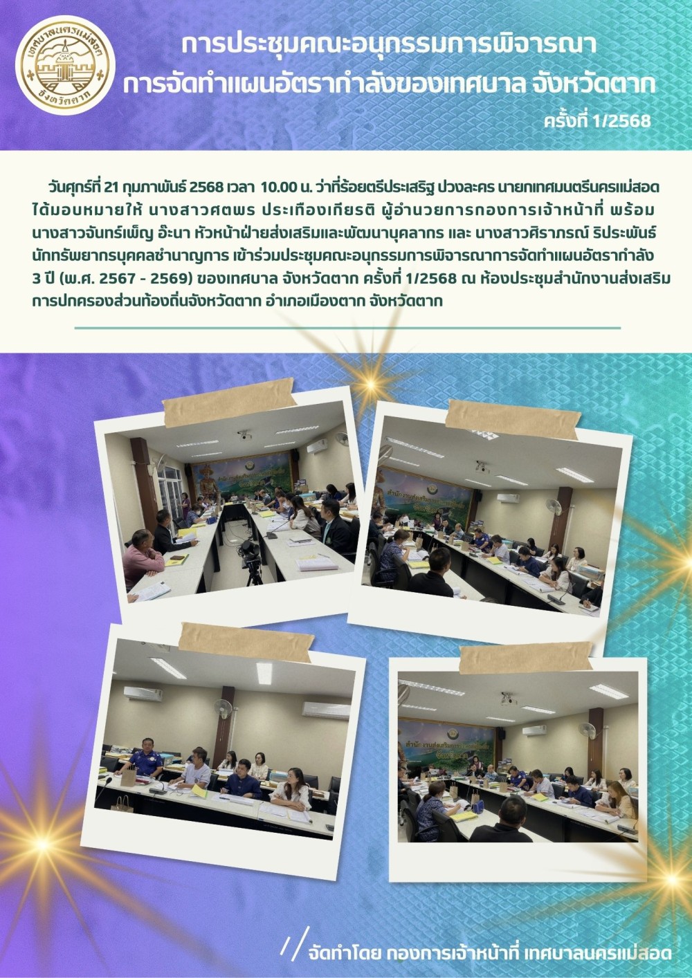 การประชุมคณะอนุกรรมการพิจารณาการจัดทำแผนอัตรากำลังของเทศบาล จังหวัดตาก ครั้งที่ 1/2568