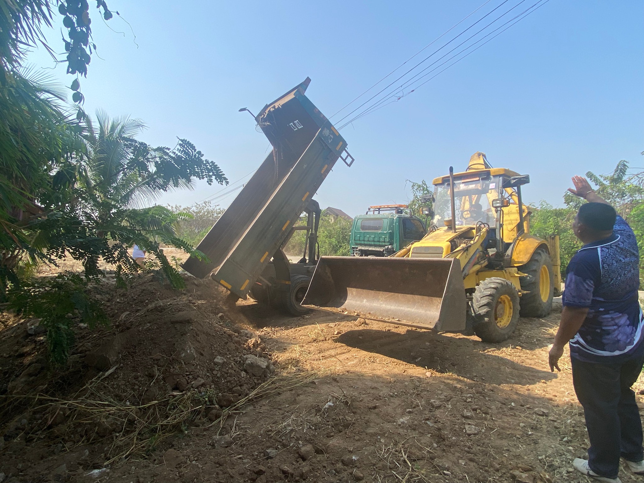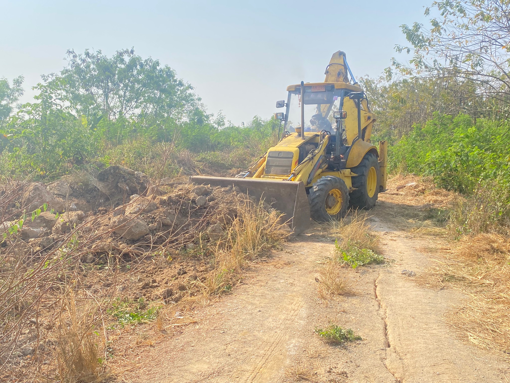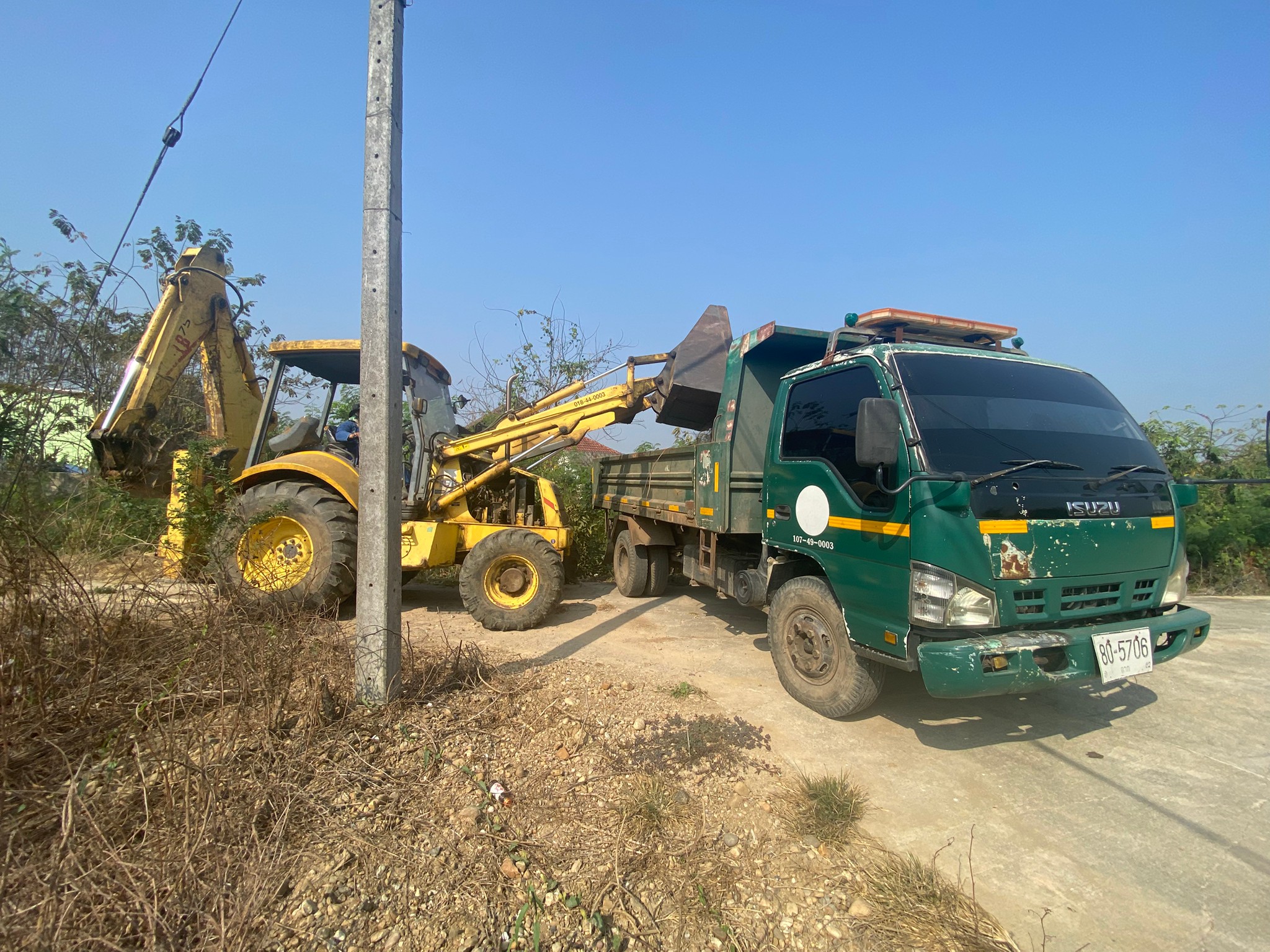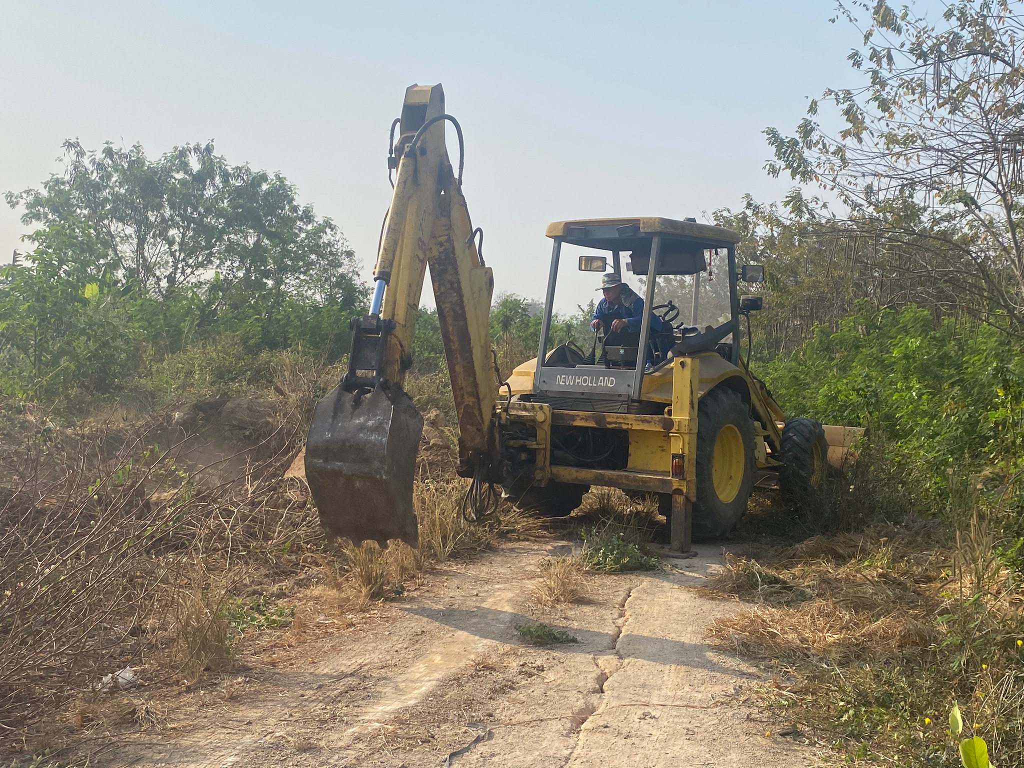 ไถปรับดิน บริเวณใกล้กับลำรางสาธารณะ ชุมชนแม่สอดวิลล่า (หน้านิพนธ์เต็นท์เช่า)