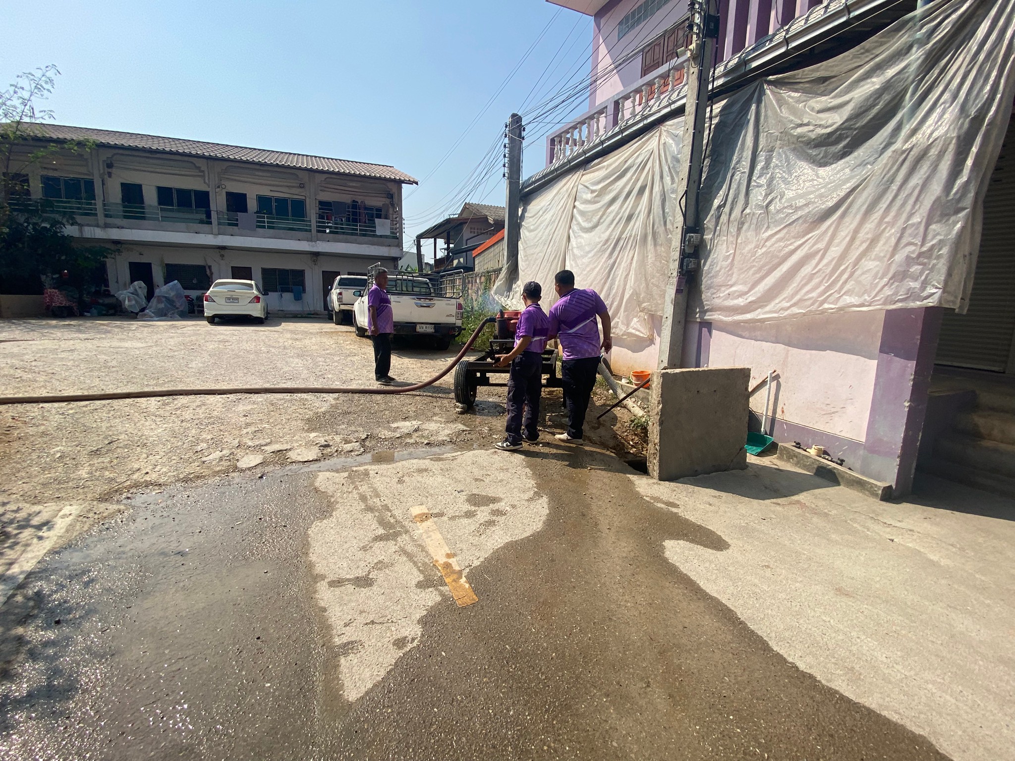 2. สูบน้ำเสียล้นท่อระบายน้ำ ซอยมะเท ตรงข้ามโรงเรียนแม่สอด