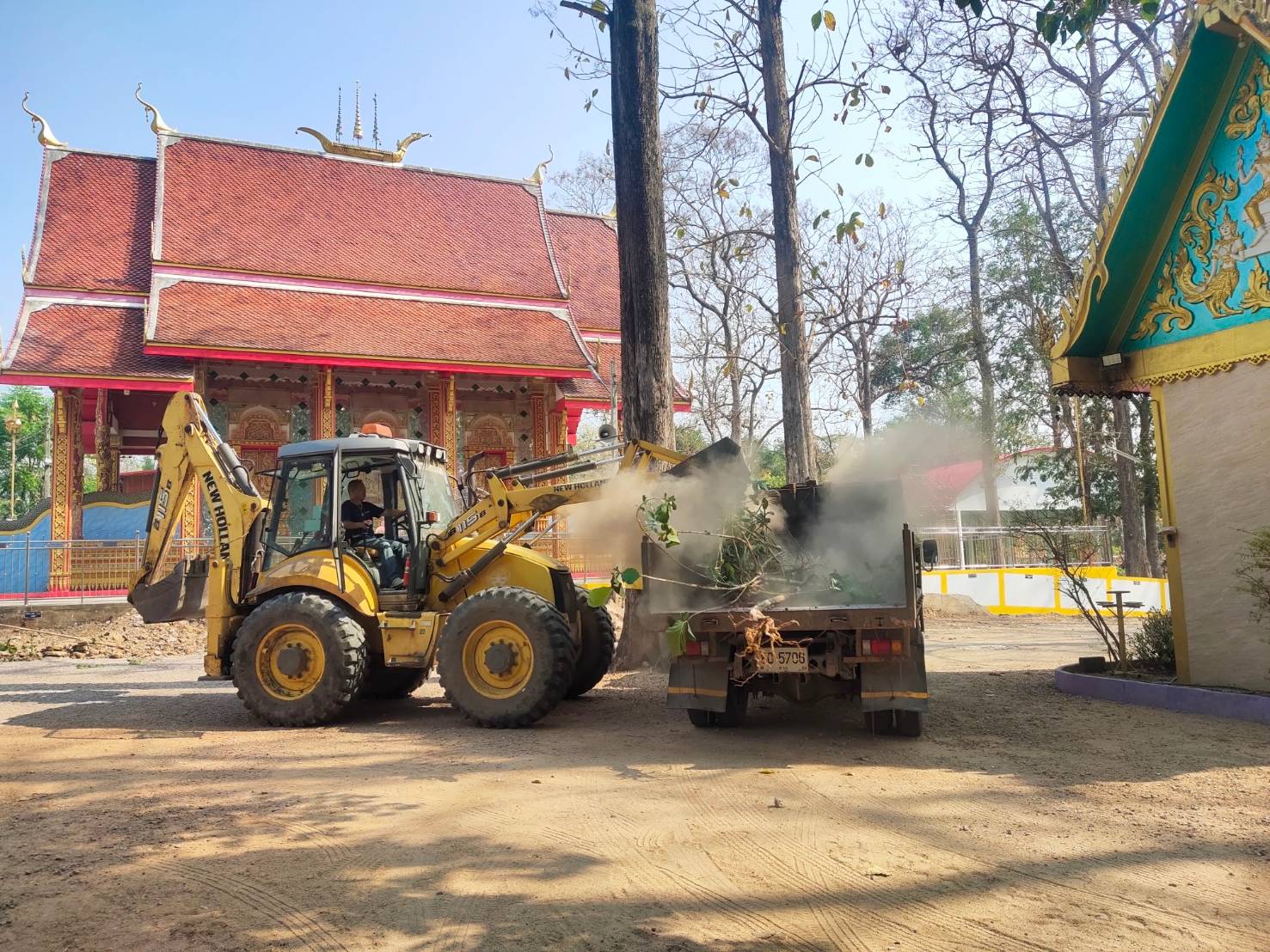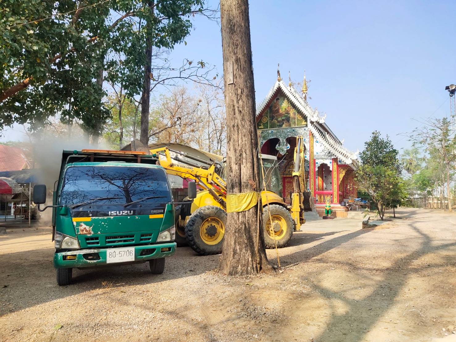 นำรถตักฯ พร้อมรถบรรทุก 6 ล้อ ตักเศษหิน,วัสดุก่อสร้าง ภายในวัดสักทอง