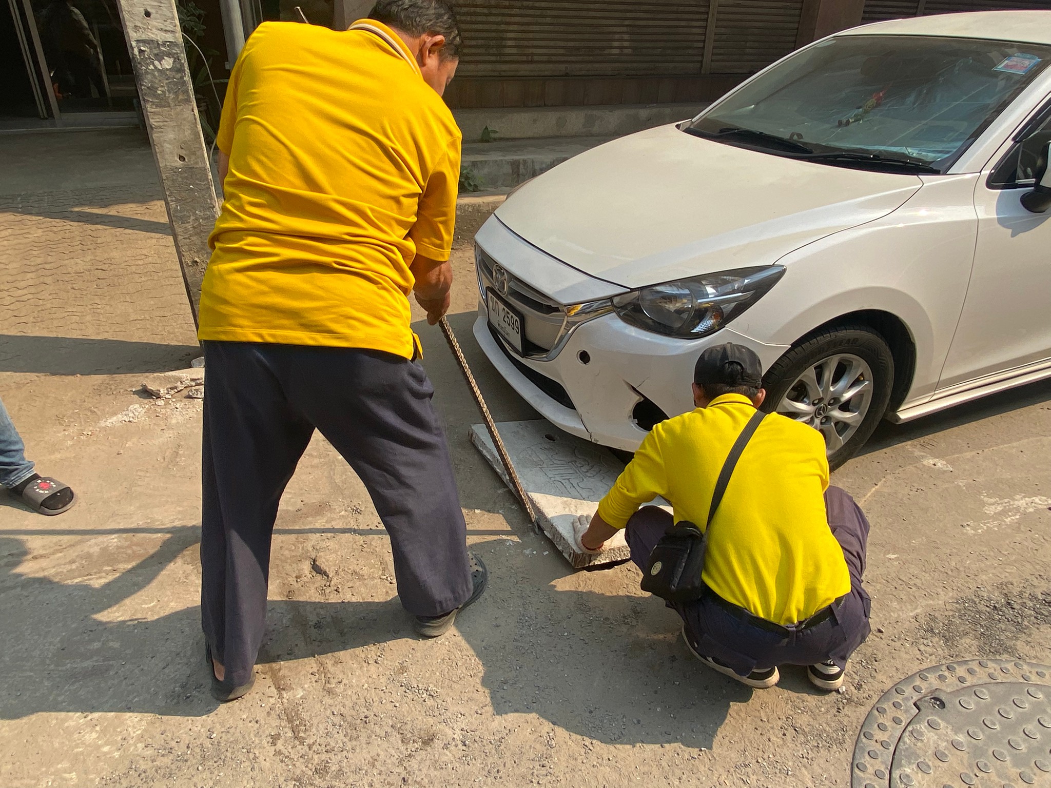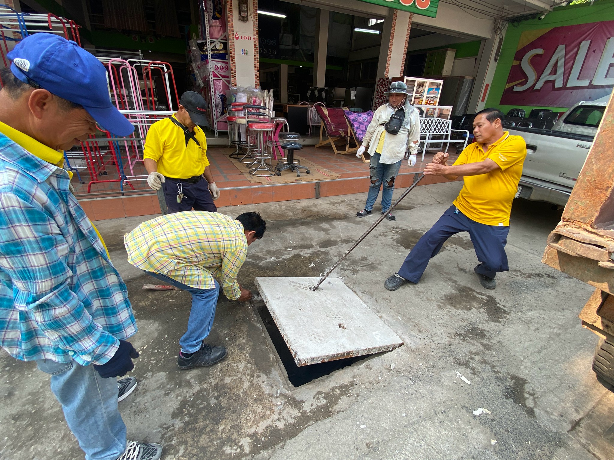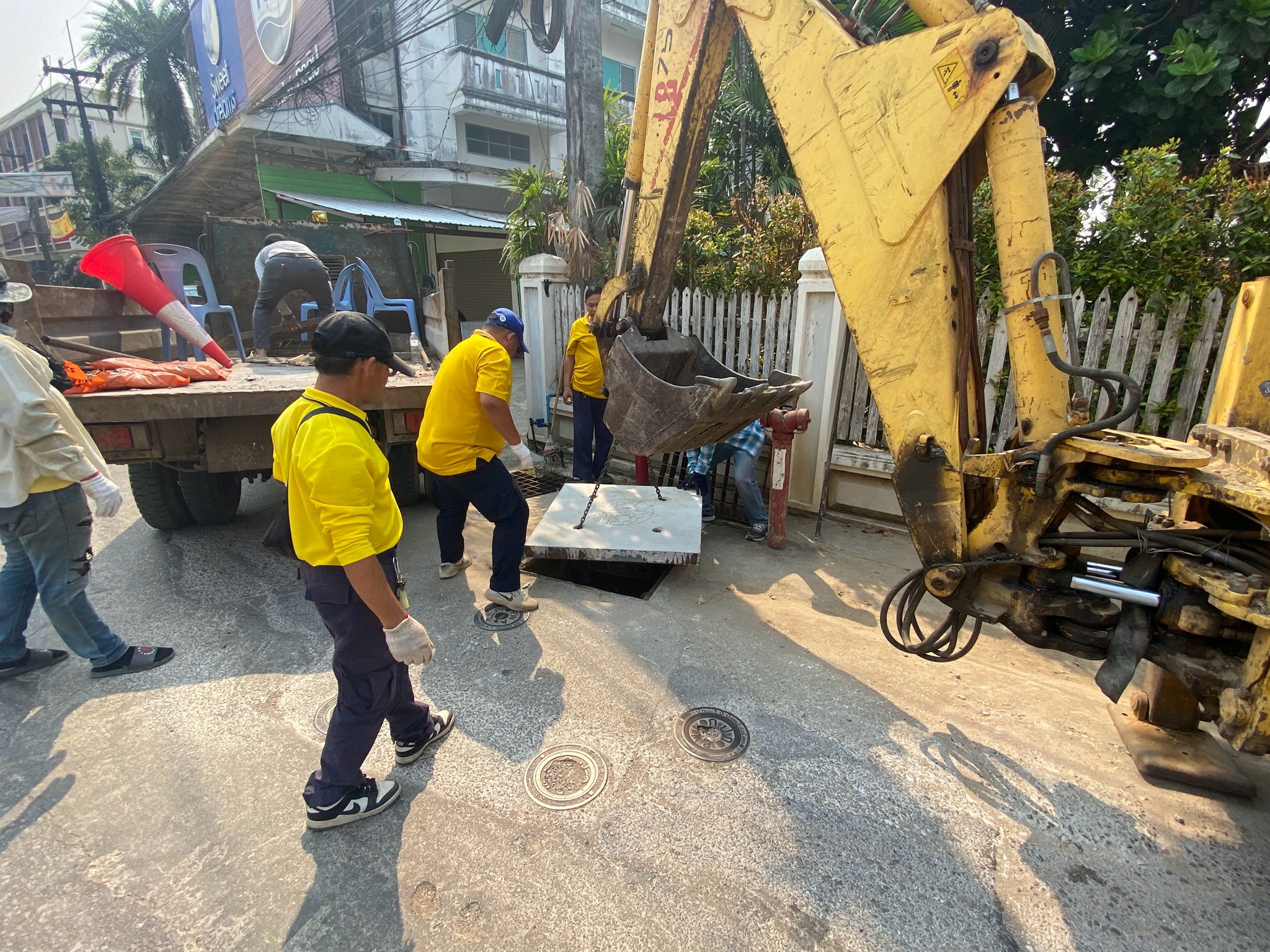ได้เข้าดำเนินการเปลี่ยนฝาท่อระบายน้ำ จำนวน 5 แห่ง 1. บริเวณฝั่งตรงข้ามฮงล้ง