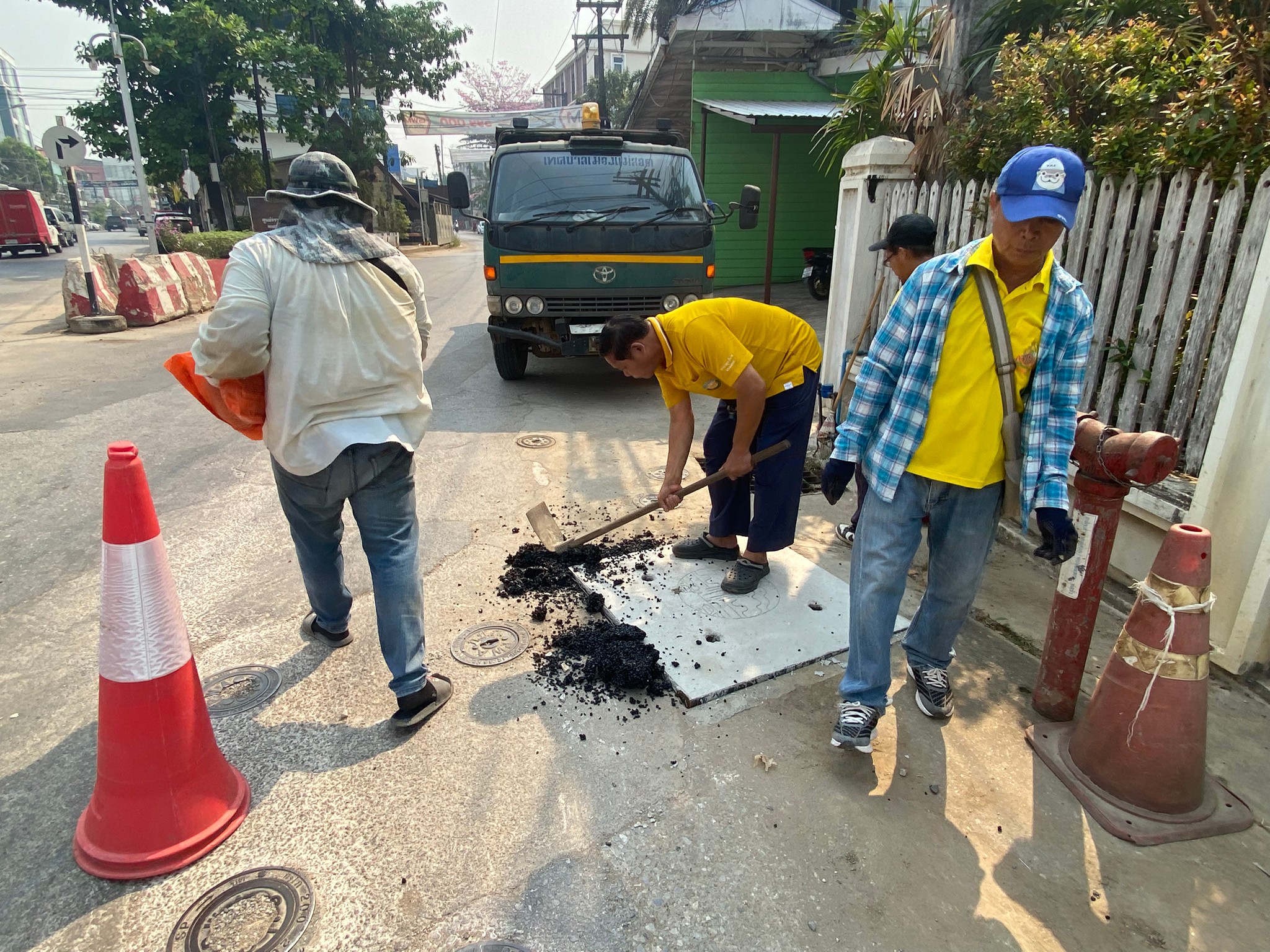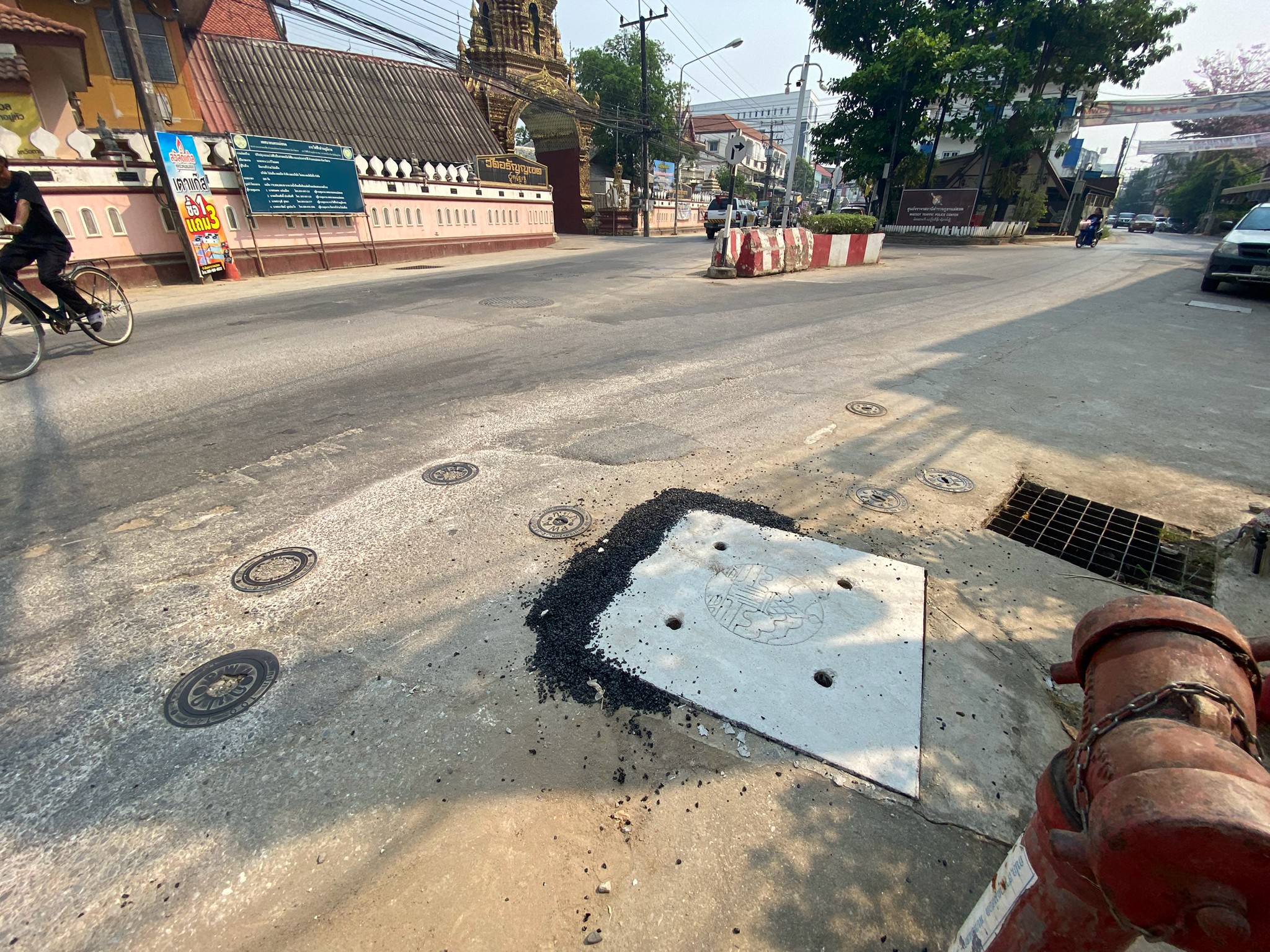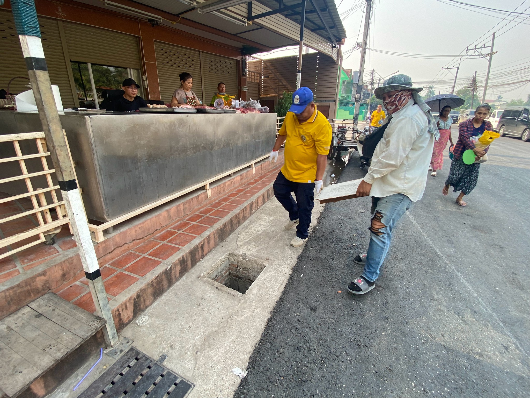 ได้เข้าดำเนินการเปลี่ยนฝาท่อระบายน้ำ จำนวน 5 แห่ง 1. บริเวณฝั่งตรงข้ามฮงล้ง