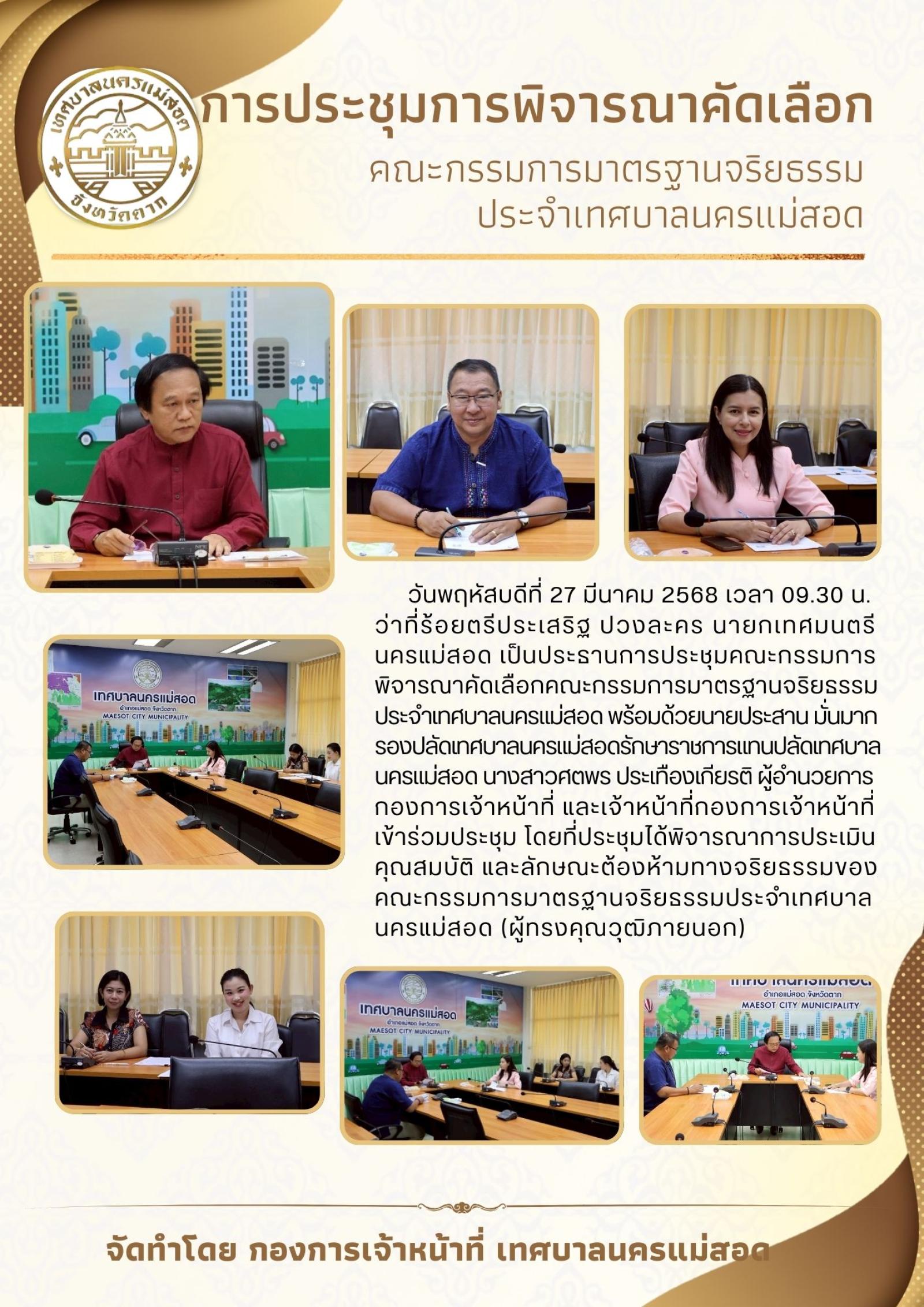 การประชุมการพิจารณาคัดเลือก คณะกรรมการมาตรฐานจริยธรรมประจำเทศบาลนครแม่สอด
