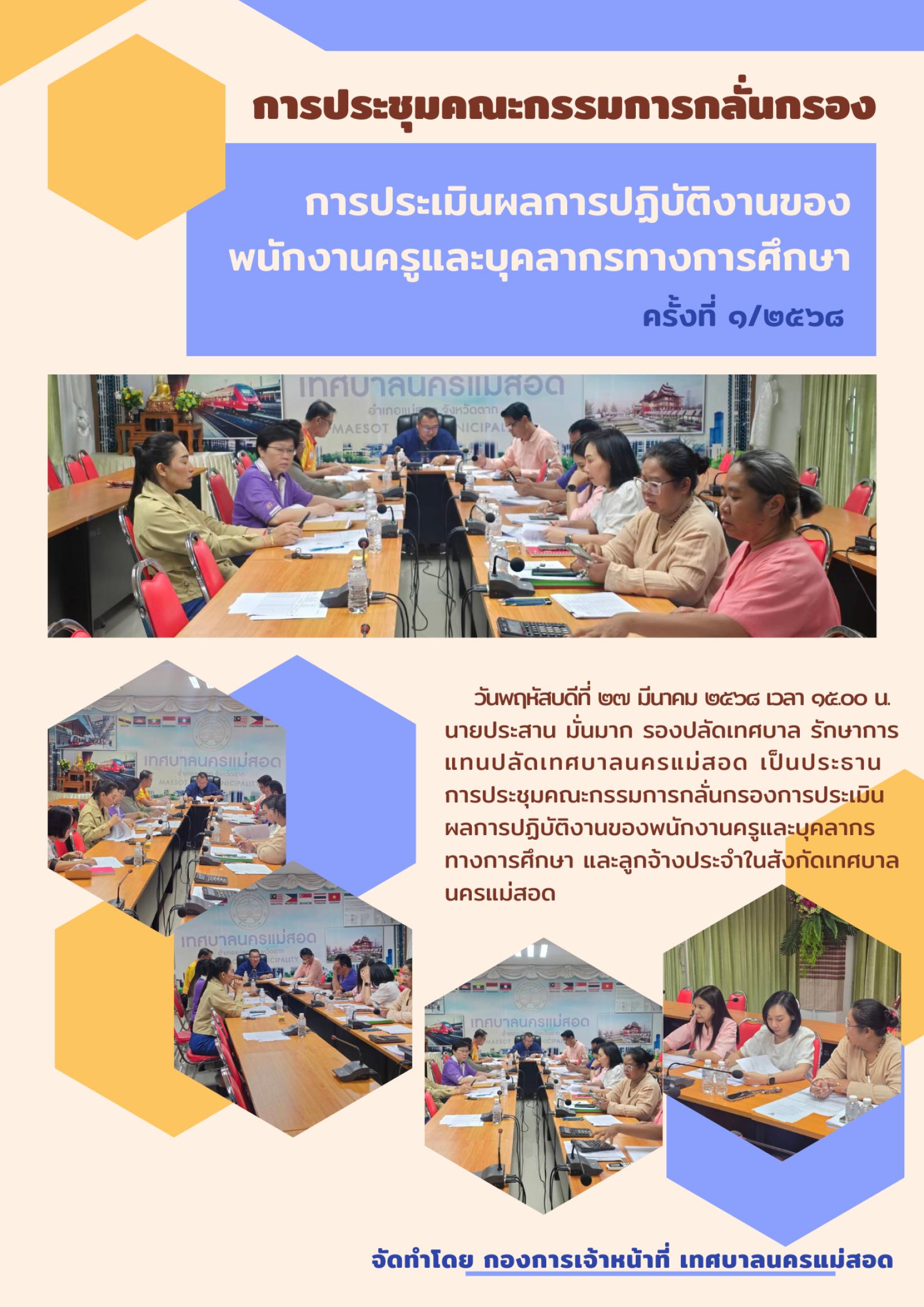 การประชุมคณะกรรมการกลันกรองการประเมินผลการปฏิบัติงานของพนักงานครูและบุคลากรทางการศึกษา สังกัดเทศบาลนครแม่สอด ครั้งที่ 1/2568