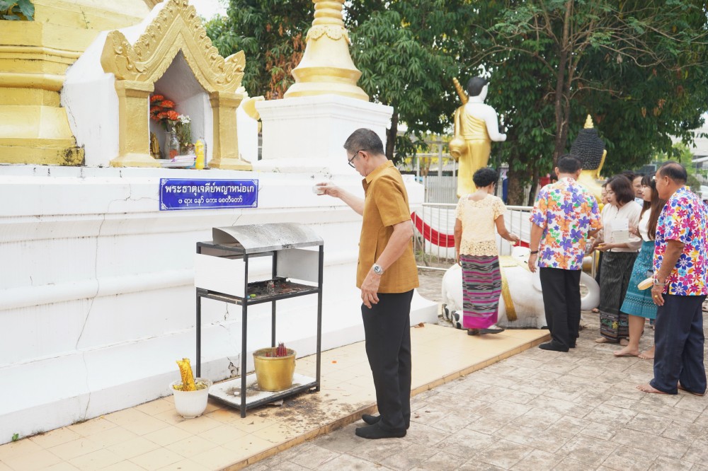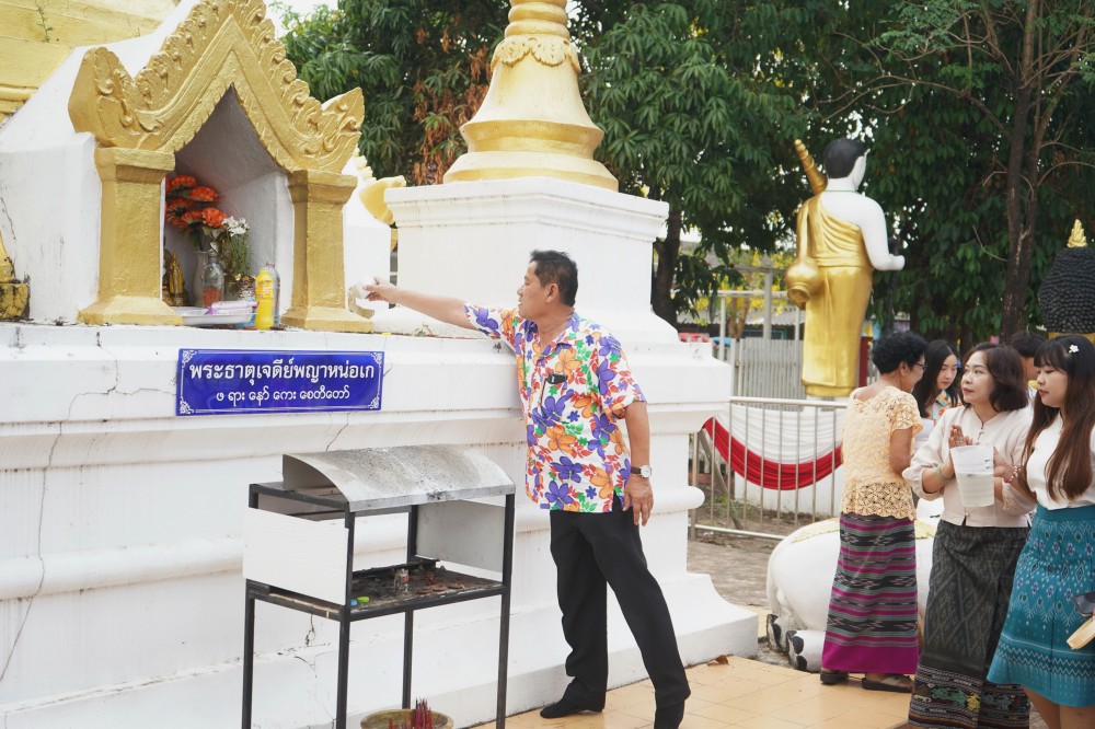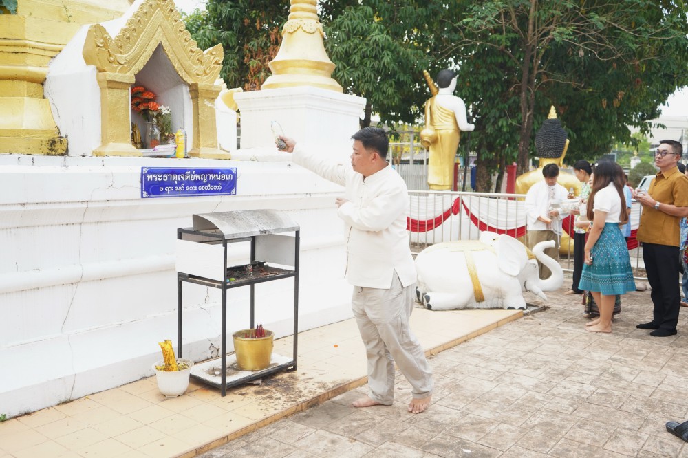 วันที่ 15 เมษายน 2568 เทศบาลนครแม่สอดร่วมกับวัดดอนแก้วจัดกิจกรรมสรงน้ำพระธาตุเจดีย์วัดดอนแก้ว (หมู่บ้านหน่อเก) ประจำปี 2568 ณ วัดดอนแก้ว โดยได้รับเกียรติจากนายเฉลิมเกียรติ ปัญญาสว่าง ผู้อำนวยการกองสาธารณสุขแล้วสิ่งแวดล้อม รักษาราชการแทนรองปลัดเทศบาล ปฏิบัติราชการแทนปลัดเทศบาลนครแม่สอด เป็นประธานในการจัดกิจกรรมครั้งนี้ กิจกรรมสรงน้ำพระธาตุเจดีย์วัดดอนแก้ว (หมู่บ้านหน่อเก) เป็นกิจกรรมที่จัดขึ้นเป็นประจำทุกปี เพื่อรสักการะพระธาตุ เสริมสร้างความเป็นสิริมงคลในช่วงเทศกาลวันสงกรานต์