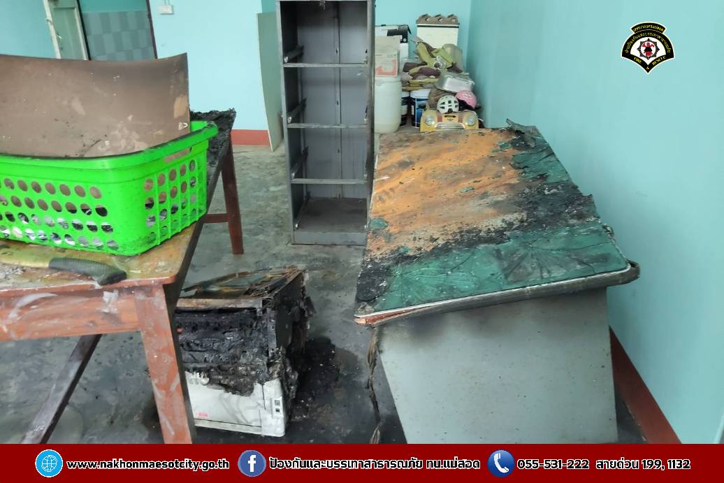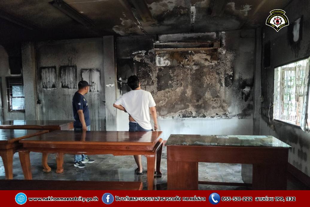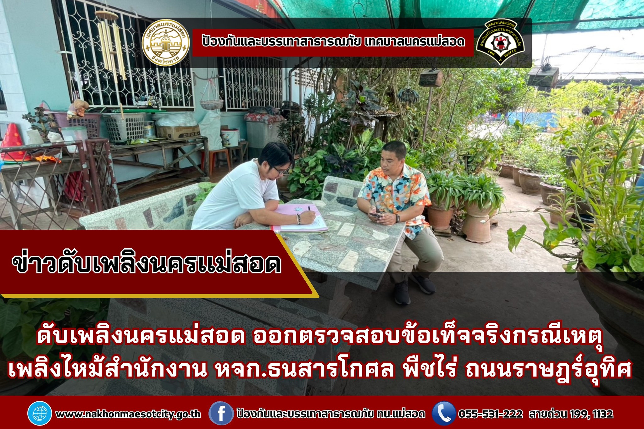 ดับเพลิงนครแม่สอด ออกตรวจสอบข้อเท็จจริงกรณีเหตุเพลิงไหม้สำนักงาน หจก.ธนสารโกศล พืชไร่ ถนนราษฎร์อุทิศ
