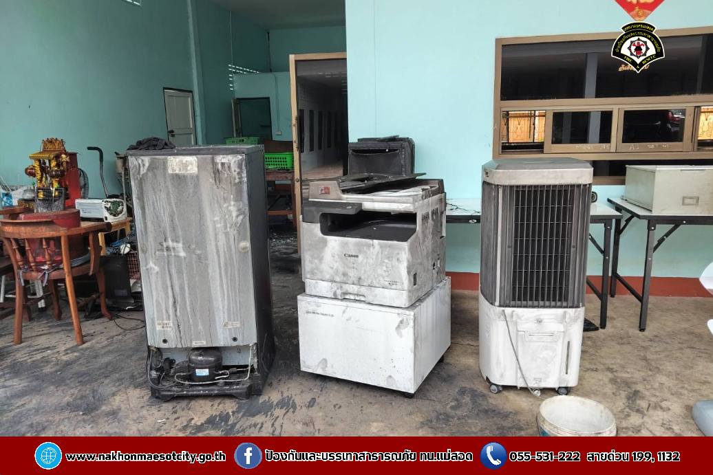 วันที่จันทร์ที่ 14 เมษายน 2568 เวลา 09.00 น. เจ้าหน้าที่ฝ่ายป้องกันและบรรเทาสาธารณภัย สำนักปลัดเทศบาล เทศบาลนครแม่สอด ลงพื้นที่สำรวจตรวจสอบข้อเท็จจริงกรณีเหตุเพลิงไหม้ เมื่อวันอาทิตย์ที่ 13 เมษายน 2568 เวลาประมาณ 07.00 น. ณ สำนักงาน หจก.ธนสารโกศล พืชไร่ ถนนราษฎร์อุทิศ อำเภอแม่สอด จังหวัดตาก พบว่าเป็นเพราะสาเหตุไฟฟ้าลัดวงจร จึงได้พิจารณาดำเนินการตามระเบียบต่อไป