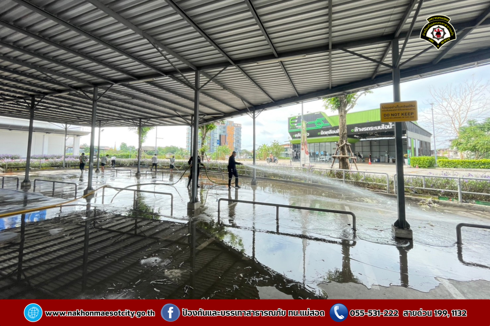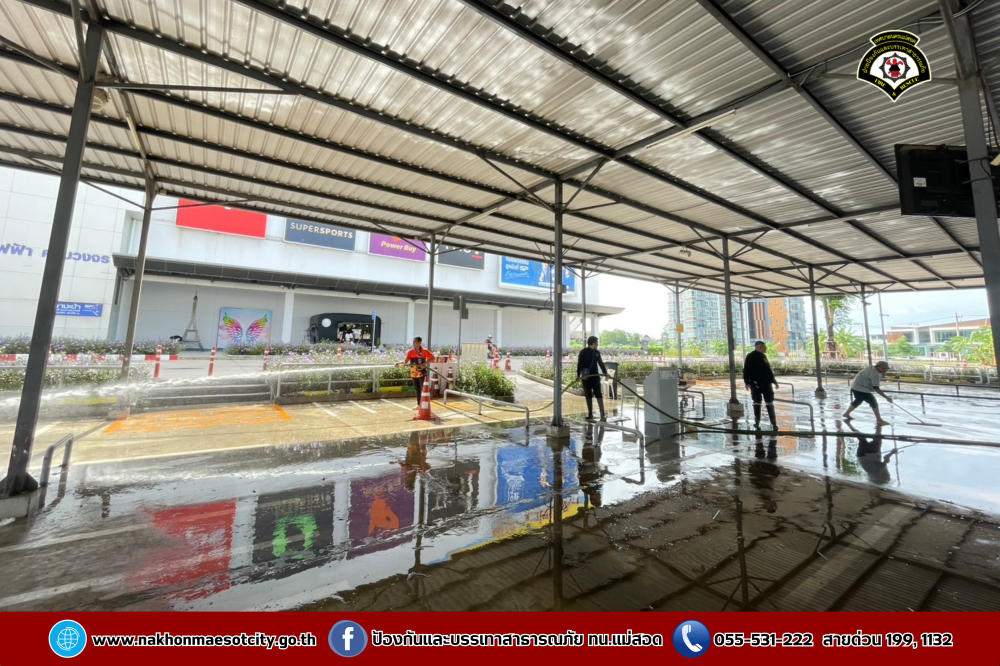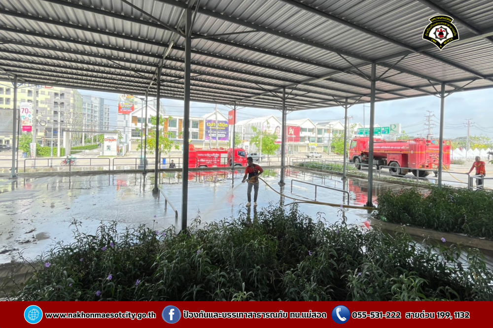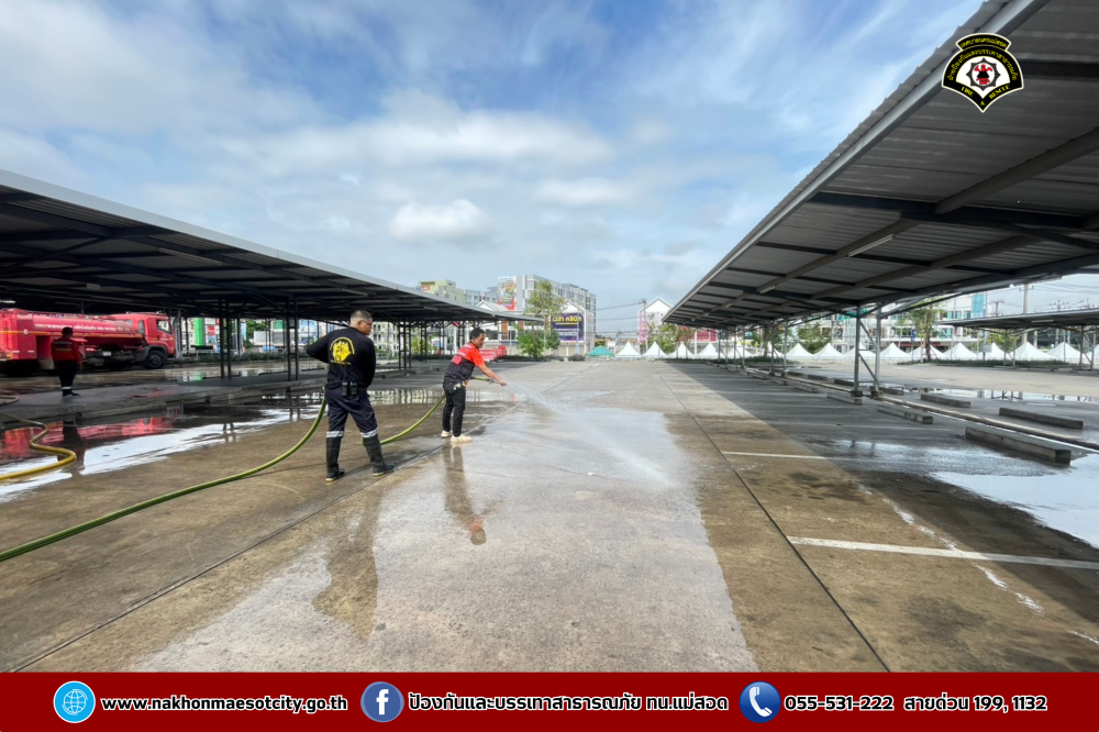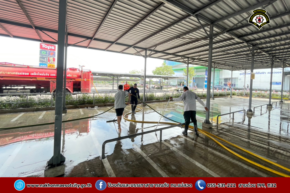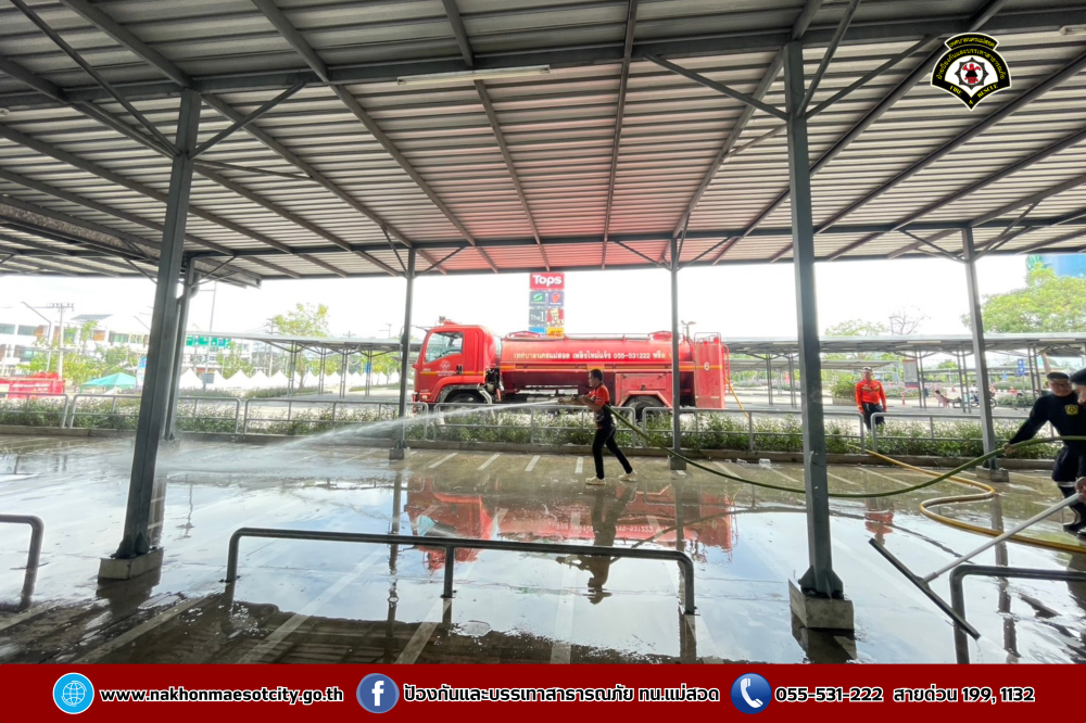 ฝ่ายป้องกันบรรเทาสาธารณภัย สำนักปลัดเทศบาล เทศบาลนครแม่สอด นำรถยนต์บรรทุกน้ำดับเพลิง จำนวน 2 คัน พร้อมชุดปฏิบัติการที่ 1 ออกดำเนินการร่วมพนักงาน โรบินสัน ไลฟ์สไตล์ แม่สอด จัดกิจกรรม Big Cleaning Day ทำความสะอาดลานจอดรถและลานสเก็ตบอร์ด เนื่องจากเมื่อวันที่ 13-15 เมษายน 2568 ได้จัดเป็นจุดให้เล่นน้ำสงกรานต์ (Zoning) เพื่อเป็นการรักษาความสะอาด