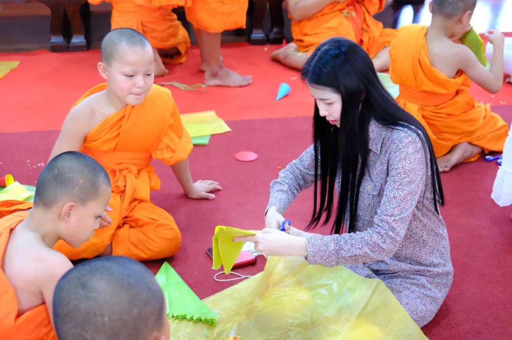 วันอังคาร ที่ 8 เมษายน 2568 เวลา 13.00 - 15.00 น. นายสุมิตร กัญจะนะ ผู้อำนวยการกองสวัสดิการสังคม พร้อมกับเจ้าหน้าที่กองสวัสดิการสังคมเข้าร่วมกิจกรรมสอนเณรในค่ายฤดูร้อนการทำตุงไส้หมู ณ วัดโพธิคุณ ตำบลแม่ปะ อำเภอแม่สอด จังหวัดตาก ผู้อำนวยการกองสวัสดิการสังคมพร้อมกับเจ้าหน้าที่ ซึ่งมีกิจกรรมร่วมกับเณร 36 รูป ซึ่งมีกิจกรรมการตัดทำตุงไส้หมู รวมถึงการเขียนข้อความคติเตือนใจการสอนให้เป็นคนดี ร่วมถึงการนันทนาการช่วยส่งเสริม สุขภาพจิต ให้กับเณร ให้รู้สึกสดชื่นแจ่มใสและผ่อนคลายความเครียด และช่วยลดความเสี่ยง ของภาวะความเครียดและภาวะซึมเศร้าได้ นอกจากนี้ยังทำกิจกรรมสอนการทำตุงไส้หมู เพื่อสืบสานวัฒนธรรมประเพณีชาวเหนือให้คงอยู่ต่อไป
