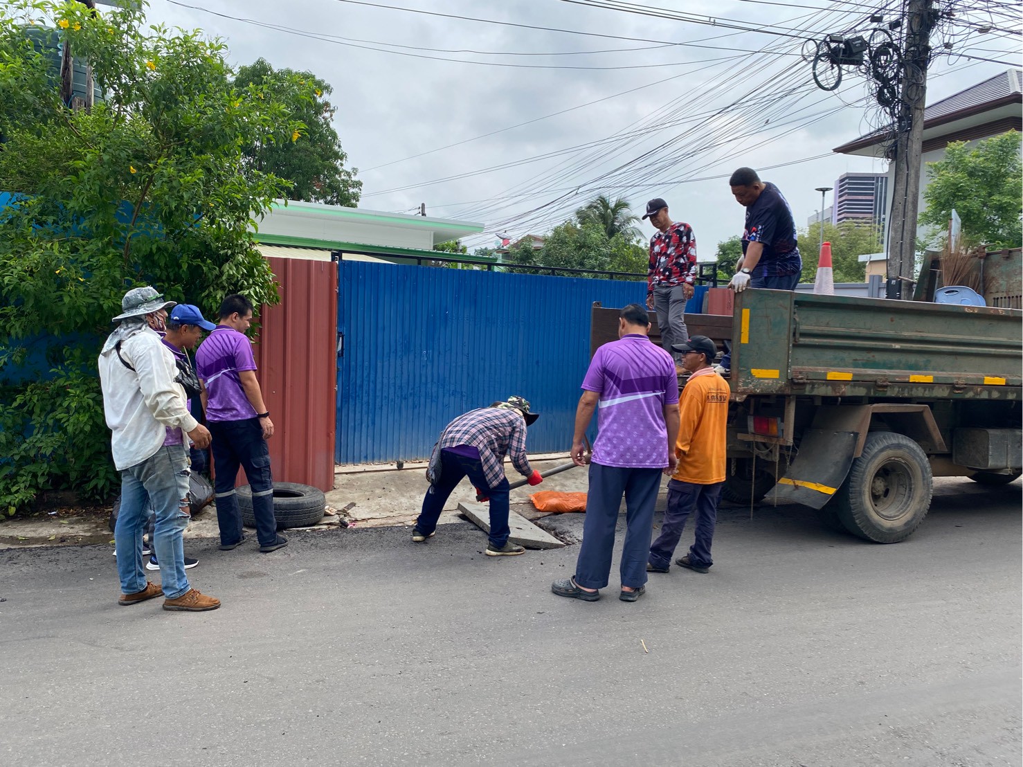 2. ได้เข้าดำเนินการเปลี่ยนฝาท่อระบายน้ำ บริเวณหมู่บ้านในฝัน ชุมชนร่วมแรง