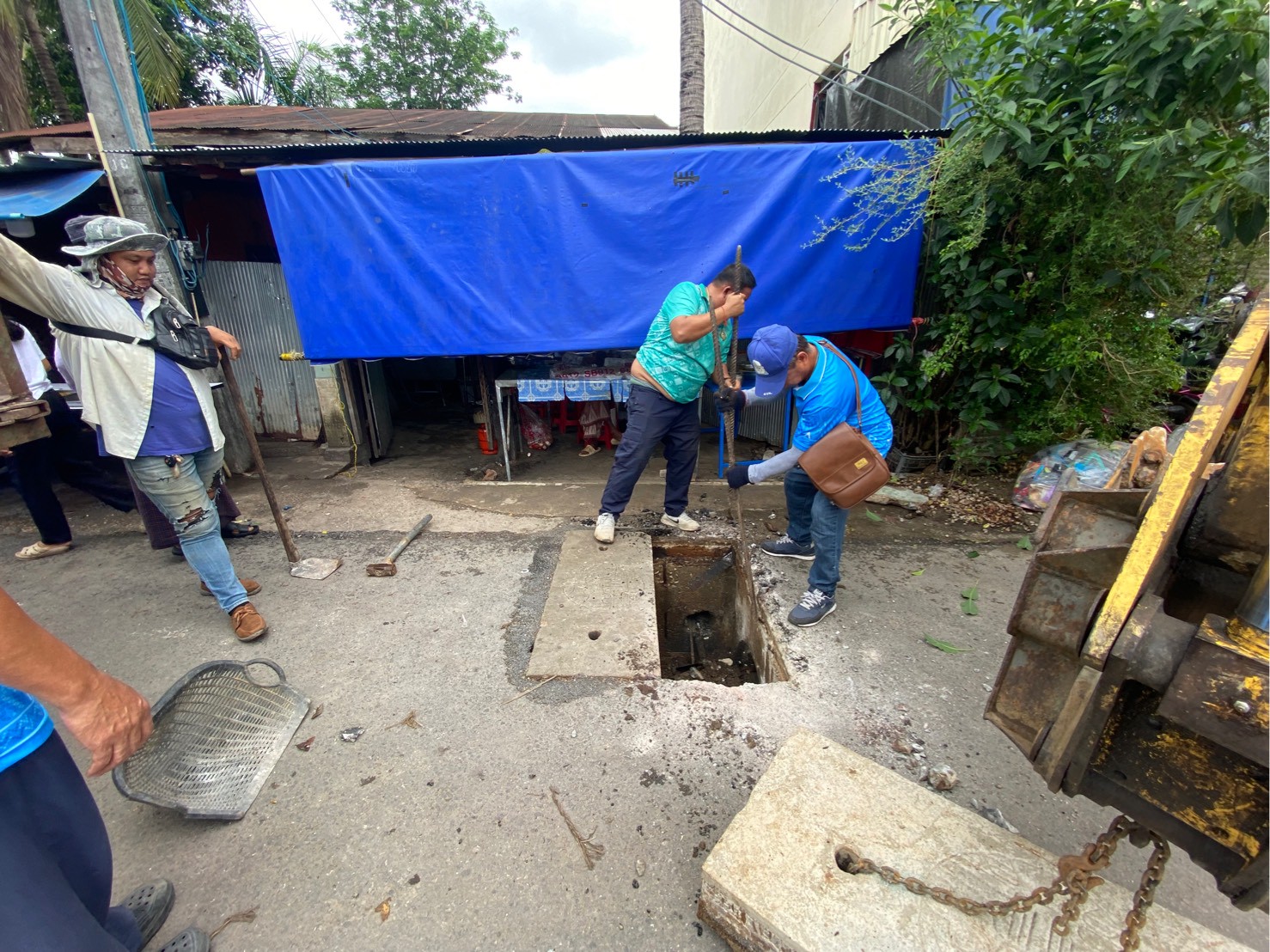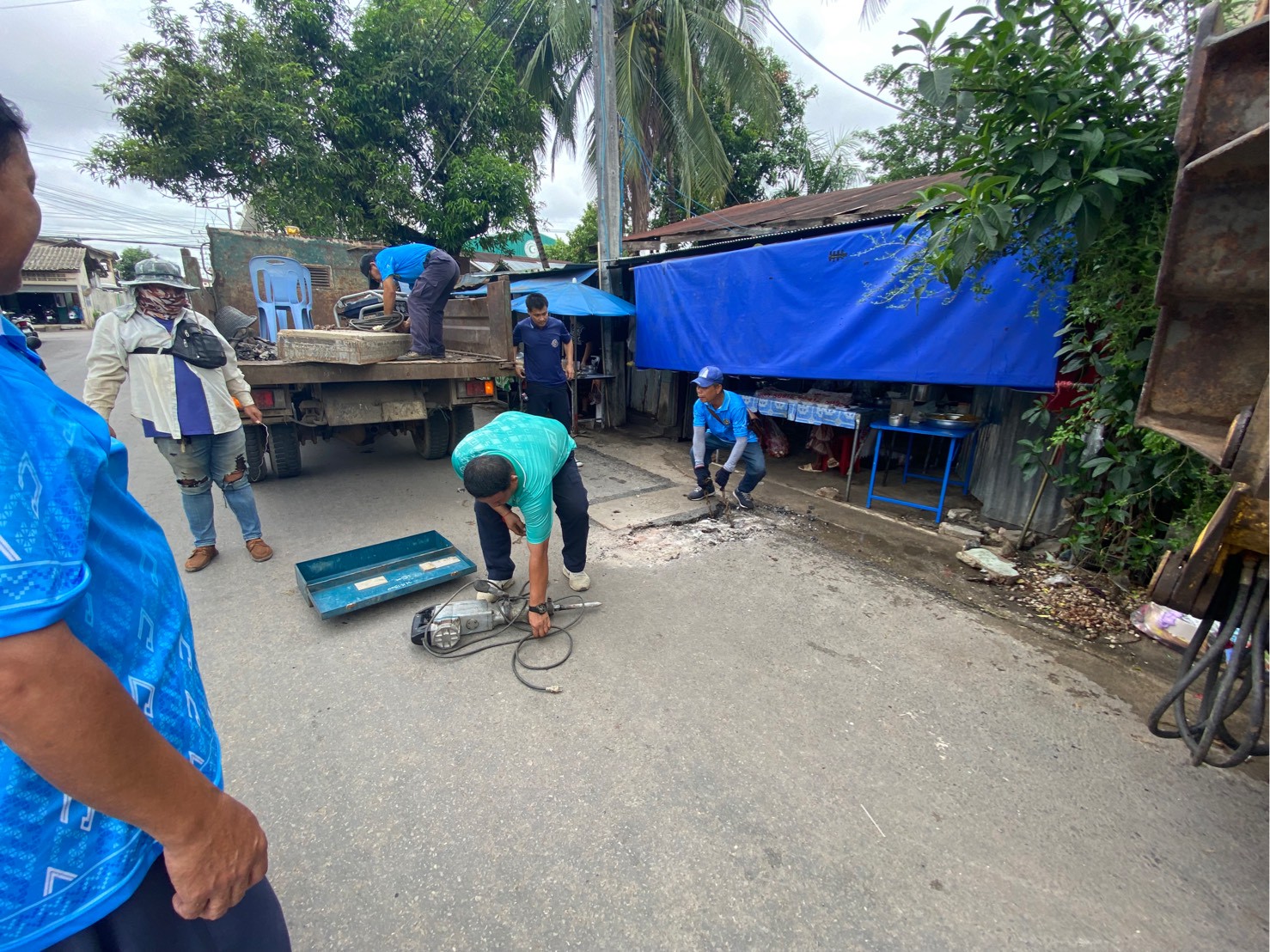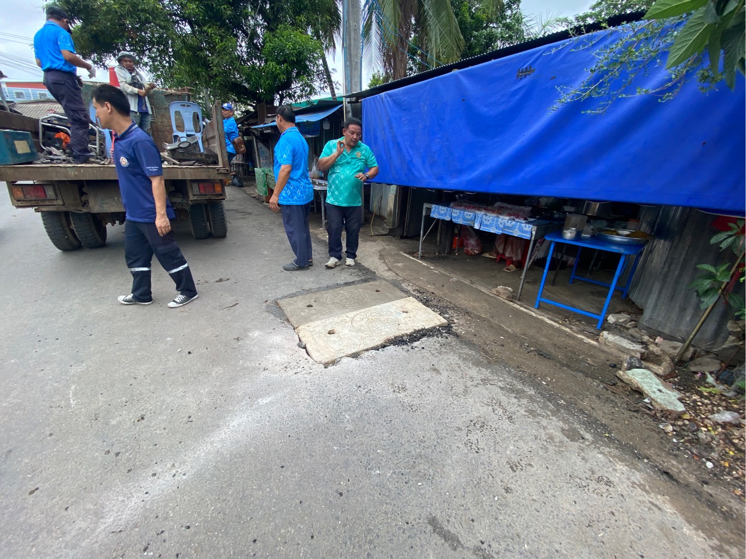 ได้เข้าดำเนินการเปลี่ยนฝาท่อระบายน้ำ บริเวณสี่แยกโรงเรียนอิสลาม (ซอยน้ำบ่อ)