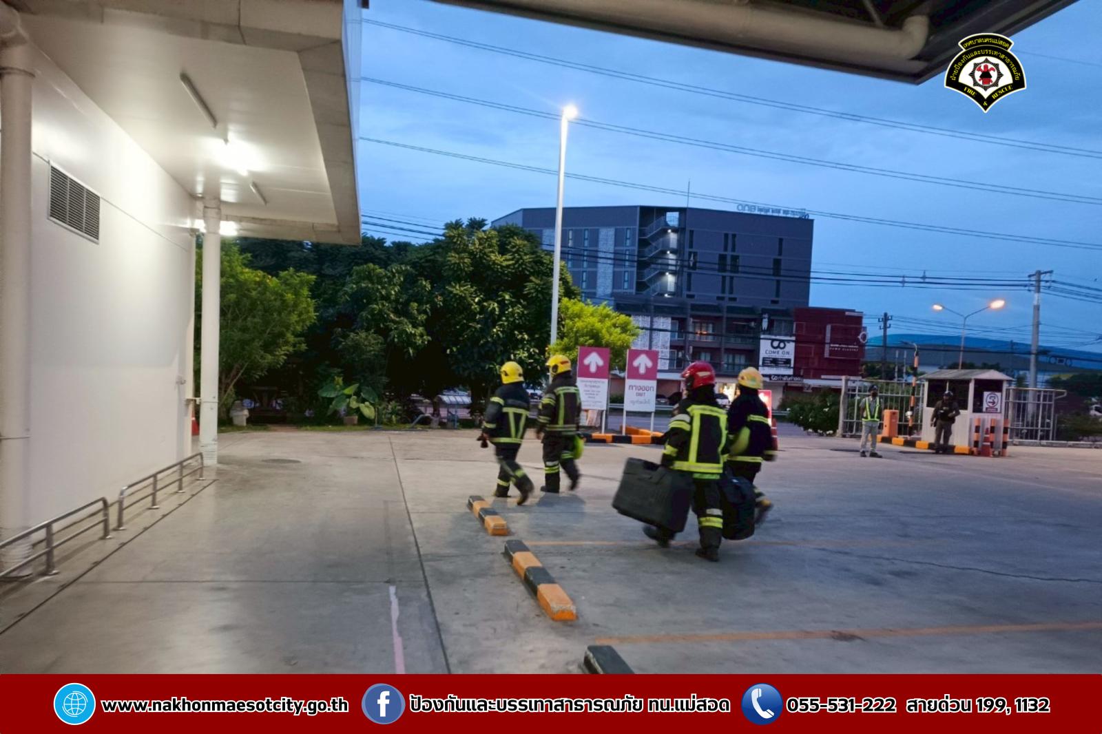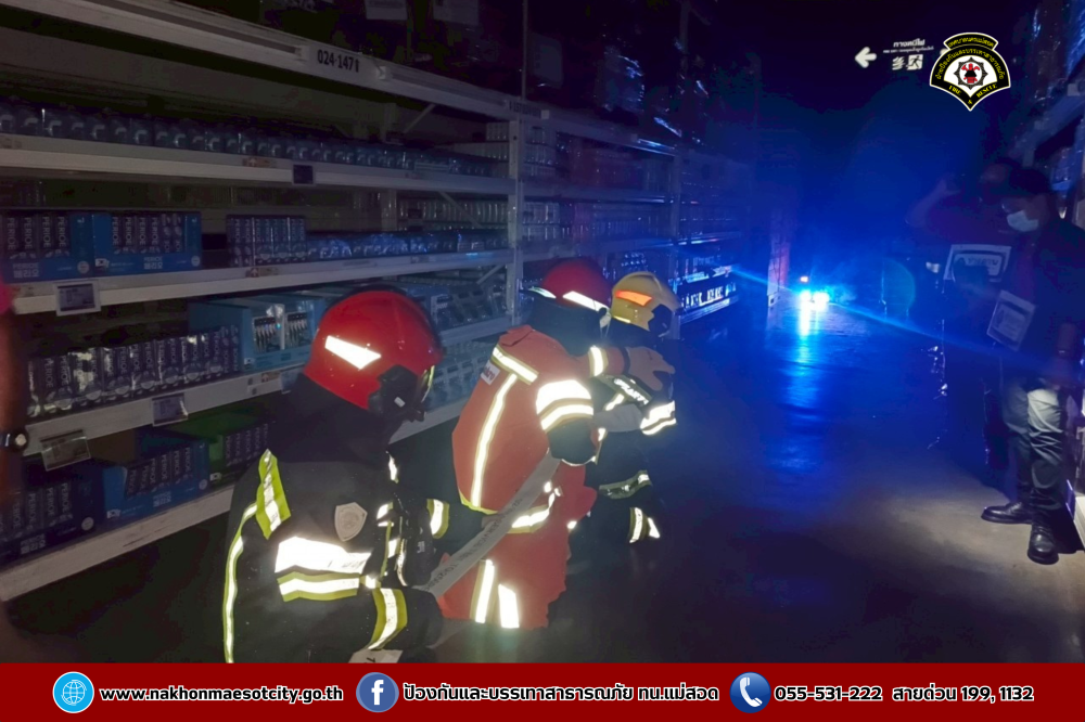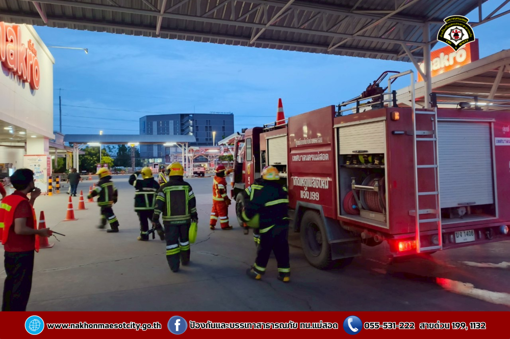 เมื่อวันอังคารที่ 20 พฤษภาคม 2568 เวลา 05.30 น. ณ บมจ.ซีพี แอ็กซ์ตร้า สาขาแม่สอด (ไฮเปอร์มาร์เก็ต แม็คโคร แม่สอด) นายประสาน มั่นมาก รองปลัดเทศบาล รักษาราชการแทน ปลัดเทศบาล ปฏิบัติหน้าที่ นายกเทศมนตรีนครแม่สอด มอบหมายให้นายมนูศักดิ์ จันทร์โต นักป้องกันและบรรเทาสาธารณภัยชำนาญการ รักษาราชการแทน หัวหน้าฝ่ายป้องกันและบรรเทาสาธารณภัย พนักงานขับรถยนต์ พนักงานดับเพลิง รวมจำนวน 6 นาย พร้อมรถยนต์บรรทุกน้ำดับเพลิง จำนวน 1 คัน