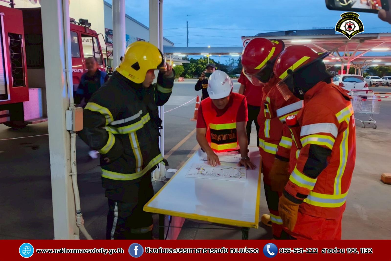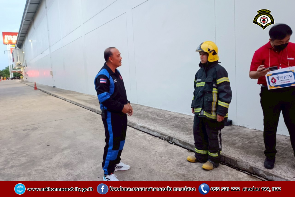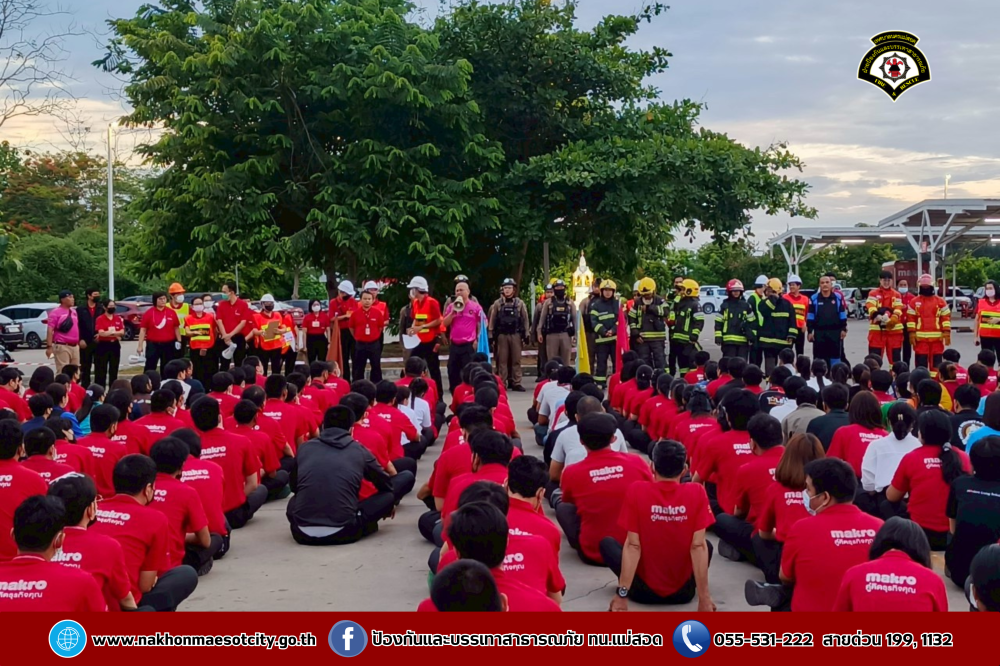 เข้าร่วมฝึกซ้อมแผนดับเพลิง และอพยพหนีไฟ โดยมีการสมมุติเหตุการณ์เหมือนสถานการณ์จริง เพื่อเป็นการเตรียมพร้อมรับสถานการณ์ฉุกเฉินอพยพบุคลากร เจ้าหน้าที่ และลูกค้าออกจากตัวอาคารสู่พื้นที่ปลอดภัย เพื่อความปลอดภัยอย่างสูงสุด ณ บมจ.ซีพี แอ็กซ์ตร้า สาขาแม่สอด (ไฮเปอร์มาร์เก็ต แม็คโคร แม่สอด)