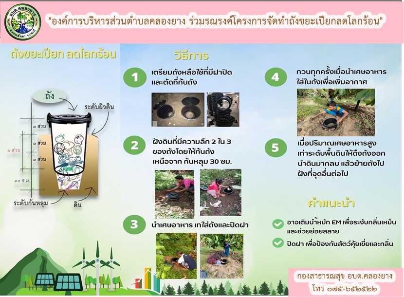 - การจัดการขยะเศษอาหารลดปริมาณขยะต้นทางและทำให้เกิดสุขอนามัยที่ดี