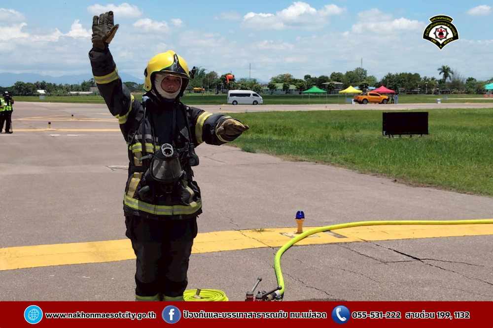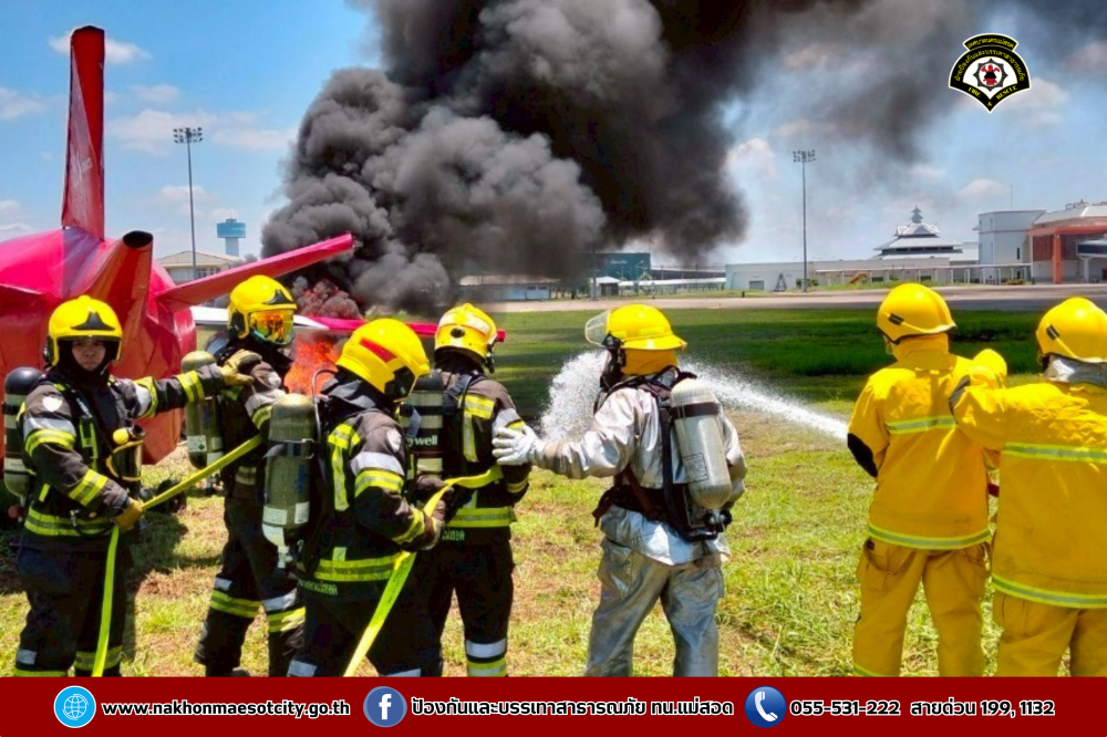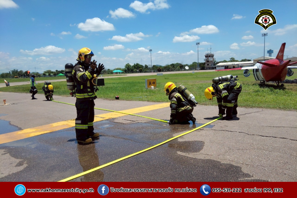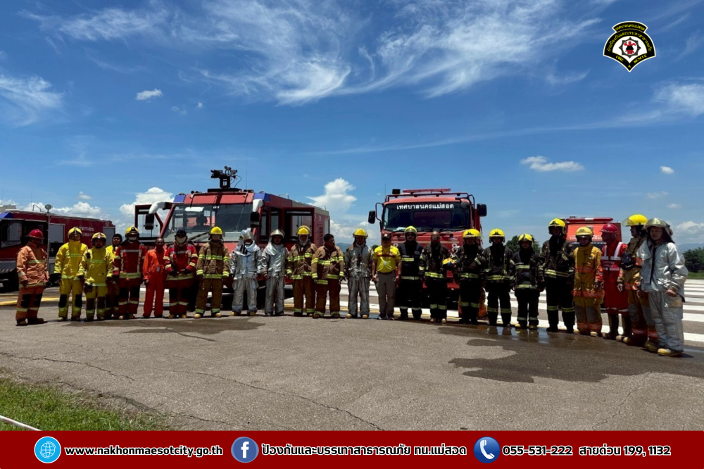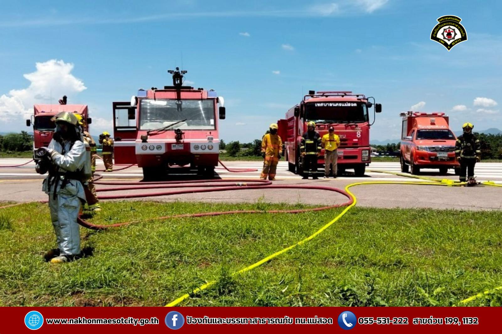ดับเพลิงนครแม่สอด เข้าร่วมการฝึกซ้อมแผนฉุกเฉินท่าอากาศยานแม่สอดเต็มรูปแบบ (Full-scale Exercise) ณ ท่าอากาศยานแม่สอด
