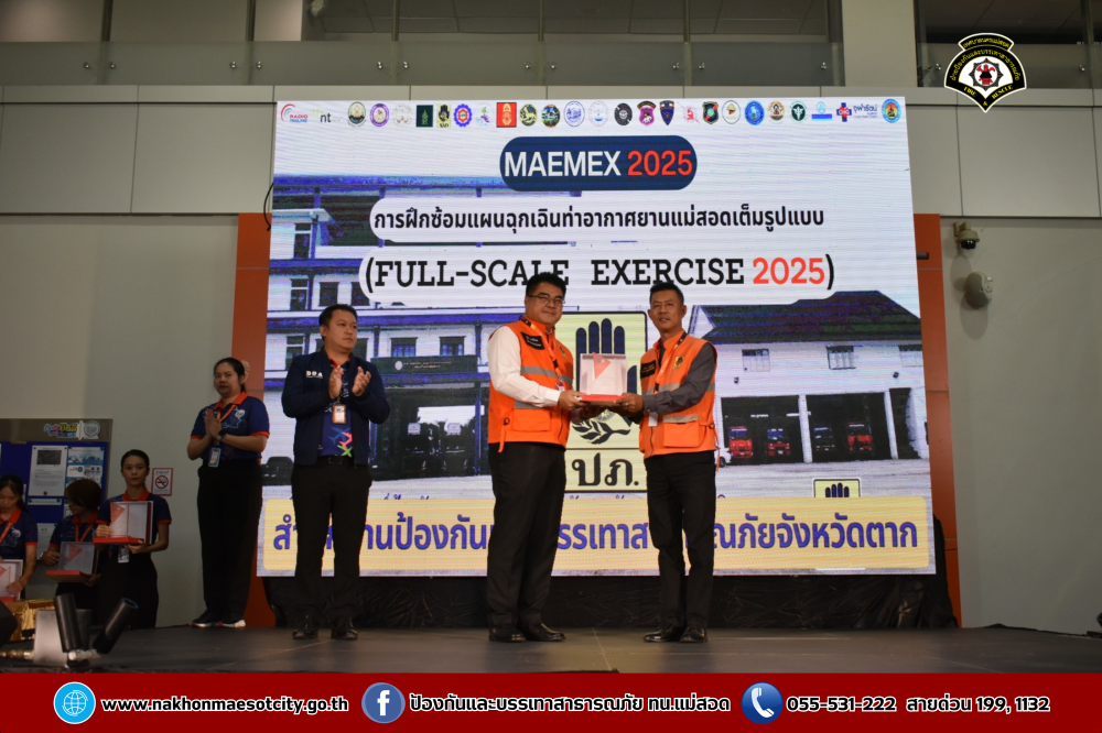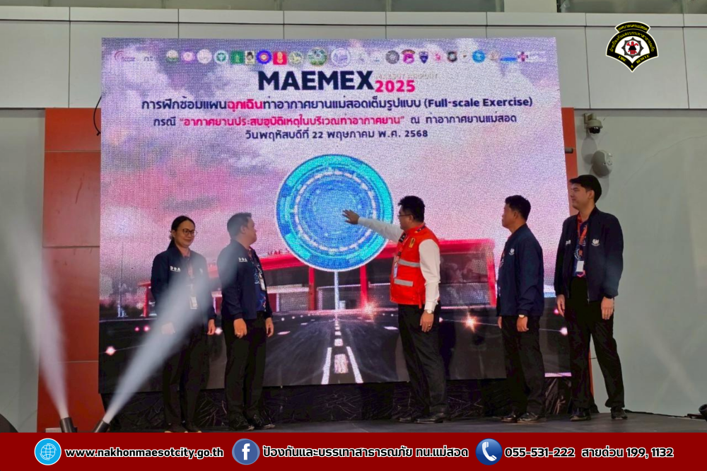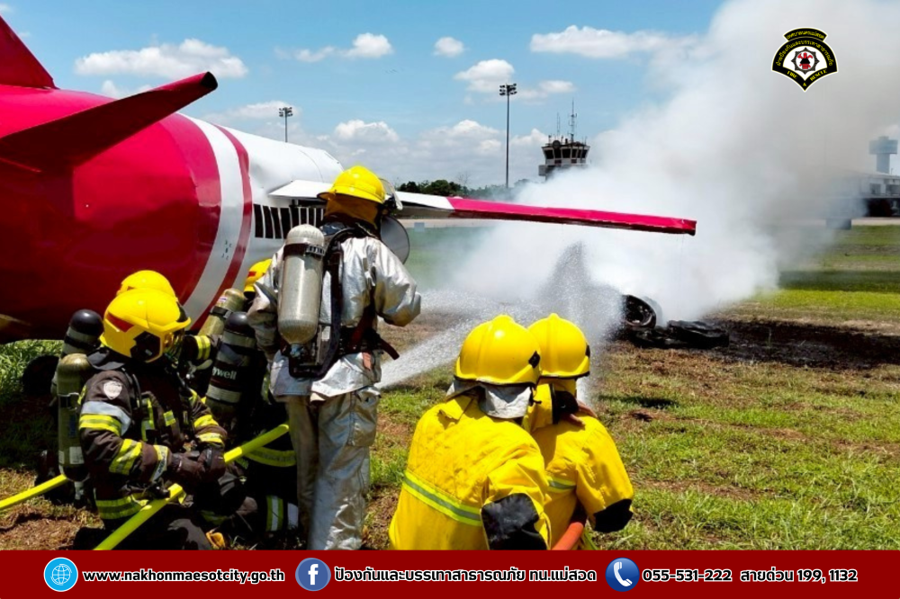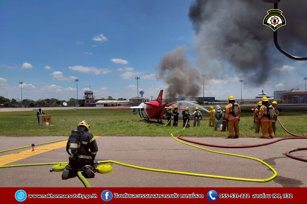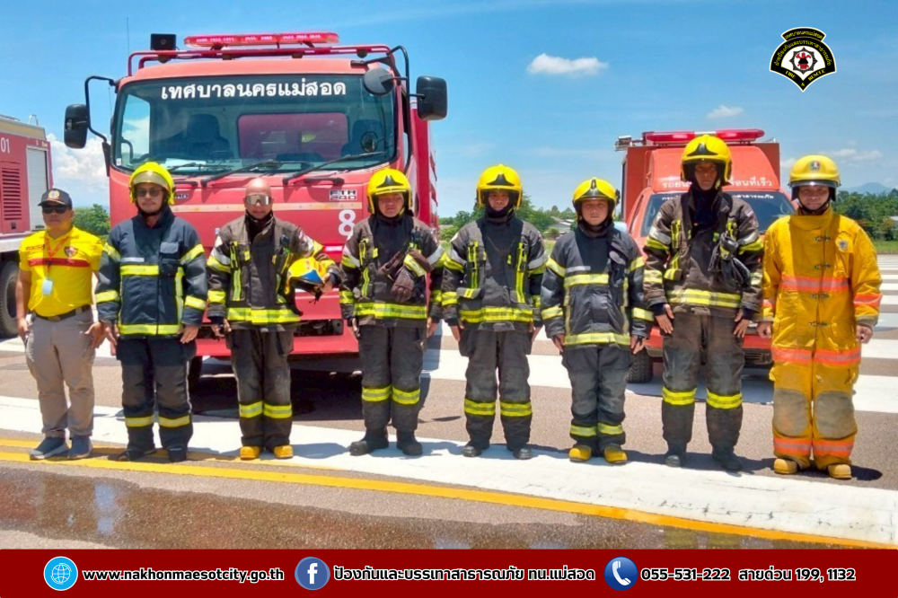 ดับเพลิงนครแม่สอด เข้าร่วมการฝึกซ้อมแผนฉุกเฉินท่าอากาศยานแม่สอดเต็มรูปแบบ (Full-scale Exercise) ณ ท่าอากาศยานแม่สอด