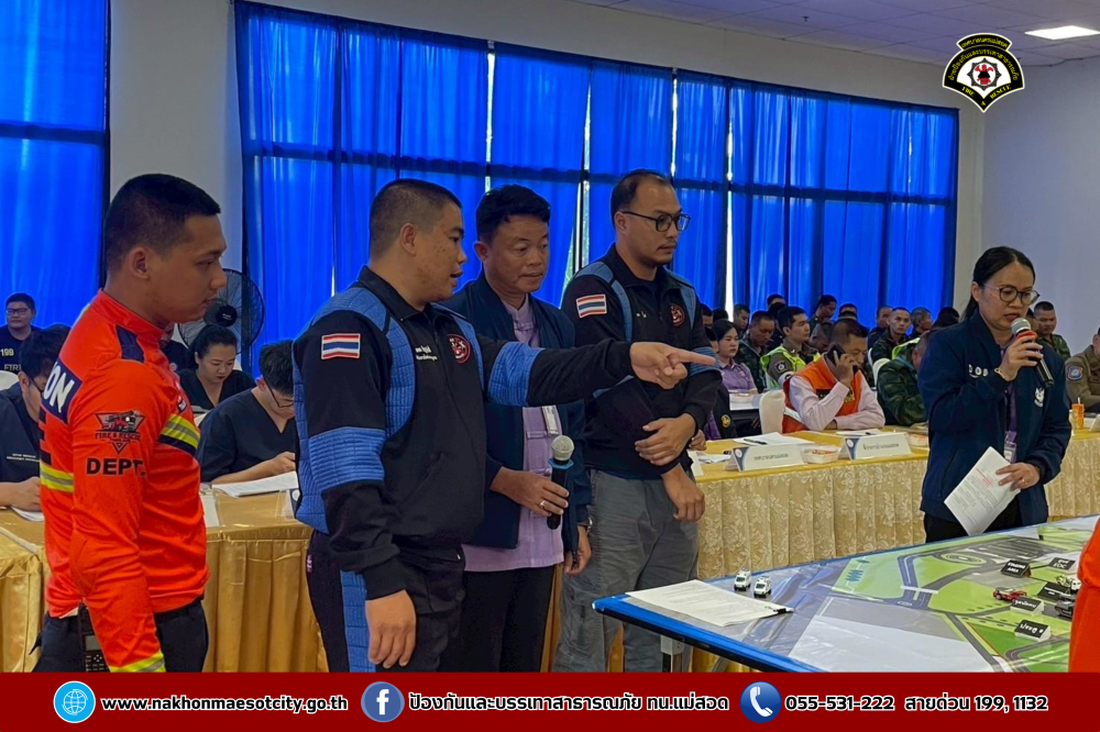 ดับเพลิงนครแม่สอด เข้าร่วมการประชุมฯ เตรียมความพร้อมรับสถานการณ์อุทกภัยในห้วงฤดูฝน และติดตามการฝึกฯ ปี 2568