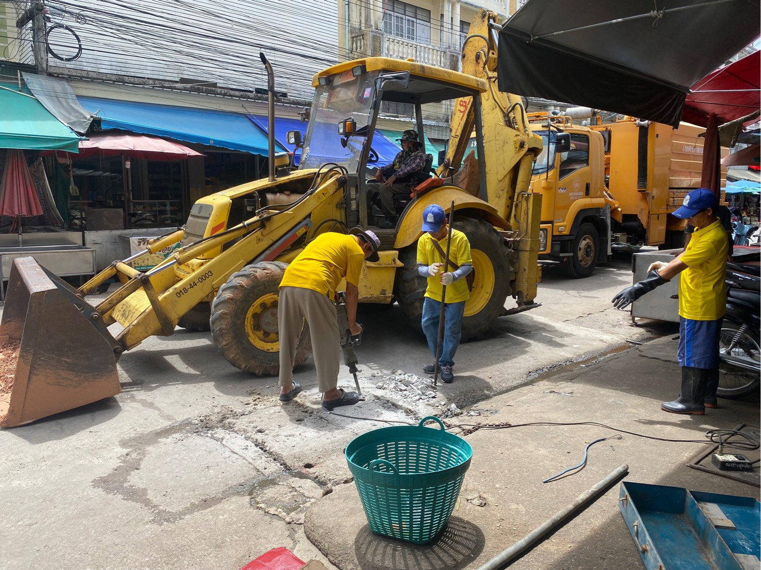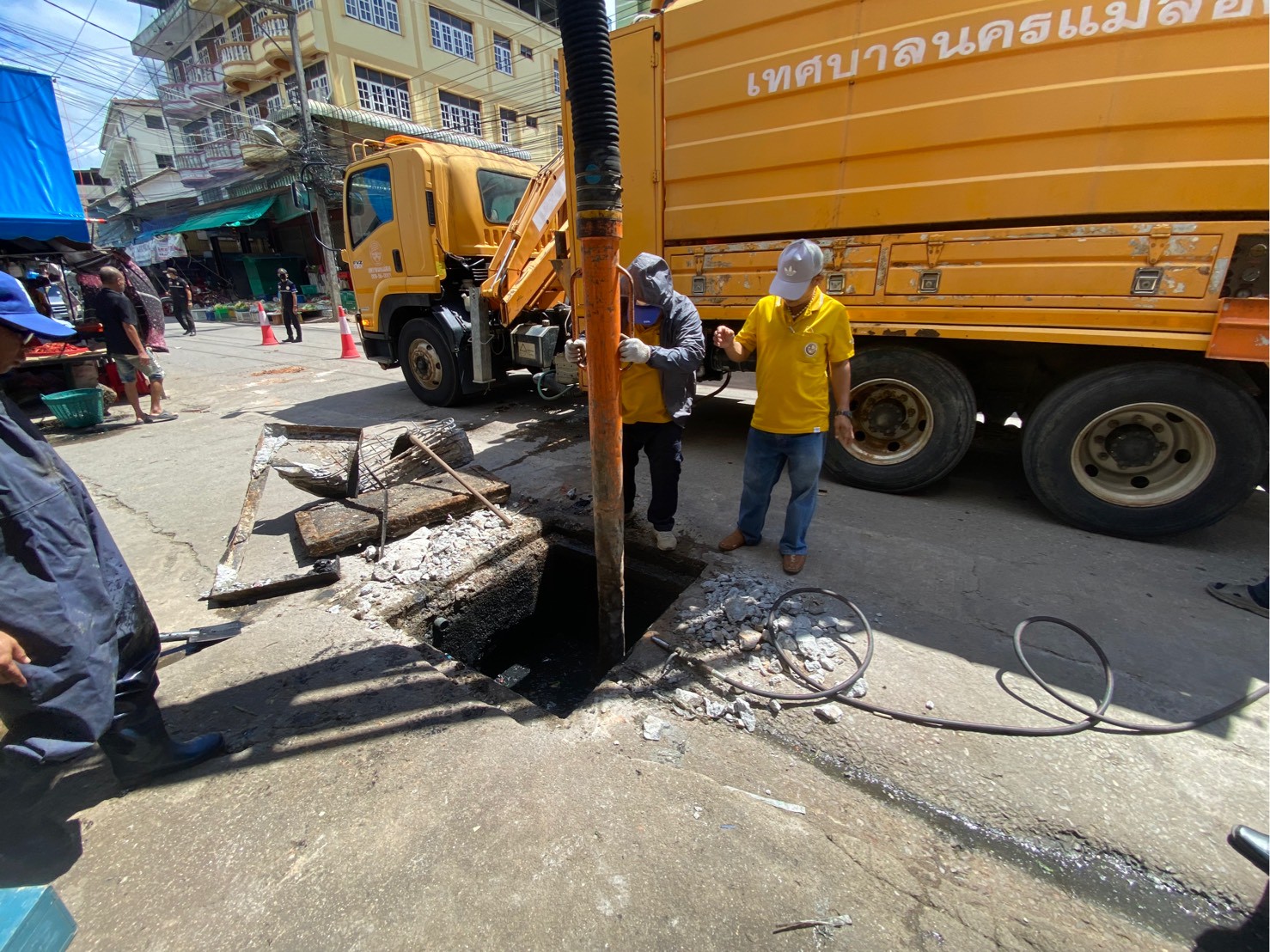 ได้เข้าดำเนินการดูดโคลนลอกท่อระบายน้ำ บริเวณหน้าร้านนิตยา (ขายผัก) ตลาดพาเจริญ