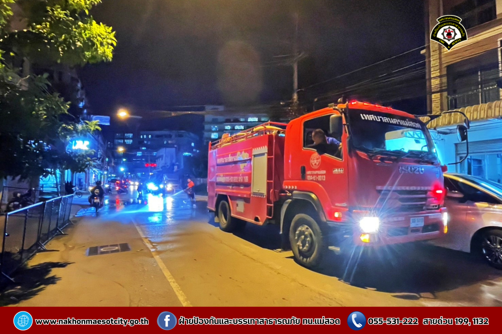 ดับเพลิงนครแม่สอด ออกระงับเหตุไฟฟ้าลัดวงจร บริเวณถนนราษฎร์อุทิศ ใกล้เคียงโรงพยาบาลแม่สอด-ราม
