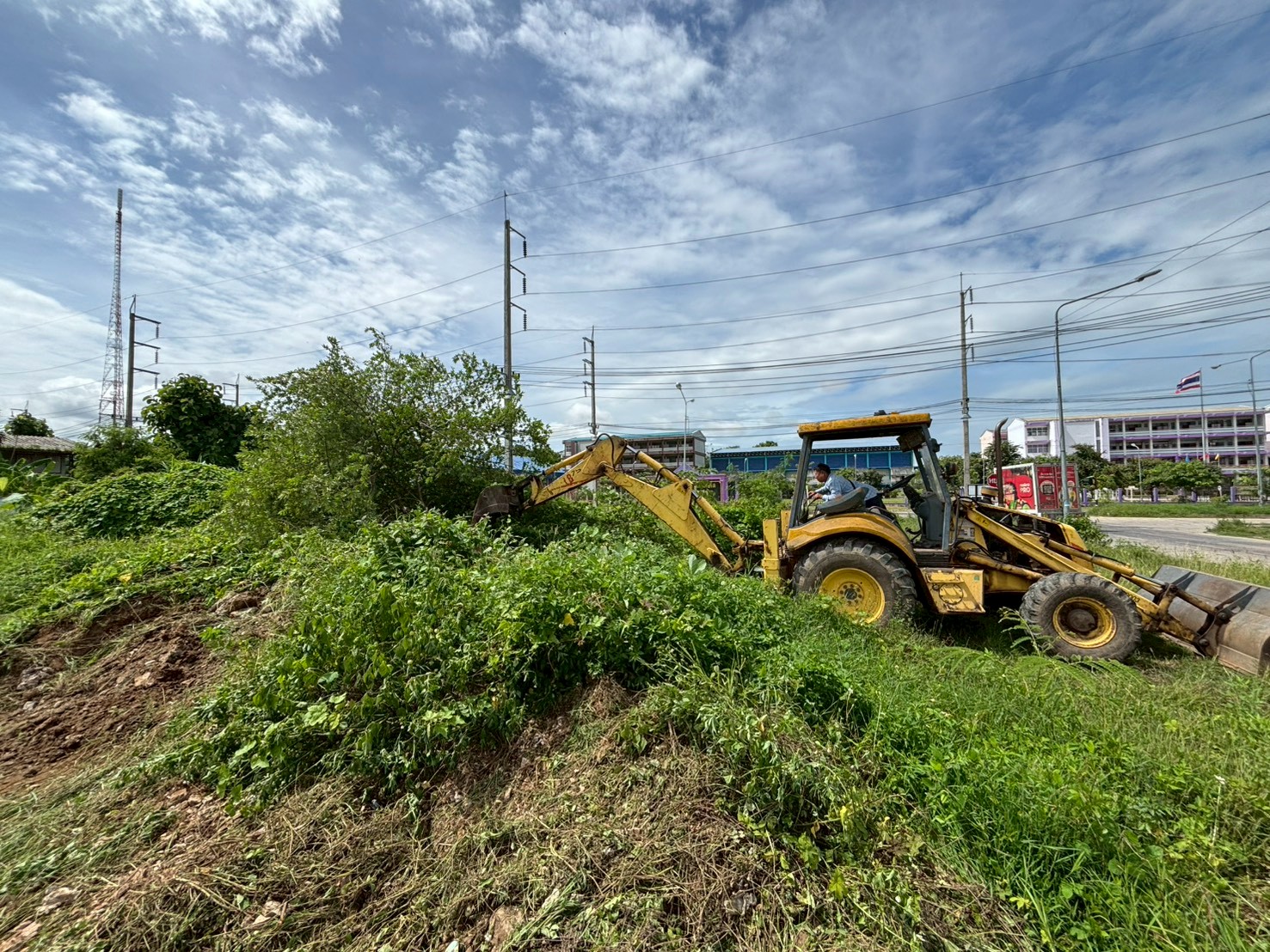 ได้เข้าดำเนินการไถปรับดิน / หญ้า บริเวณสระว่ายน้ำชุมชน ตรงข้ามโรงเรียนเทศบาลเฉลิมพระเกียรติฯ (ท.5)