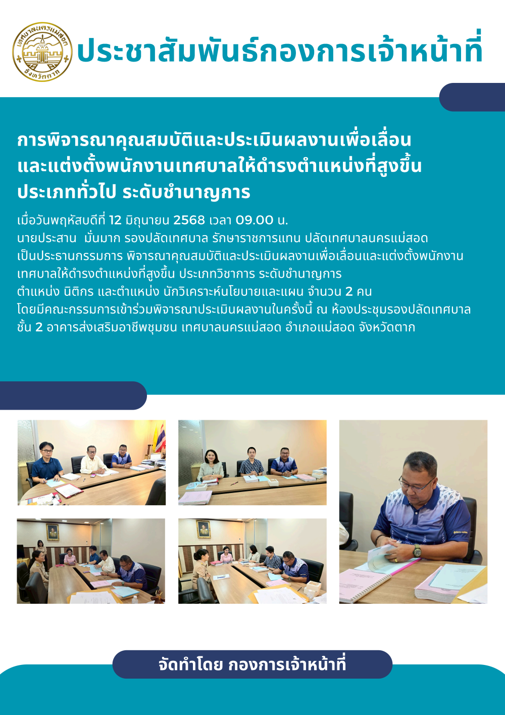 ประชุมคณะกรรมการเลื่อนค่าตอบแทนของพนักงานจ้าง สังกัด เทศบาลนครแม่สอด ประจำปีงบประมาณ พ.ศ. 2568