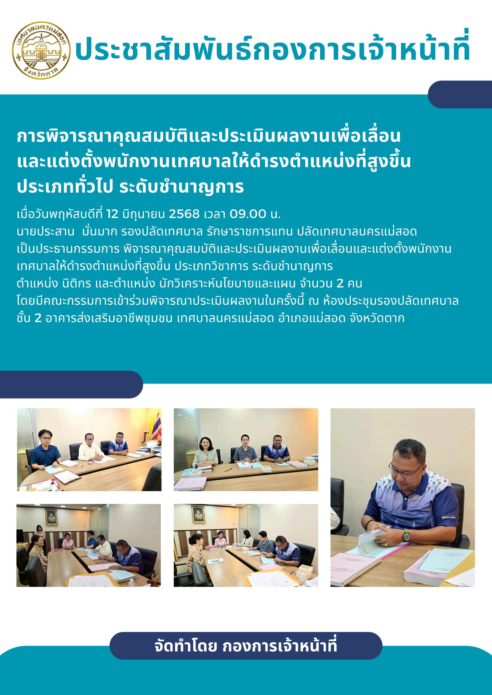 ประชุมคณะกรรมการกลั่นกรองการประเมินผลการปฏิบัติงานของพนักงานเทศบาล ลูกจ้างประจำ และพนักงานจ้าง สังกัด เทศบาลนครแม่สอด ครั้งที่ 2 ประจำปีงบประมาณ พ.ศ. 2568