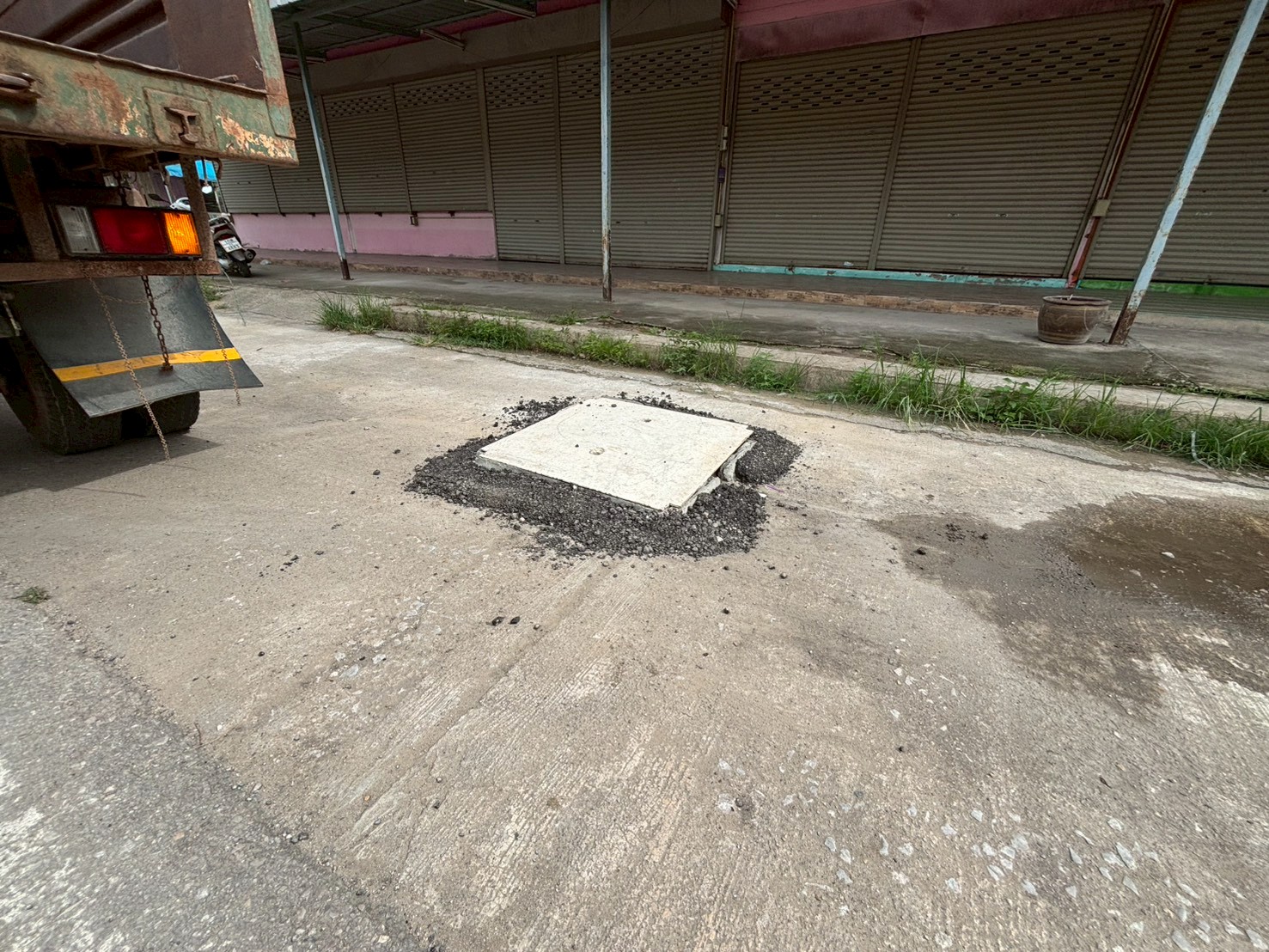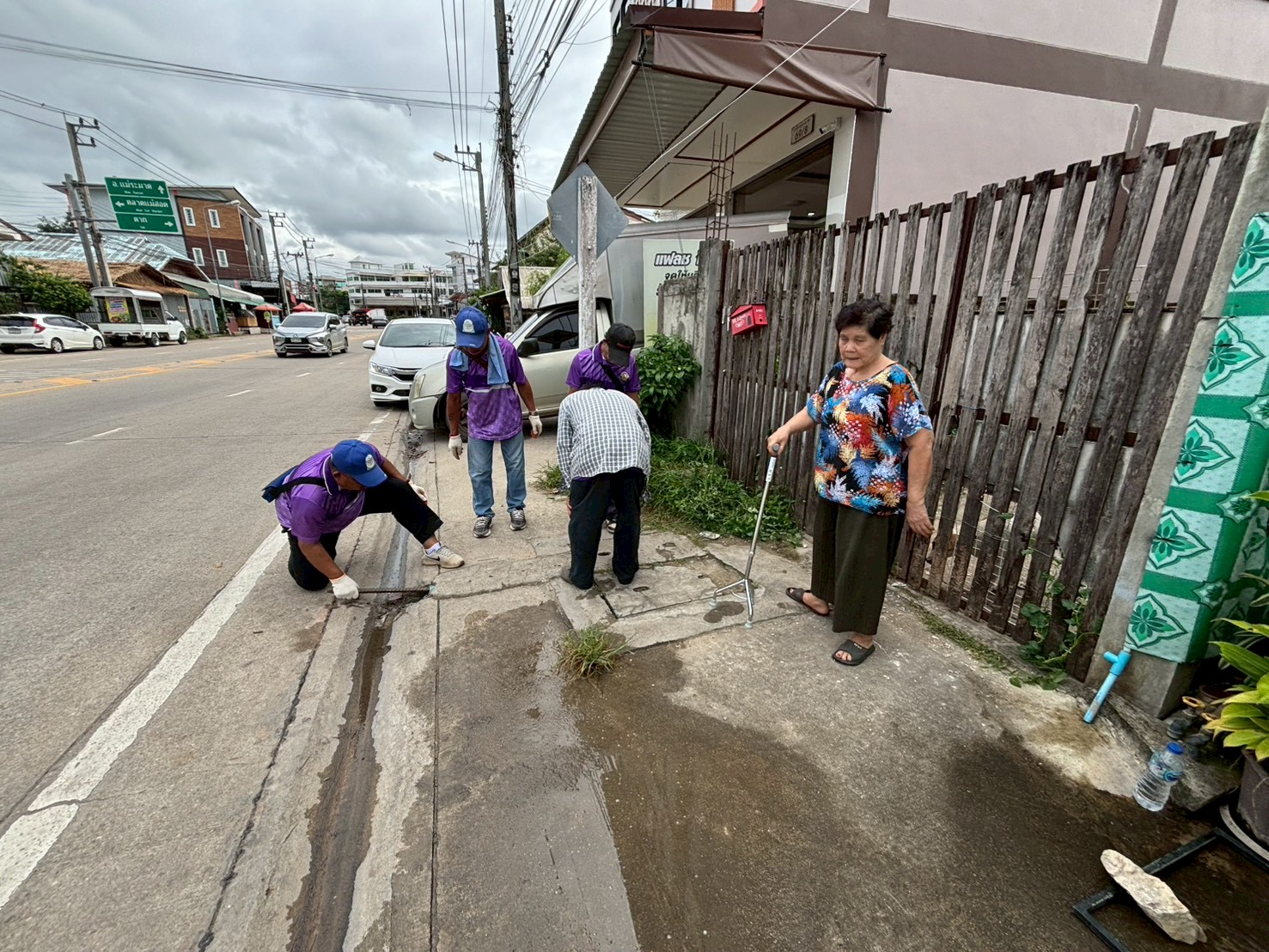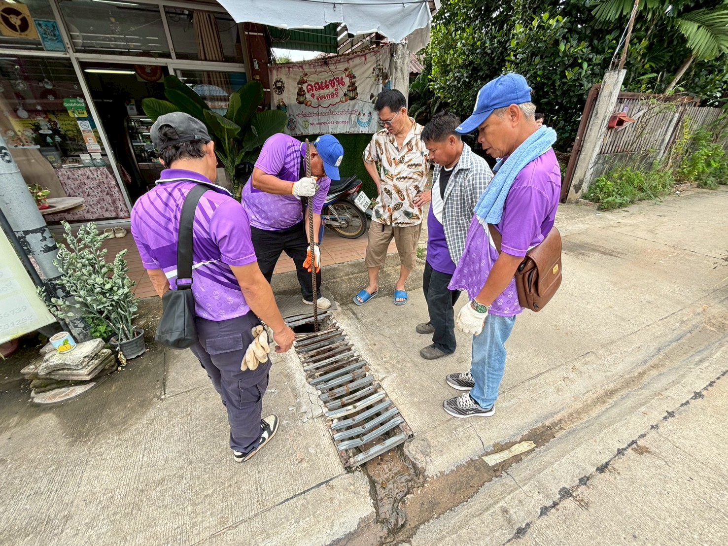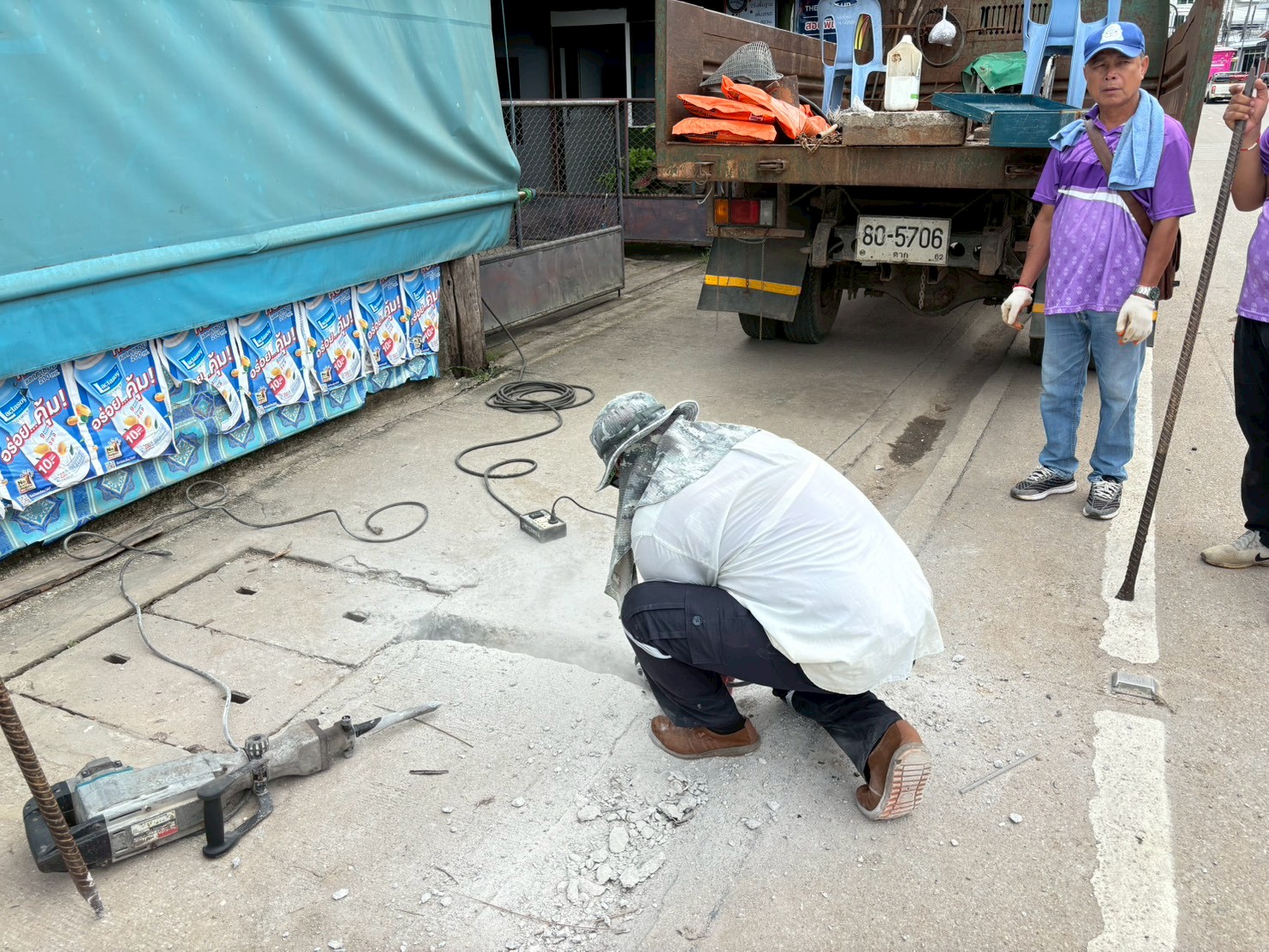 2. ได้เข้าดำเนินการขุดเจาะปูนทำร่องน้ำ บริเวณหน้าร้านข้าวเหนียวและร้านซ่อมมือถือ ชุมชนร่วมแรง