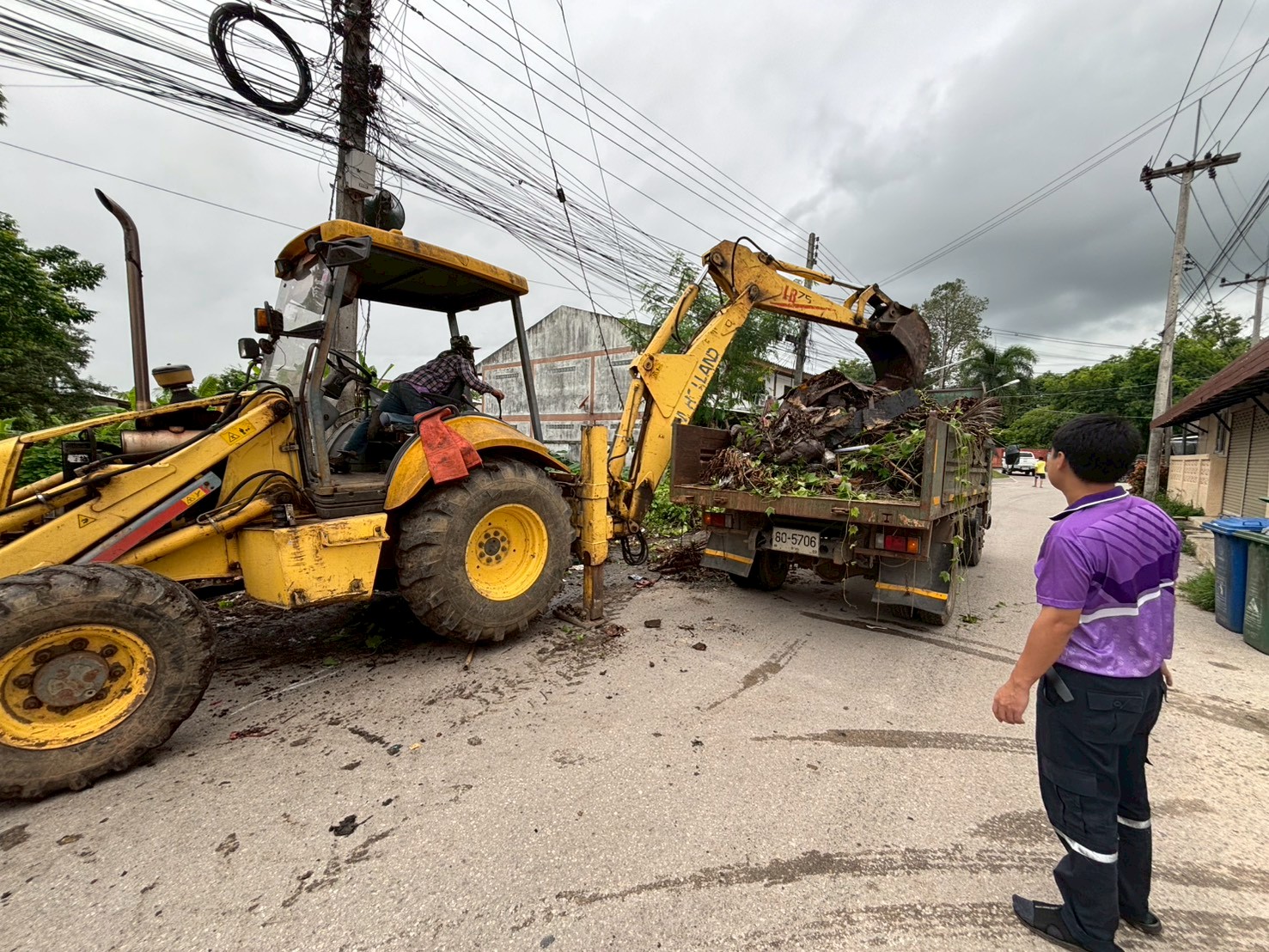 ได้เข้าดำเนินการไถ/ปรับเคลียพื้นวางถังขยะและเก็บขนขยะไปทิ้งที่บ่อขยะ บริเวณชุมชนปู่แดง