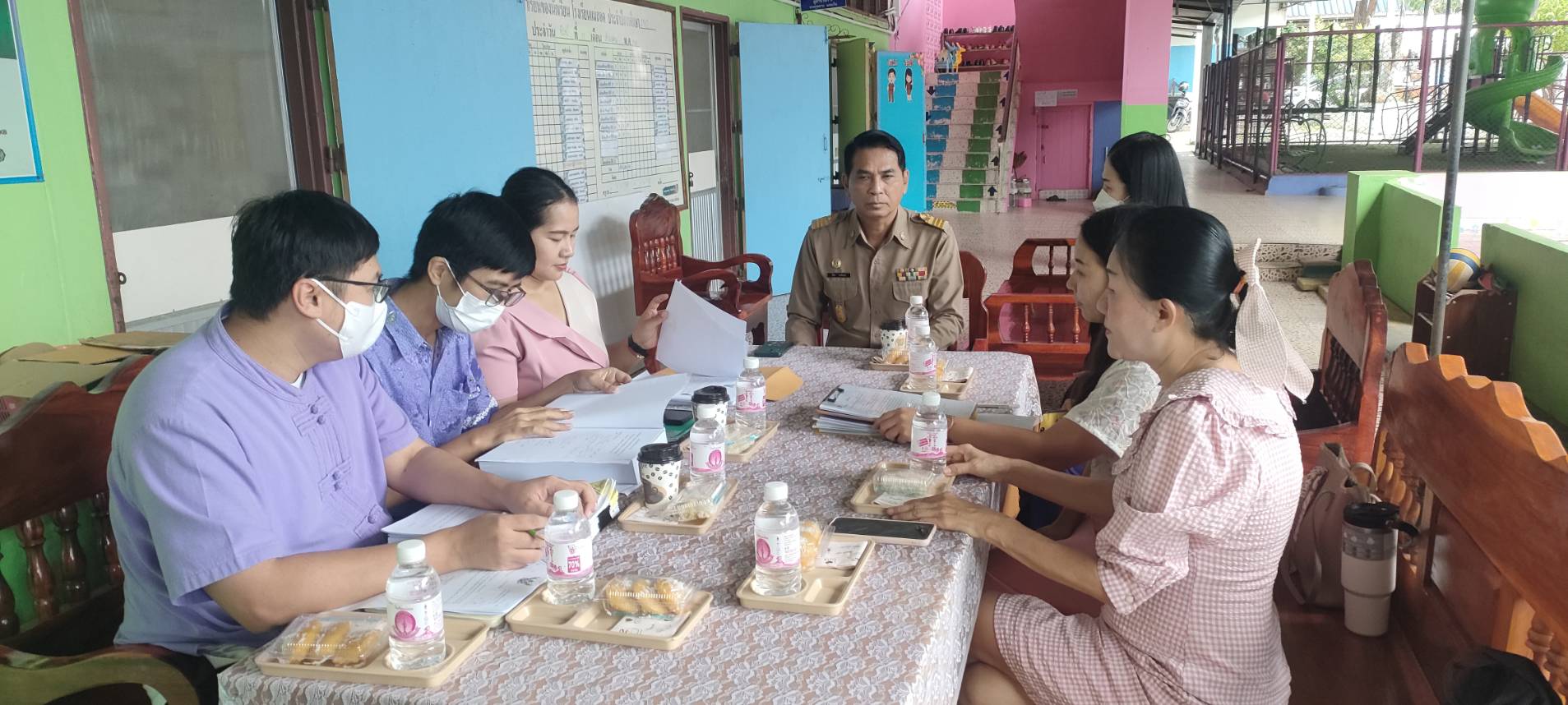 การลงพื้นที่ในครั้งนี้มีวัตถุประสงค์เพื่อติดตามผลการดำเนินงาน แลกเปลี่ยนข้อคิดเห็น รวมถึงข้อปัญหาอุปสรรคที่เกิดขึ้นในดำเนินโครงการอาหารกลางวัน ซึ่งเป็นโครงการที่สำคัญของรัฐบาล เพื่อนำข้อมูลมาพัฒนาปรับปรุงการดำเนินการอันเป็นประโยชน์ต่อนักเรียนต่อไป และทางเทศบาลนครแม่สอดขอขอบคุณโรงเรียนแม่สอดที่ให้ความต้อนรับและเอื้อเฟื้อข้อมูลมา ณ ที่นี้