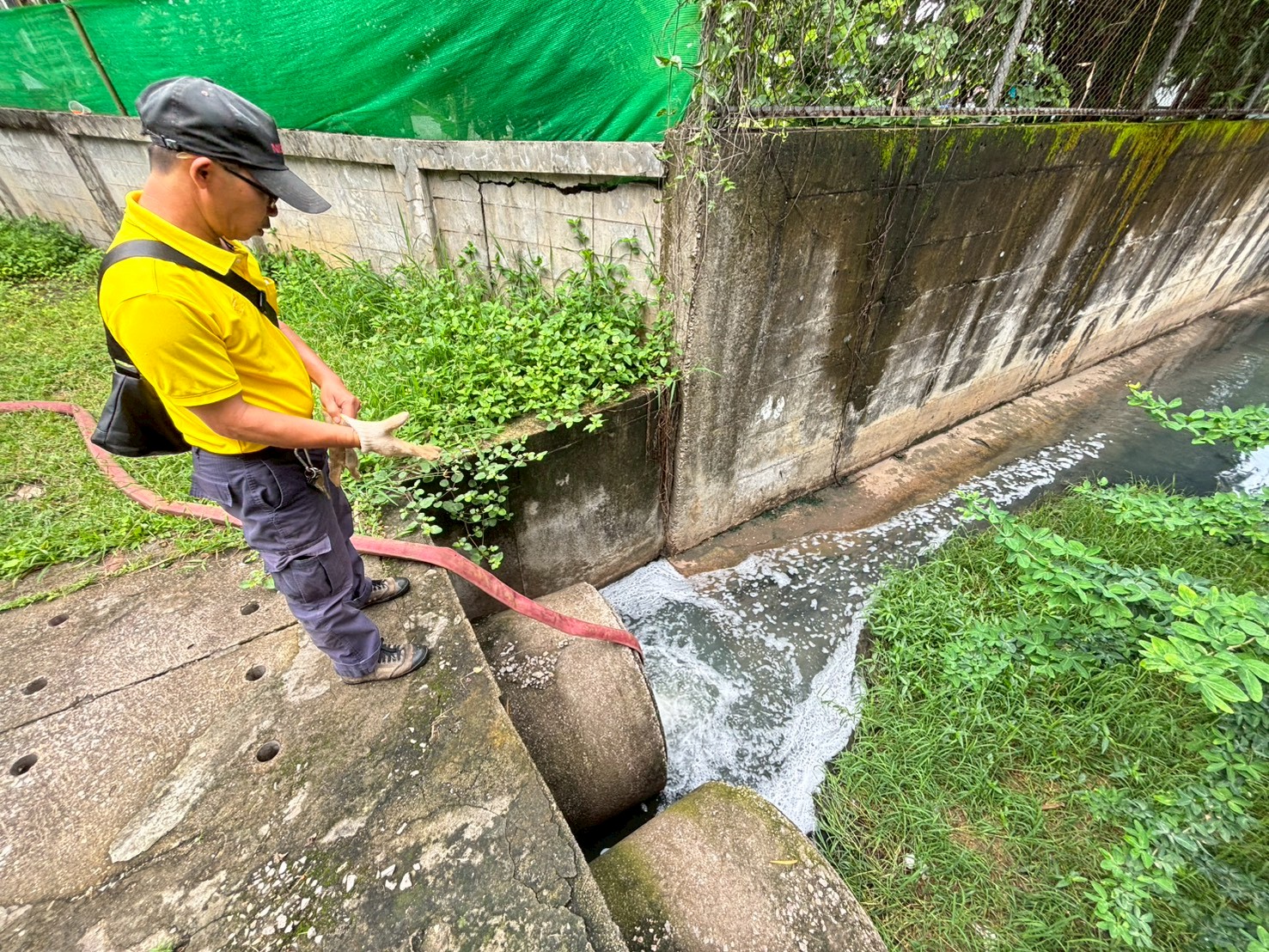 2. ได้เข้าดำเนินการลงน้ำหมักชีวภาพ (EM) แก้ปัญหาน้ำเน่าเสีย บริเวณคลองระบายน้ำหลังโรงเรียนสรรพวิทยาคม