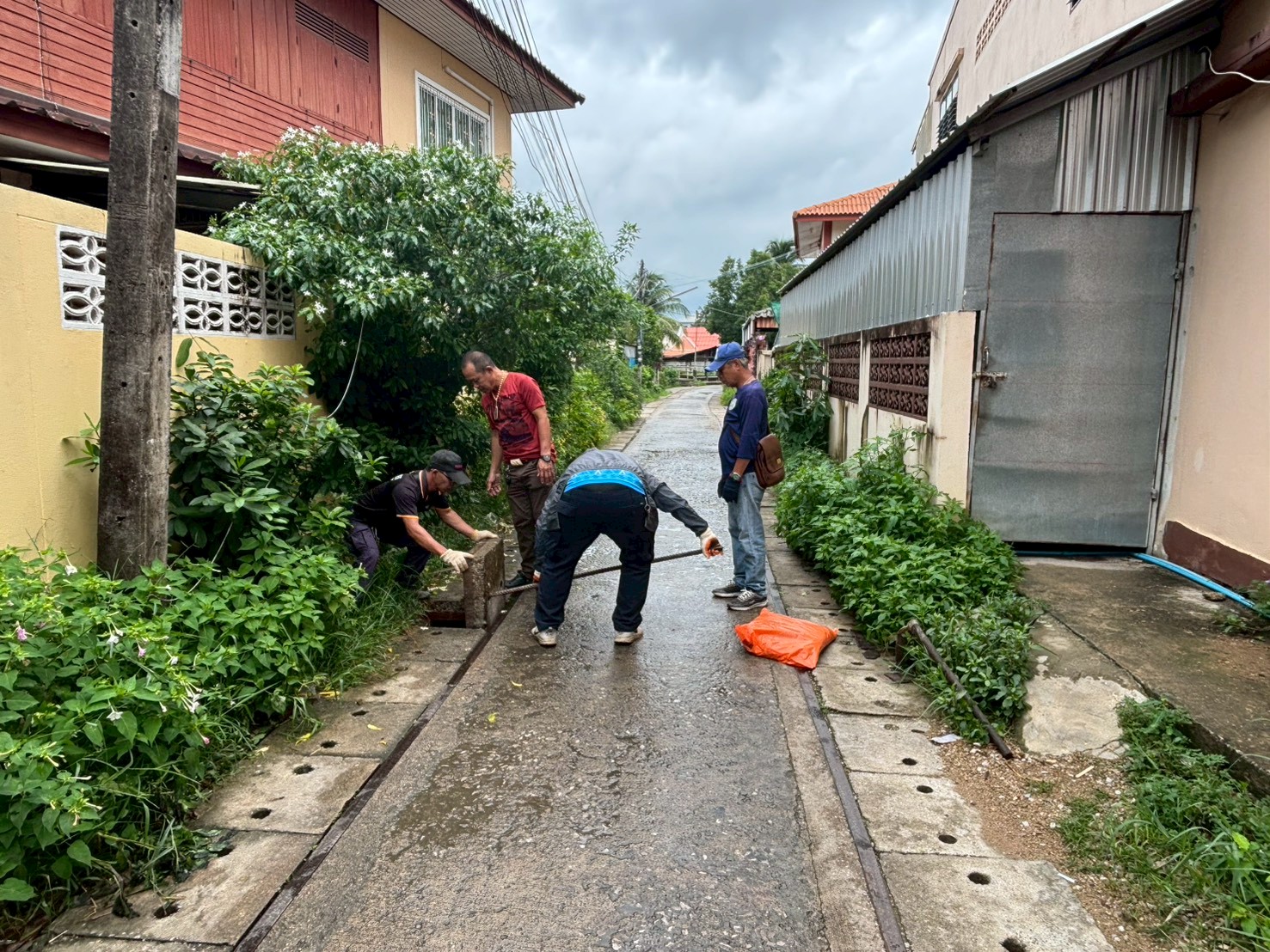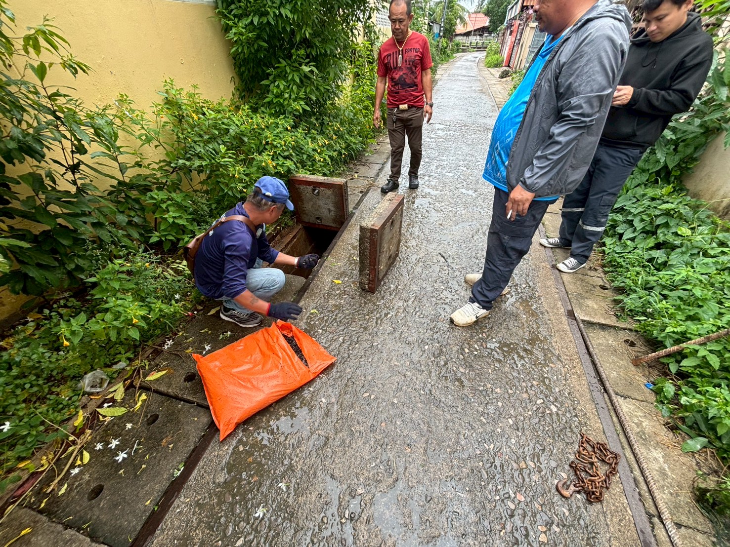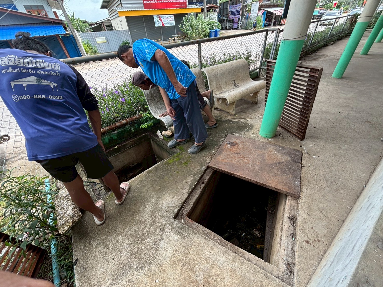 3. ได้เข้าดำเนินการเอาขยะออกจากท่อระบายน้ำและเจาะเชื่อมท่อ เพื่อแก้ไขปัญหาน้ำระบายไม่ทันช่วงฝนตก