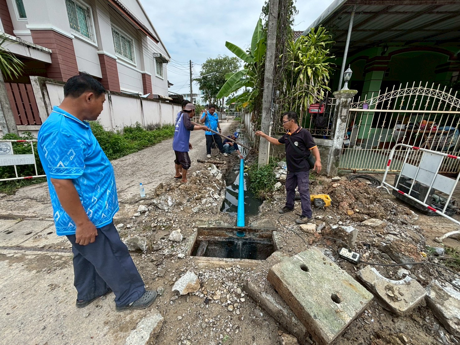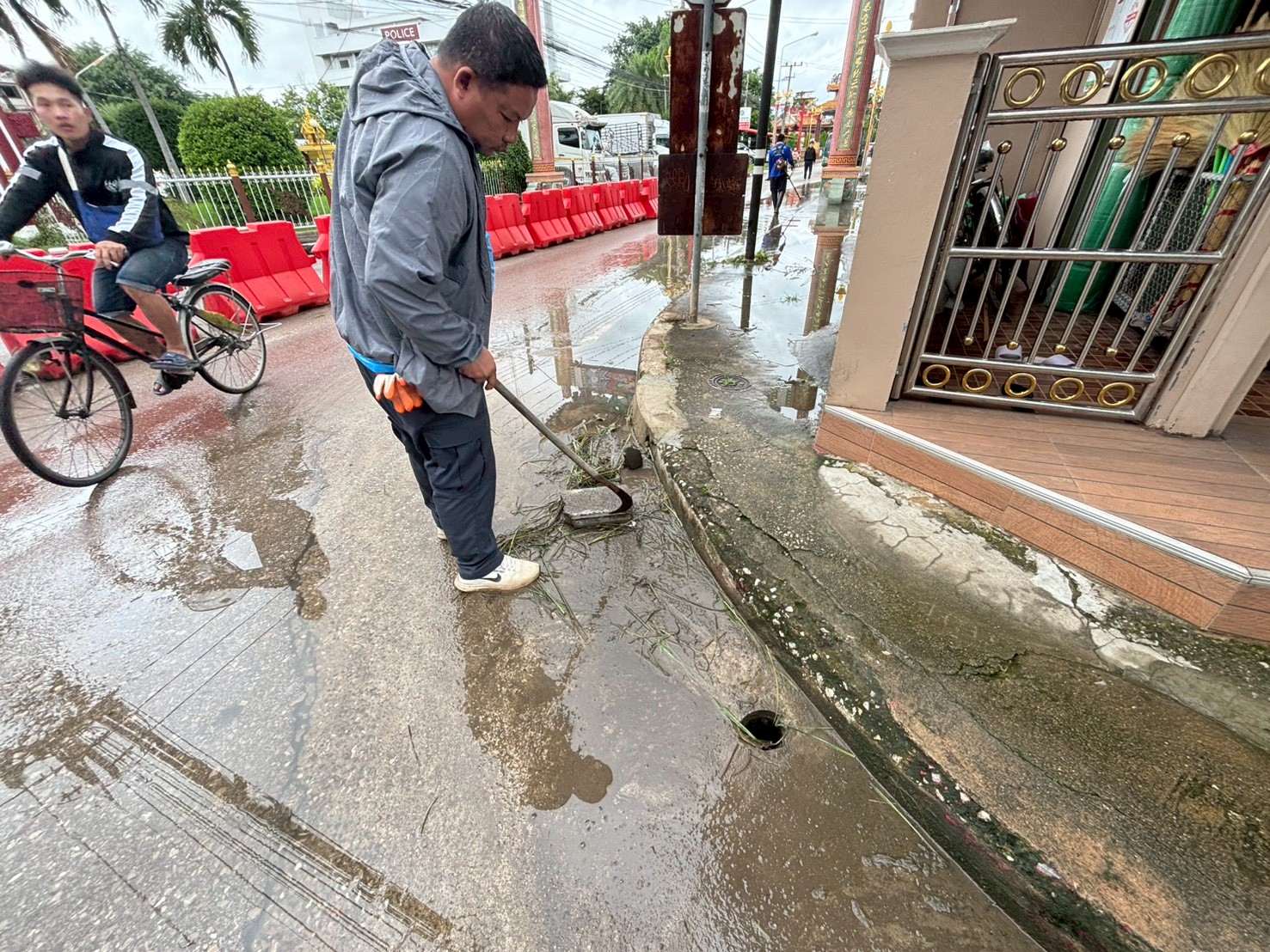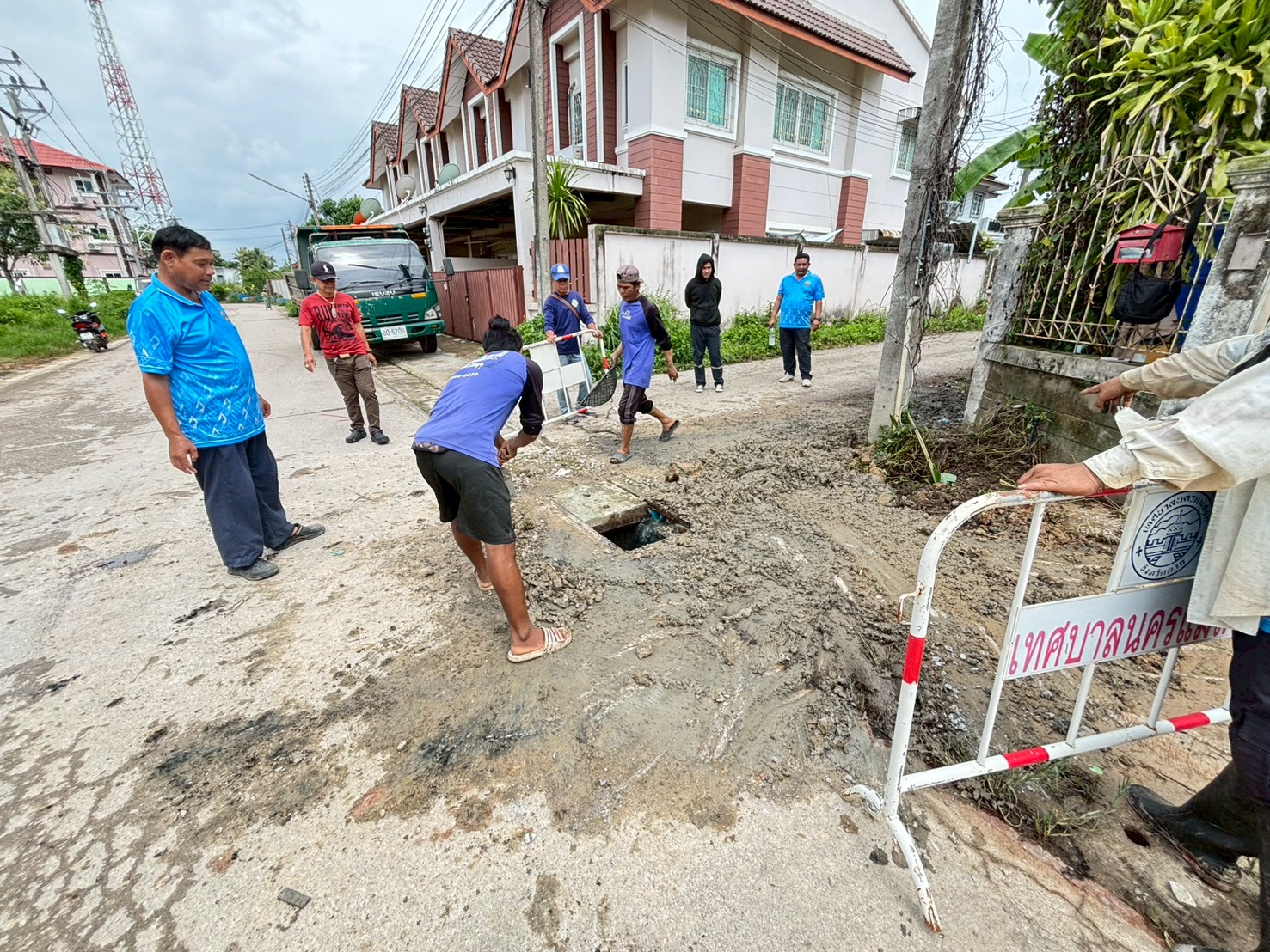 3. ได้เข้าดำเนินการเอาขยะออกจากท่อระบายน้ำและเจาะเชื่อมท่อ เพื่อแก้ไขปัญหาน้ำระบายไม่ทันช่วงฝนตก