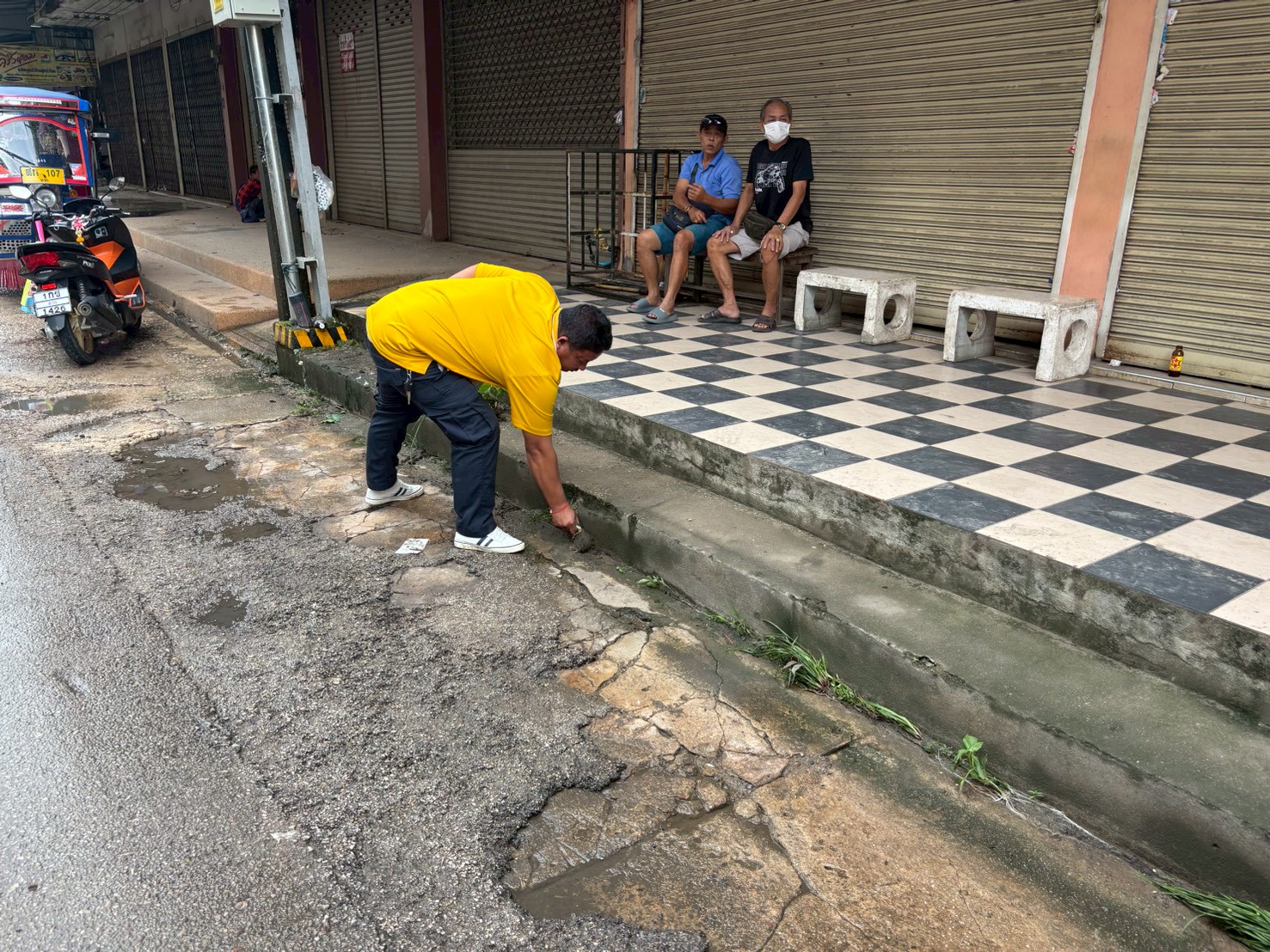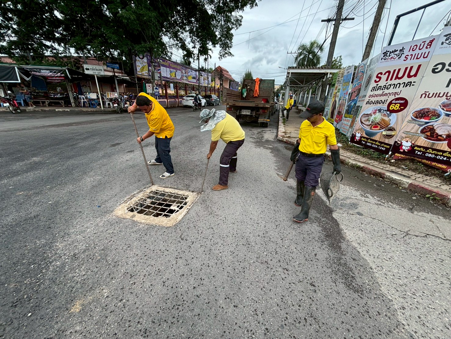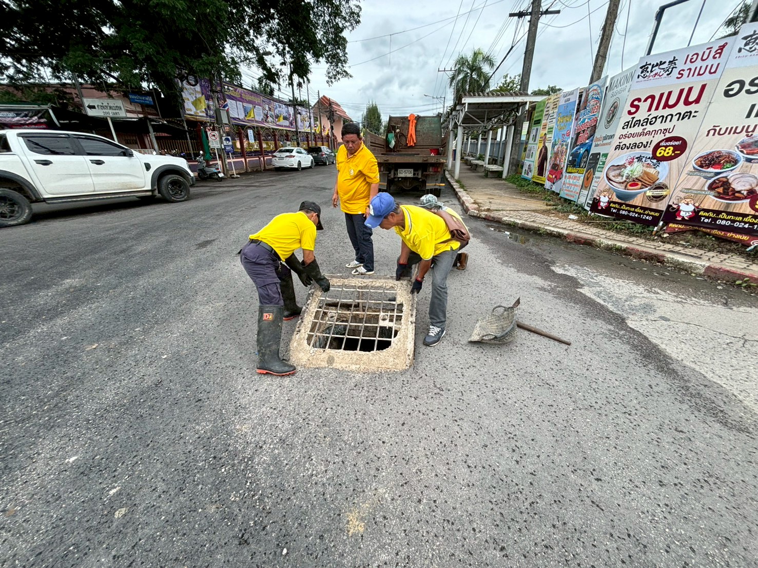 2. ได้เข้าดำเนินการทำตะแกรงใส่ท่อระบายน้ำ บริเวณตรงข้ามโรงแรมพรเทพ