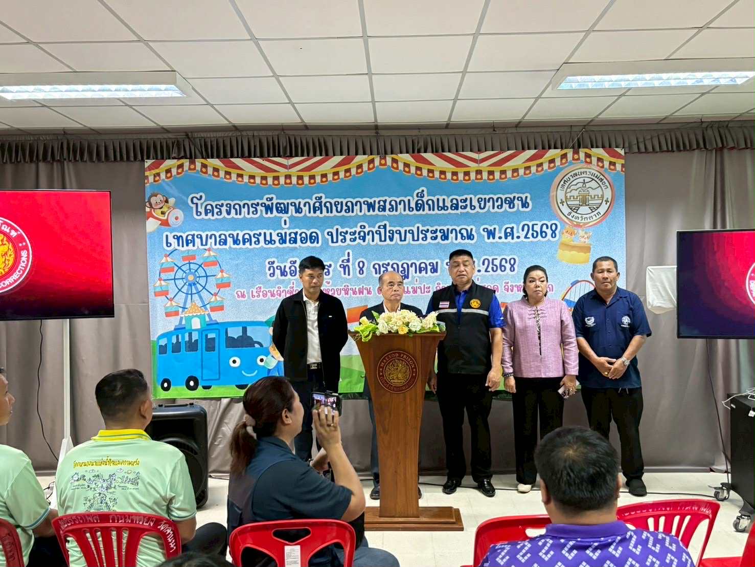 วันที่ 8 กรกฏาคม 2568 เวลา 08.30 น. ณ เรือนจำชั่วคราวห้วยหินฝน ตำบลแม่ปะ อำเภอแม่สอด จังหวัดตาก นายกุล เครือวีระ นายกเทศมนตรีนครแม่สอด มอบหมายให้นายธีรรัตน์ ใจโปร่ง รองนายกเทศมนตรีนครแม่สอด เป็นประธานในพิธีเปิดโครงการ พร้อมเลขานุการนายกเทศมนตรี ที่ปรึกษานายกเทศมนตรีและที่ปรึกษากิตติมศักดิ์นายกเทศมนตรีนครแม่สอด โดยมีนายพีระ วงค์หมอ ผู้อำนวยการกองการสึกษา พร้อมด้วยพนักงานกองการศึกษาและผู้เกี่ยวข้อง กล่าวถึงวัตถุประสงค์ของการจัดโครงการในครั้งนี้ 1. เพื่อพัฒนาศักยภาพด้านต่างๆ ของสภาเด็กและเยาวชน 2. เพื่อส่งเสริมให้สภาเด็กและเยาวชน มีความเข้มแข็งและสามารถเป็นแกนนำเด็กและเยาวชนในเขตพื้นที่เทศบาลนครแม่สอด 3. เพื่อพัฒนาาทักษะที่จำเป็นในการทำงานร่วมกัน 4. เพื่อให้ทราบถึงปัญหาและช่องทางในการเข้าถึงการแก้ไขปัญหา ในรูปแบบที่มีประสิทธิภาพ