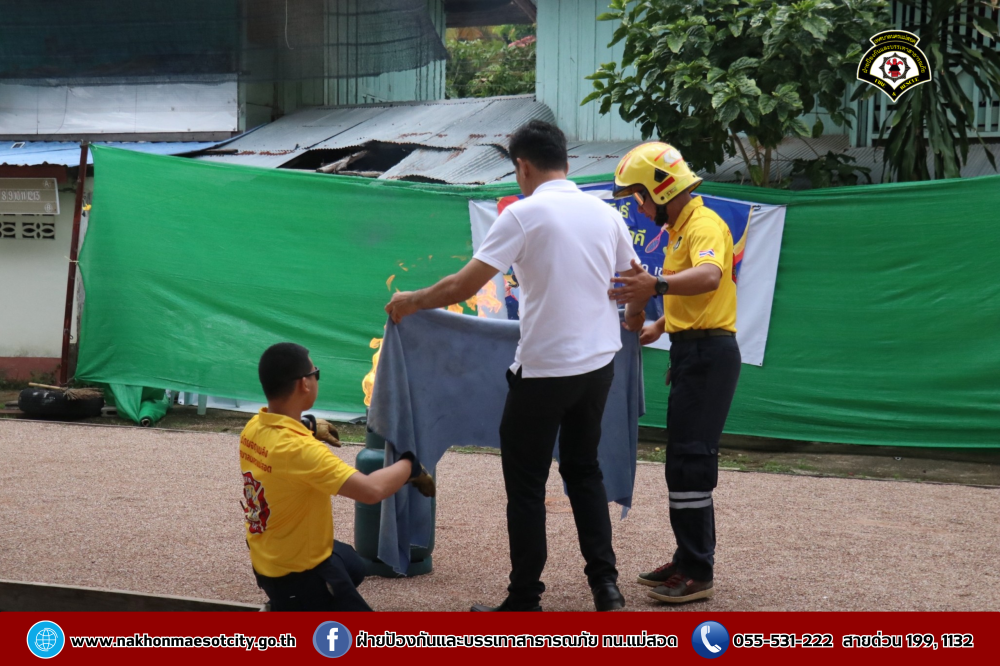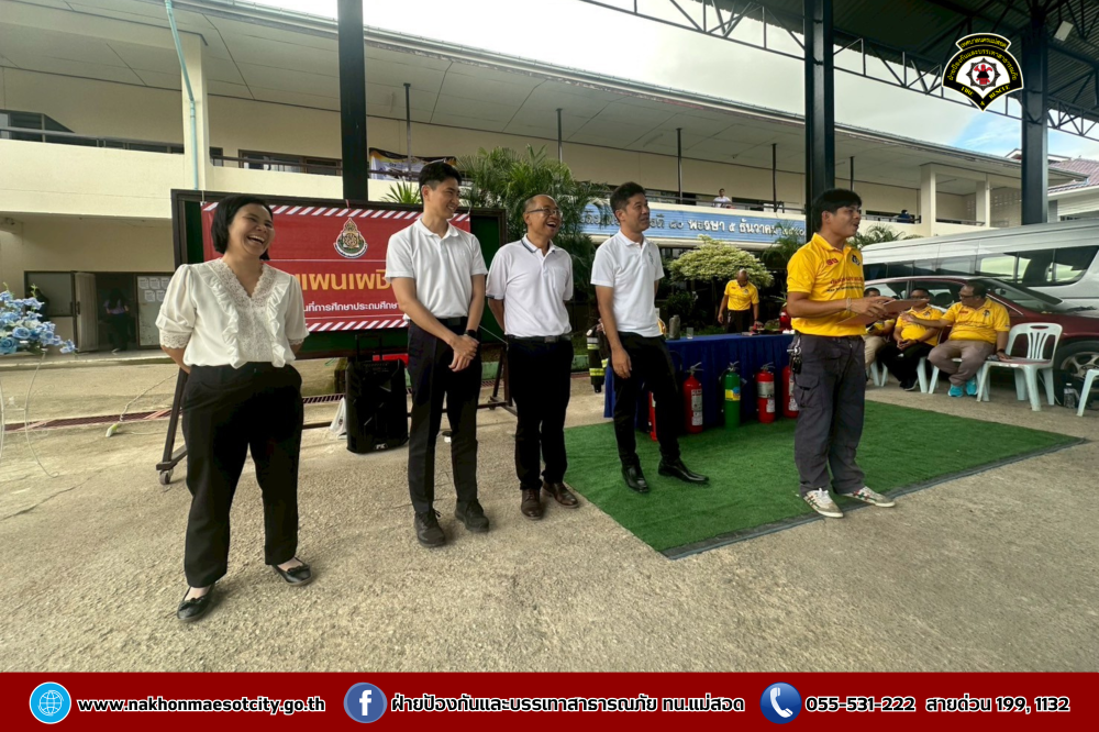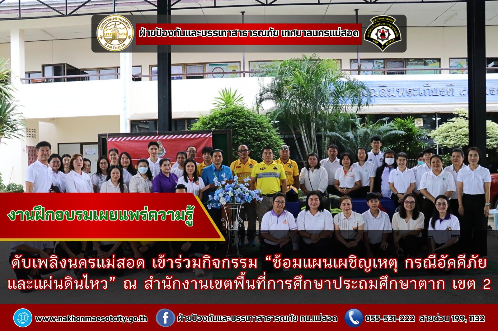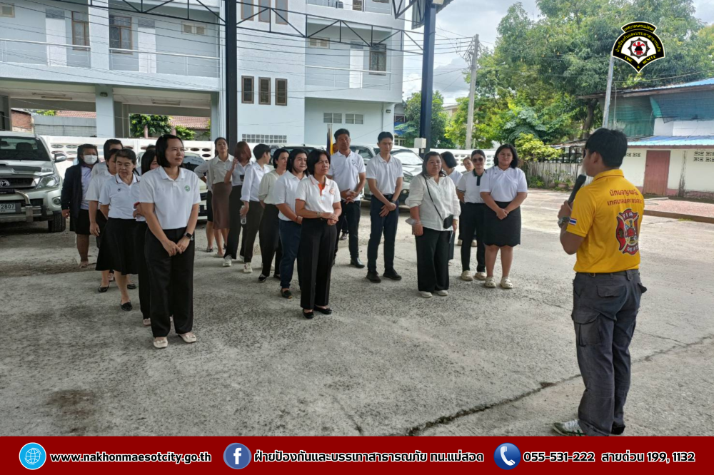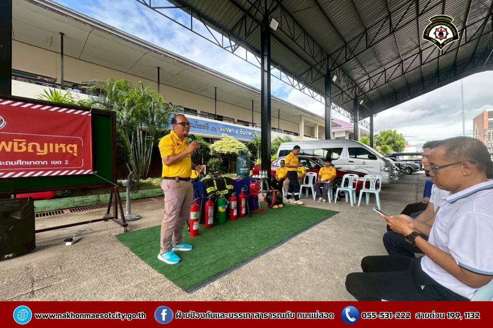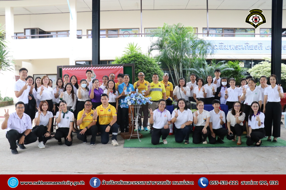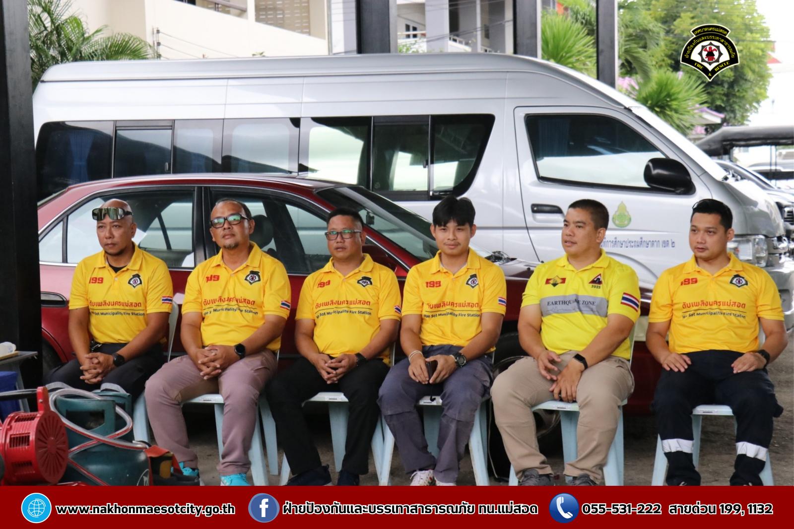 นายกุล เครือวีระ นายกเทศมนตรีนครแม่สอด มอบหมายให้ นายมนูศักดิ์ จันทร์โต นักป้องกันและบรรเทาสาธารณภัยชำนาญการ รักษาราชการแทน หัวหน้าฝ่ายป้องกันและบรรเทาสาธารณภัย พร้อมคณะวิทยากร เข้าร่วมกิจกรรม “ซ้อมแผนเผชิญเหตุ กรณีอัคคีภัยและแผ่นดินไหว” โดยมีนายวินัย เมฆหมอก ผู้อำนวยการสำนักงานเขตพื้นที่การศึกษาประถมศึกษาตาก เขต 2 ได้มอบหมายให้ นายชยพล ดวงดี รองผู้อำนวยการสำนักงานเขตพื้นที่การศึกษาประถมศึกษาตาก เขต 2 เป็นประธานเปิดกิจกรรมฯ เพื่อเสริมสร้างความรู้ ความเข้าใจ และสามารถปฏิบัติตนได้อย่างถูกต้อง เมื่อเกิดเหตุการณ์ฉุกเฉิน ผู้ประสบภัยมีความปลอดภัยต่อชีวิต