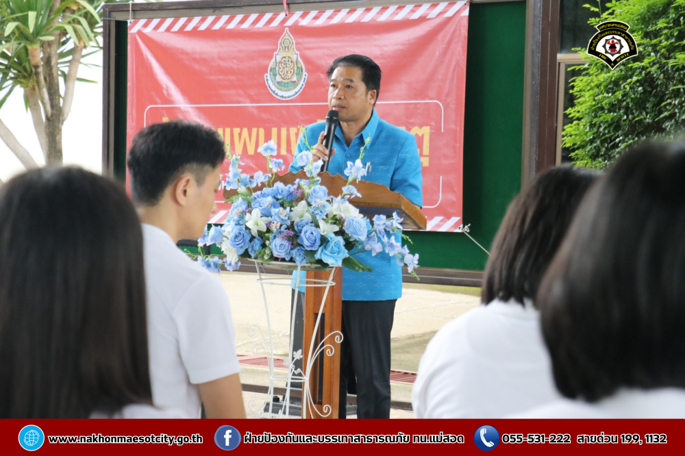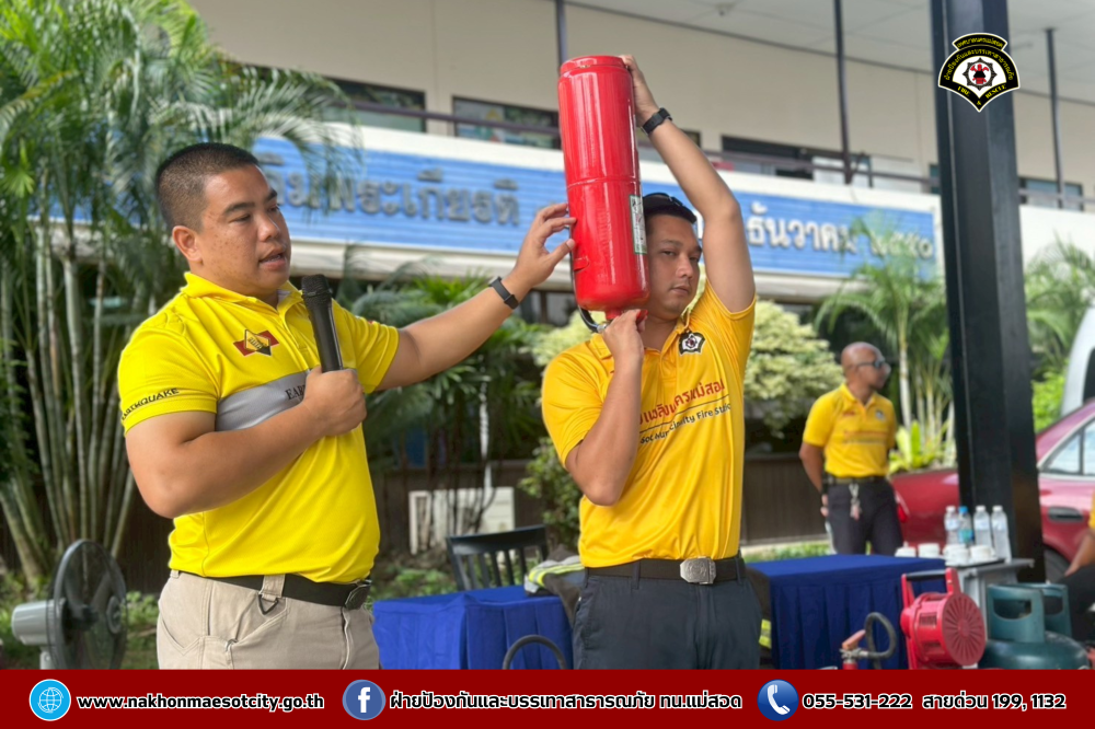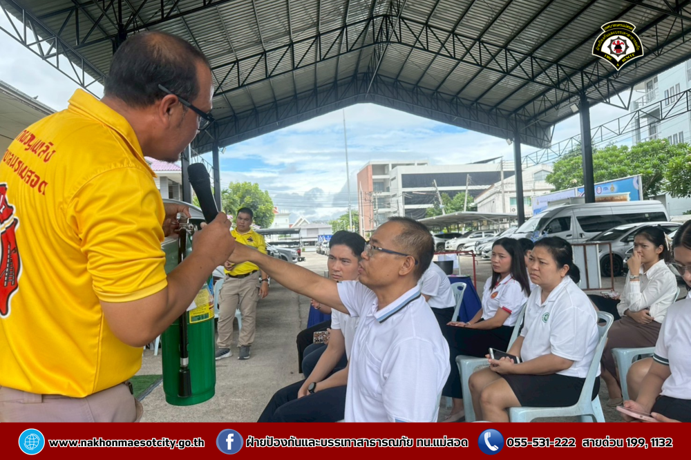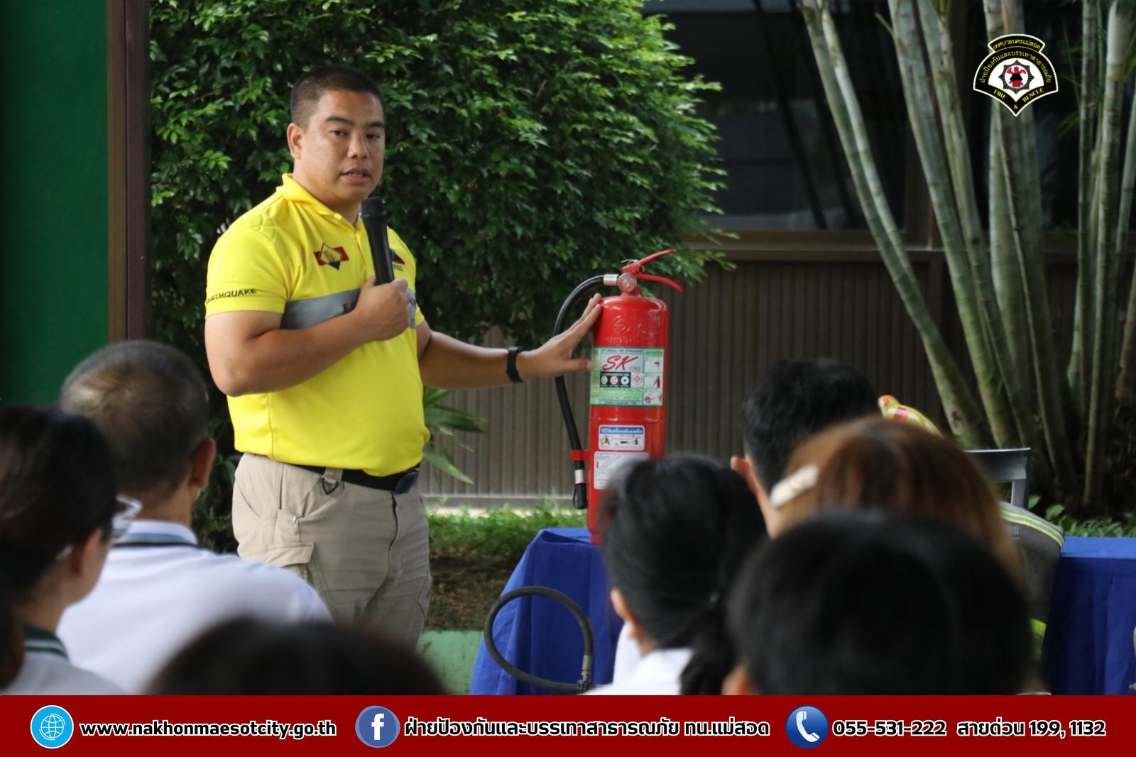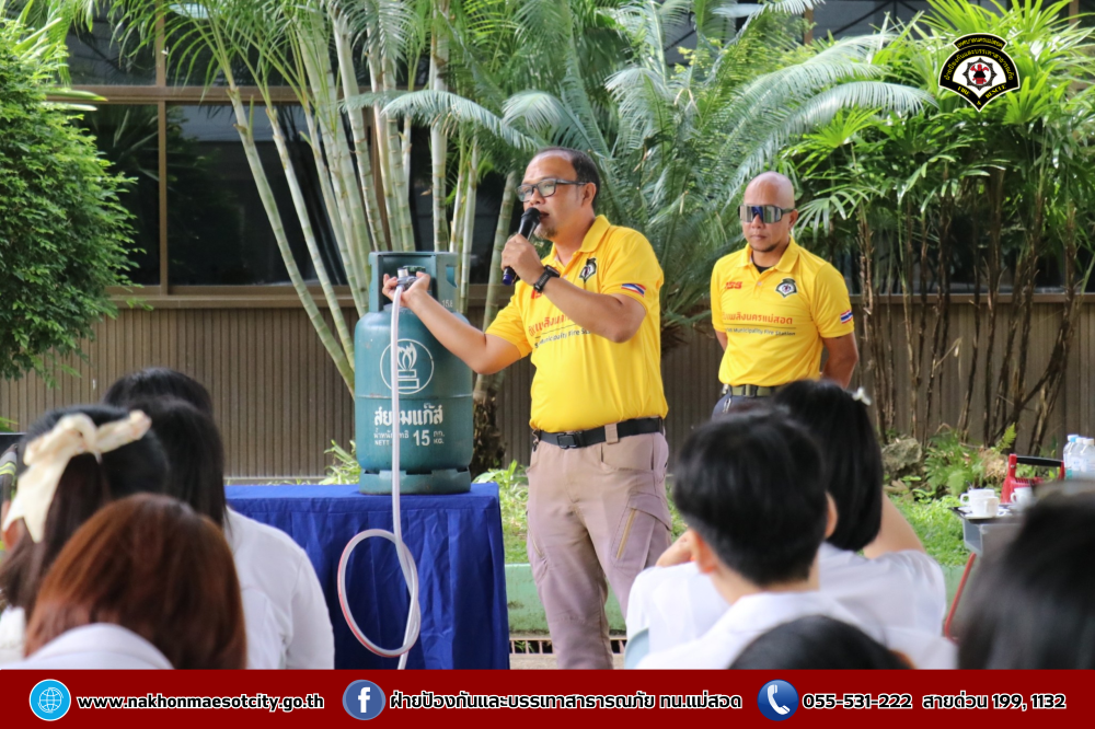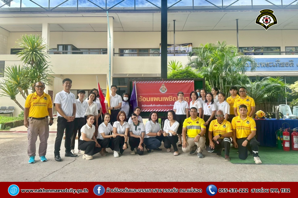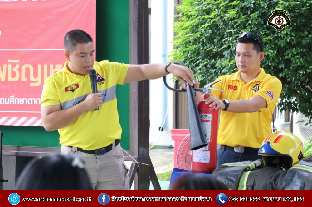 นายกุล เครือวีระ นายกเทศมนตรีนครแม่สอด มอบหมายให้ นายมนูศักดิ์ จันทร์โต นักป้องกันและบรรเทาสาธารณภัยชำนาญการ รักษาราชการแทน หัวหน้าฝ่ายป้องกันและบรรเทาสาธารณภัย พร้อมคณะวิทยากร เข้าร่วมกิจกรรม “ซ้อมแผนเผชิญเหตุ กรณีอัคคีภัยและแผ่นดินไหว” โดยมีนายวินัย เมฆหมอก ผู้อำนวยการสำนักงานเขตพื้นที่การศึกษาประถมศึกษาตาก เขต 2 ได้มอบหมายให้ นายชยพล ดวงดี รองผู้อำนวยการสำนักงานเขตพื้นที่การศึกษาประถมศึกษาตาก เขต 2 เป็นประธานเปิดกิจกรรมฯ เพื่อเสริมสร้างความรู้ ความเข้าใจ และสามารถปฏิบัติตนได้อย่างถูกต้อง เมื่อเกิดเหตุการณ์ฉุกเฉิน ผู้ประสบภัยมีความปลอดภัยต่อชีวิต