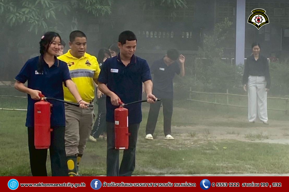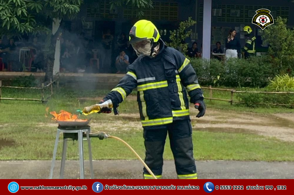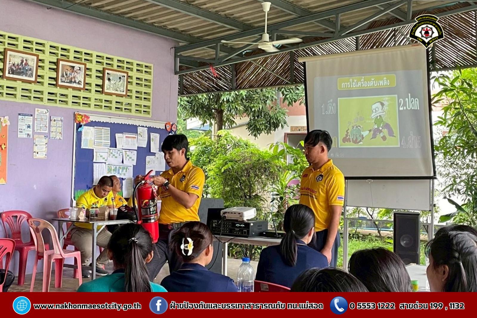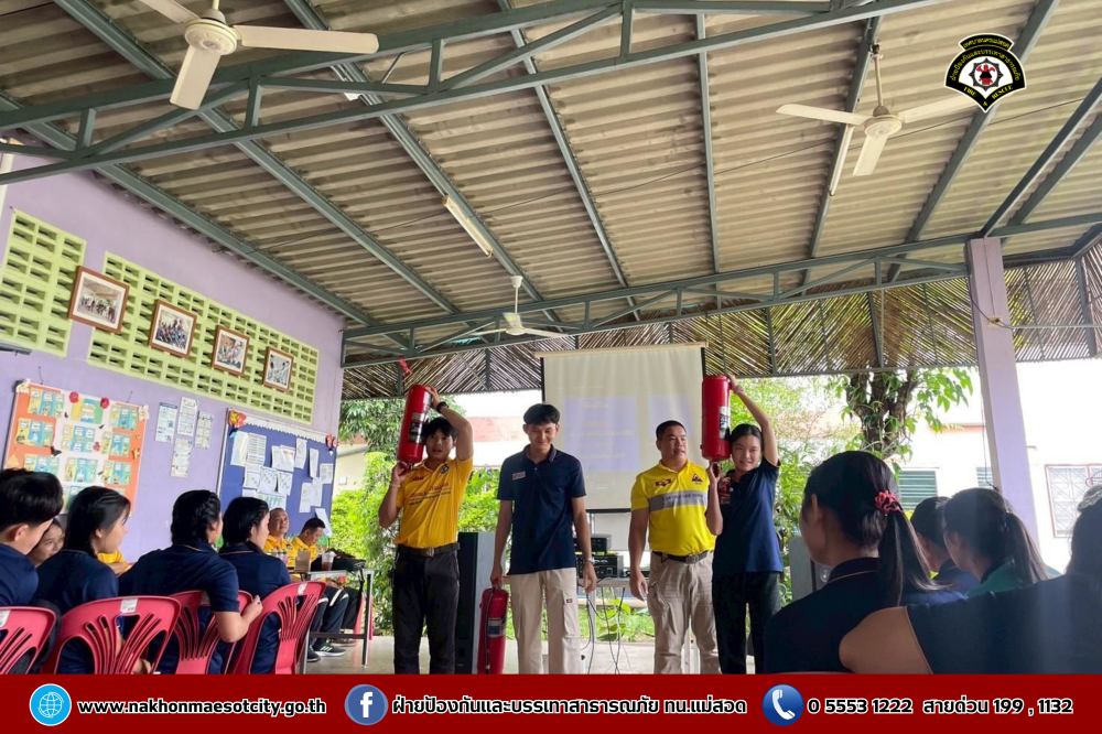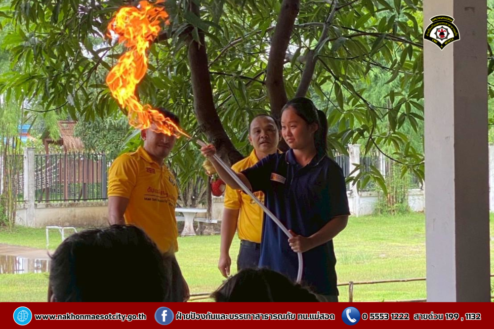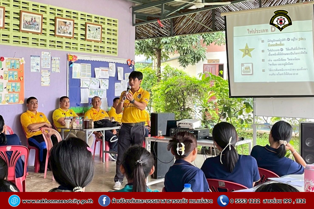 นายกุล เครือวีระ นายกเทศมนตรีนครแม่สอด มอบหมายให้ นายมนูศักดิ์ จันทร์โต นักป้องกันและบรรเทาสาธารณภัยชำนาญการ รักษาราชการแทน หัวหน้าฝ่ายป้องกันและบรรเทาสาธารณภัย พร้อมคณะวิทยากร ออกดำเนินการให้ความรู้เกี่ยวกับการป้องกันและระงับอัคคีภัย โดยมีคณะครู และนักเรียนที่เข้าร่วม จำนวน 60 คน เพื่อให้สามารถรับมือกับสถานการณ์ไฟไหม้และช่วยเหลือผู้อื่นได้อย่างถูกต้องในกรณีฉุกเฉิน