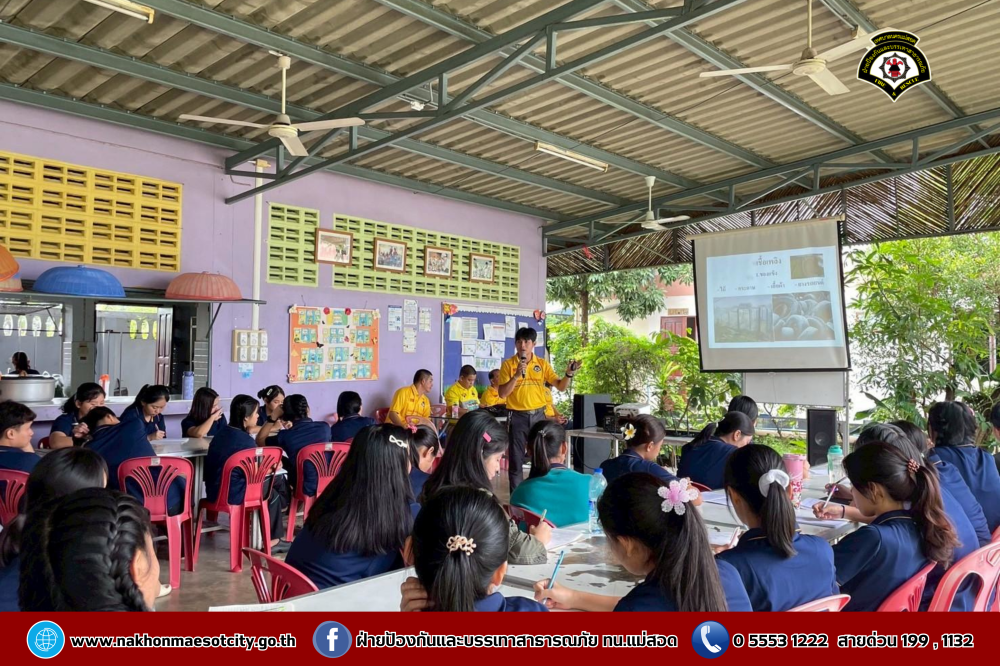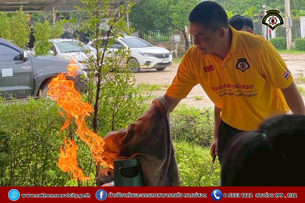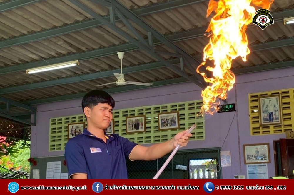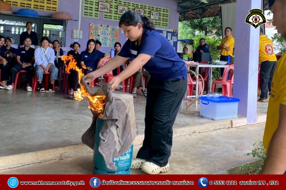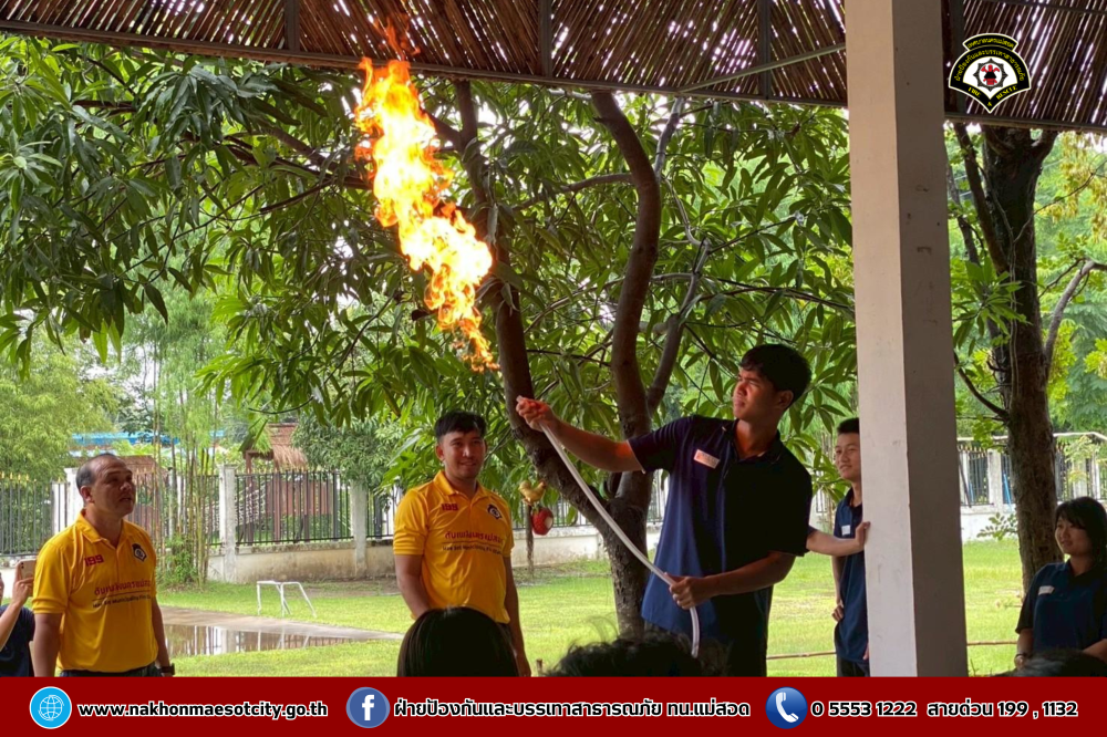 นายกุล เครือวีระ นายกเทศมนตรีนครแม่สอด มอบหมายให้ นายมนูศักดิ์ จันทร์โต นักป้องกันและบรรเทาสาธารณภัยชำนาญการ รักษาราชการแทน หัวหน้าฝ่ายป้องกันและบรรเทาสาธารณภัย พร้อมคณะวิทยากร ออกดำเนินการให้ความรู้เกี่ยวกับการป้องกันและระงับอัคคีภัย โดยมีคณะครู และนักเรียนที่เข้าร่วม จำนวน 60 คน เพื่อให้สามารถรับมือกับสถานการณ์ไฟไหม้และช่วยเหลือผู้อื่นได้อย่างถูกต้องในกรณีฉุกเฉิน