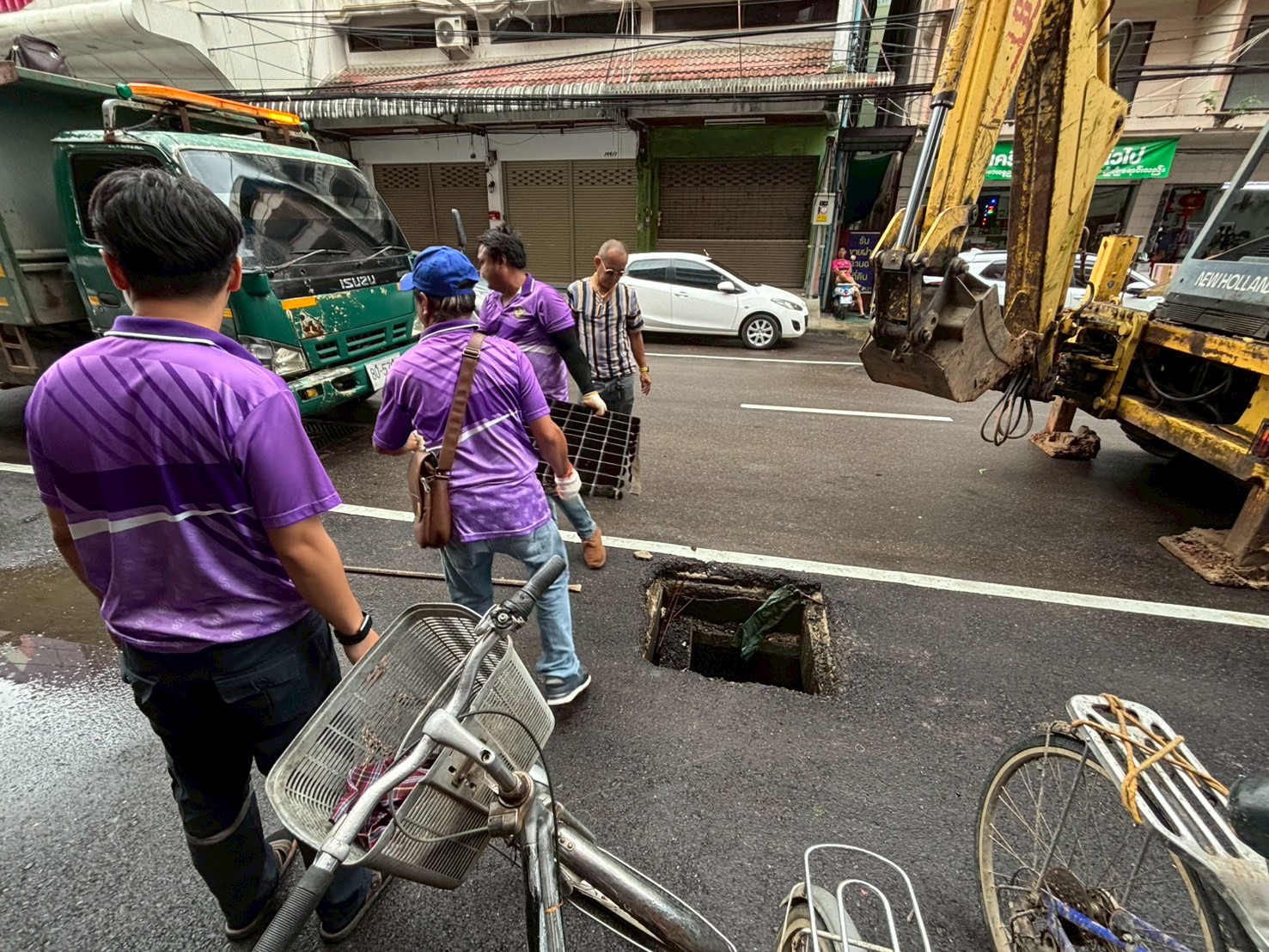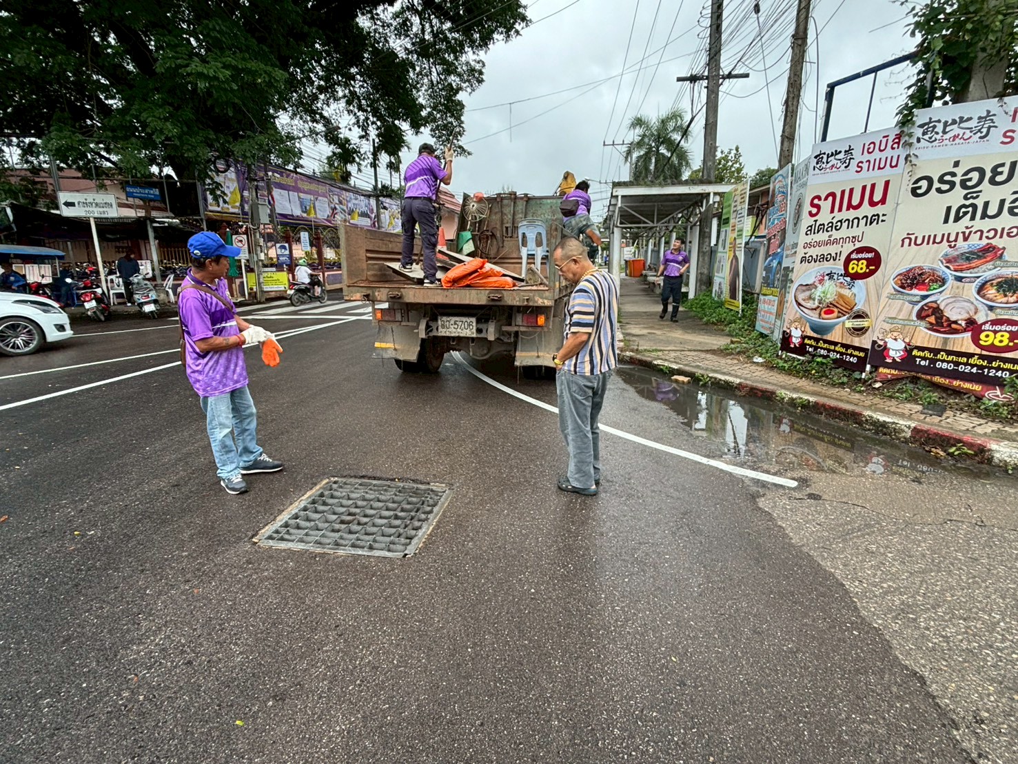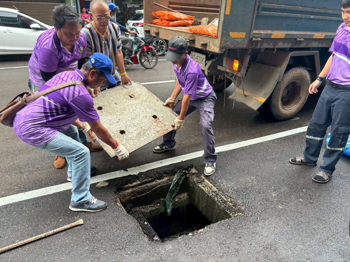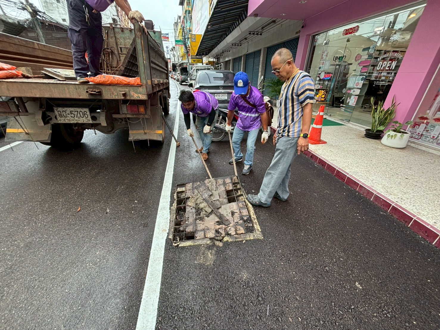 2. ได้เข้าดำเนินการเปลี่ยนฝาท่อระบายน้ำ บริเวณตรงข้ามร้านเซเว่นใกล้กับฮงล้ง จำนวน 2 ฝา