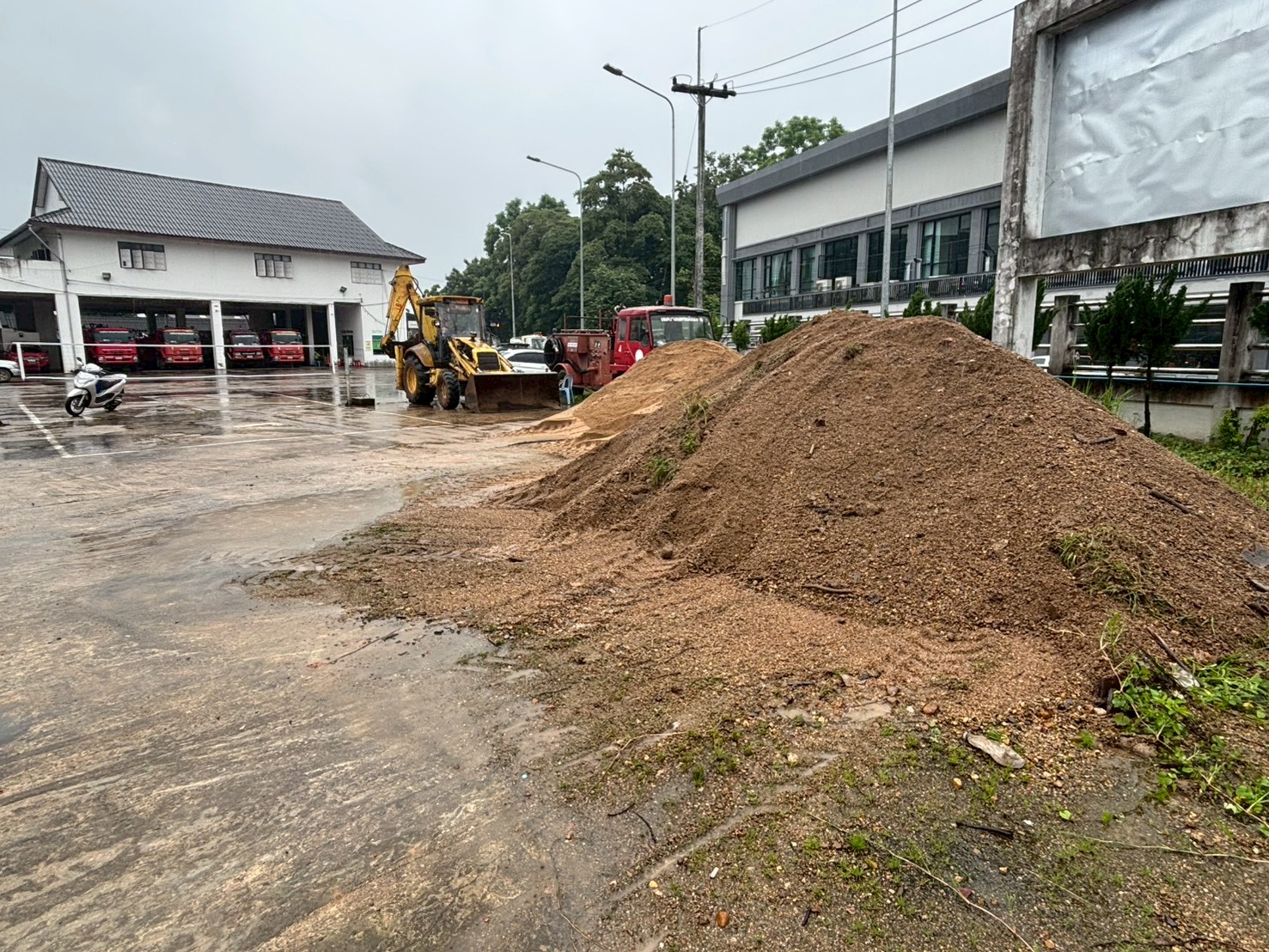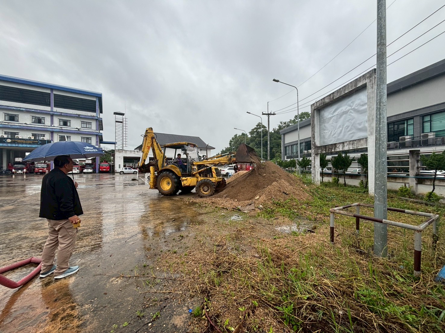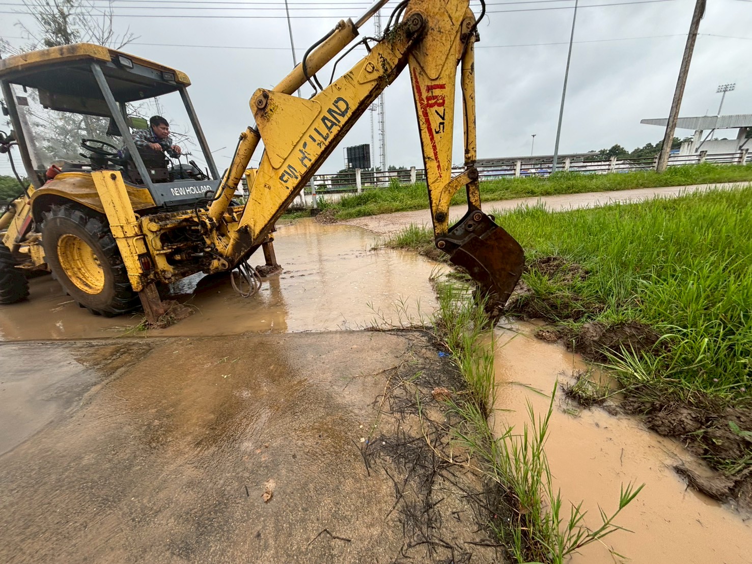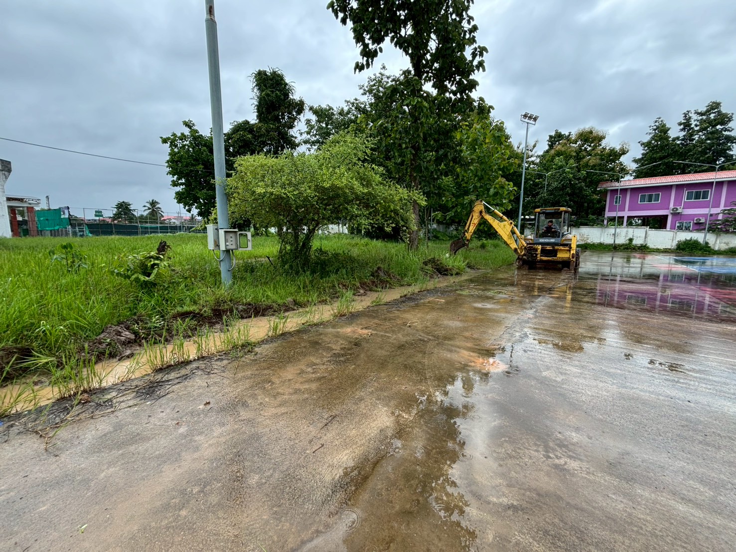 3. ได้เข้าดำเนินการขุดทำร่องระบายน้ำ บริเวณถนนหน้าสนามเทนนิส สนามกีฬา 5 อำเภอชายแดน