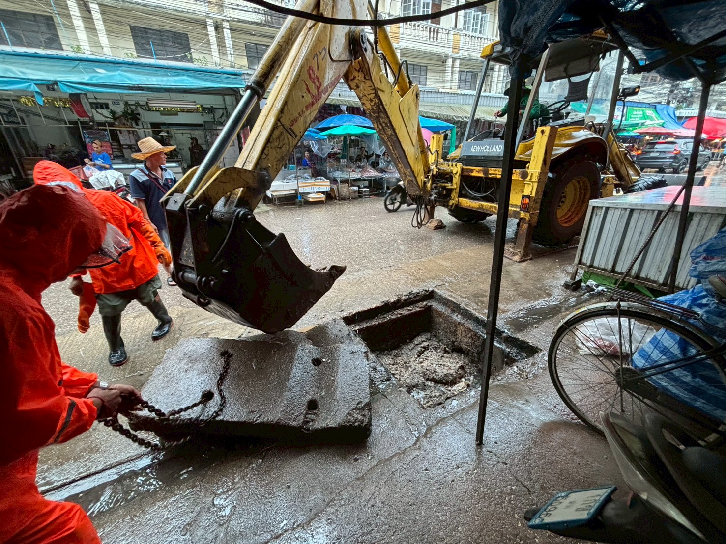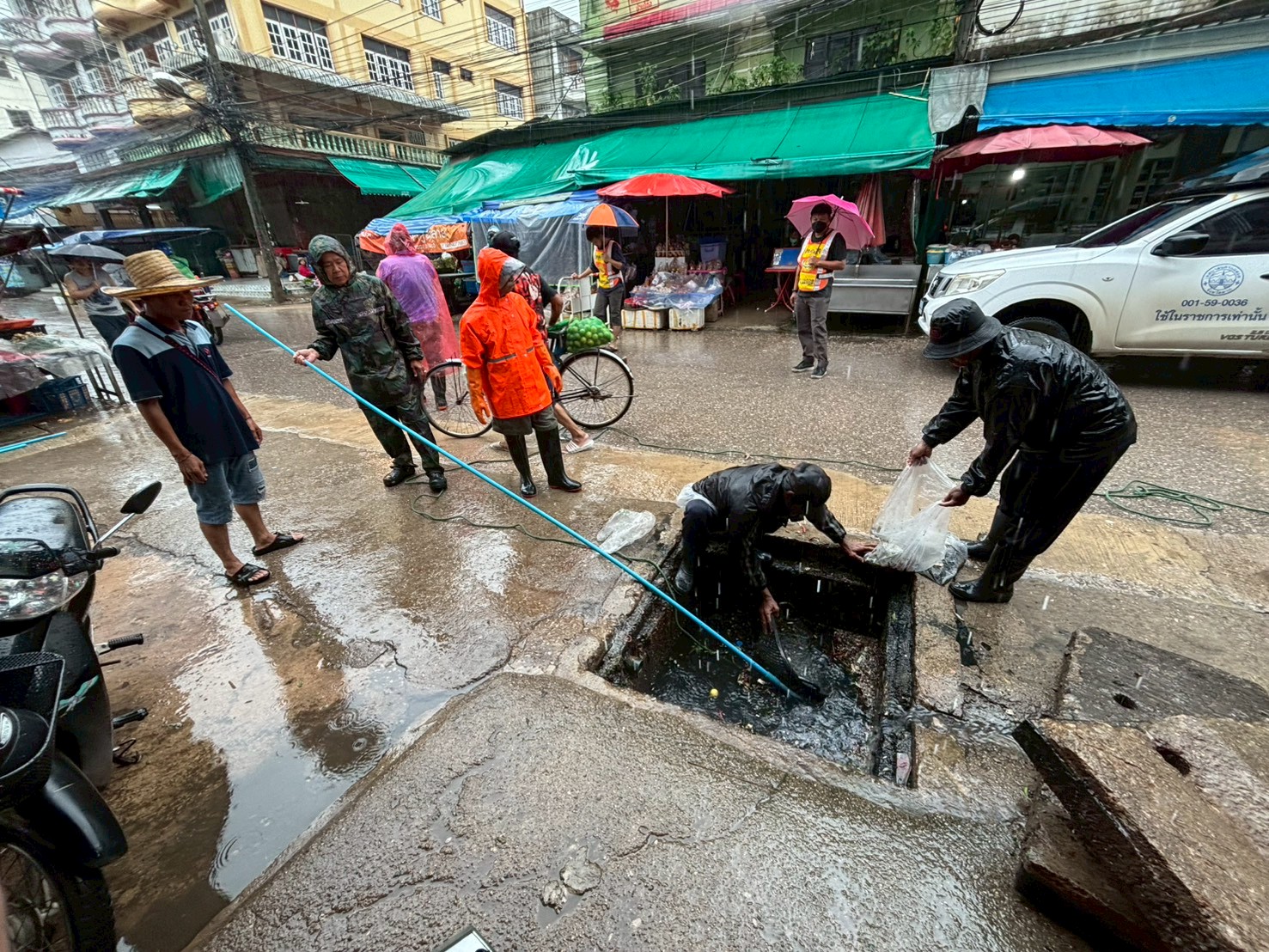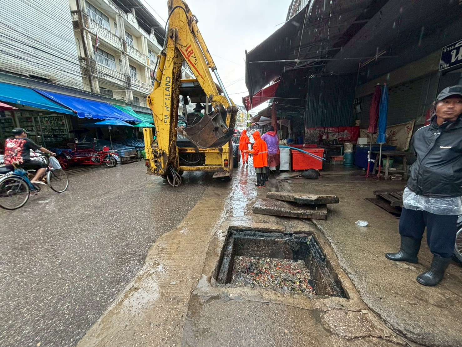 ได้เข้าดำเนินการดูดโคลนลอกท่อระบายน้ำ บริเวณตลาดพาเจริญ