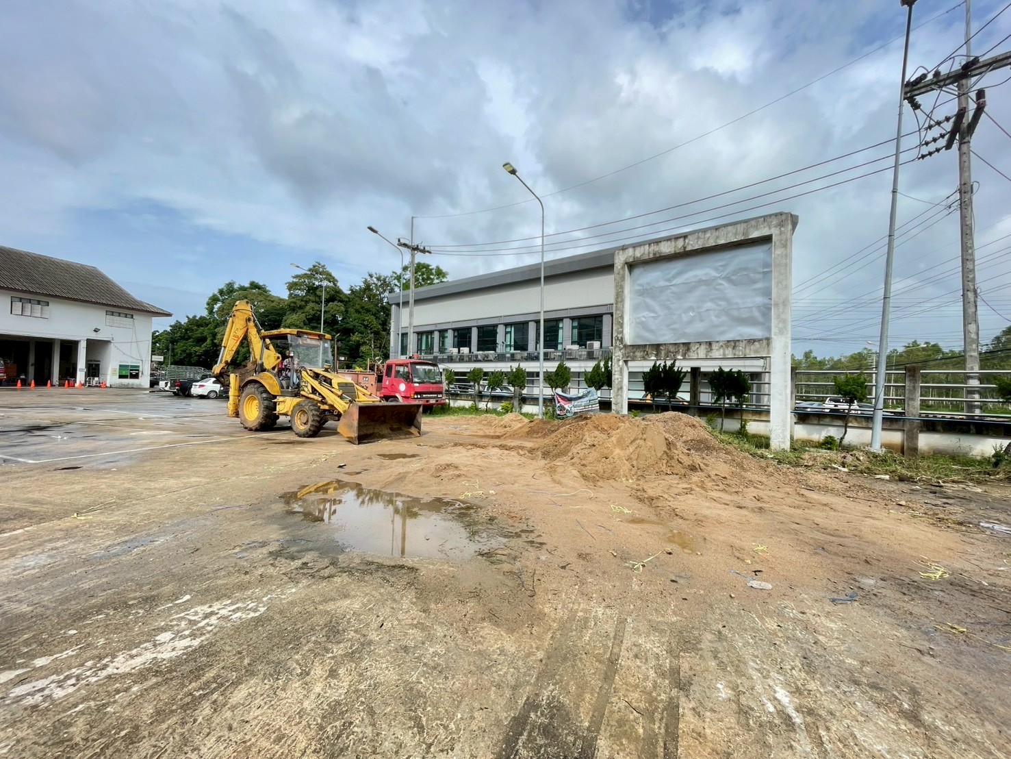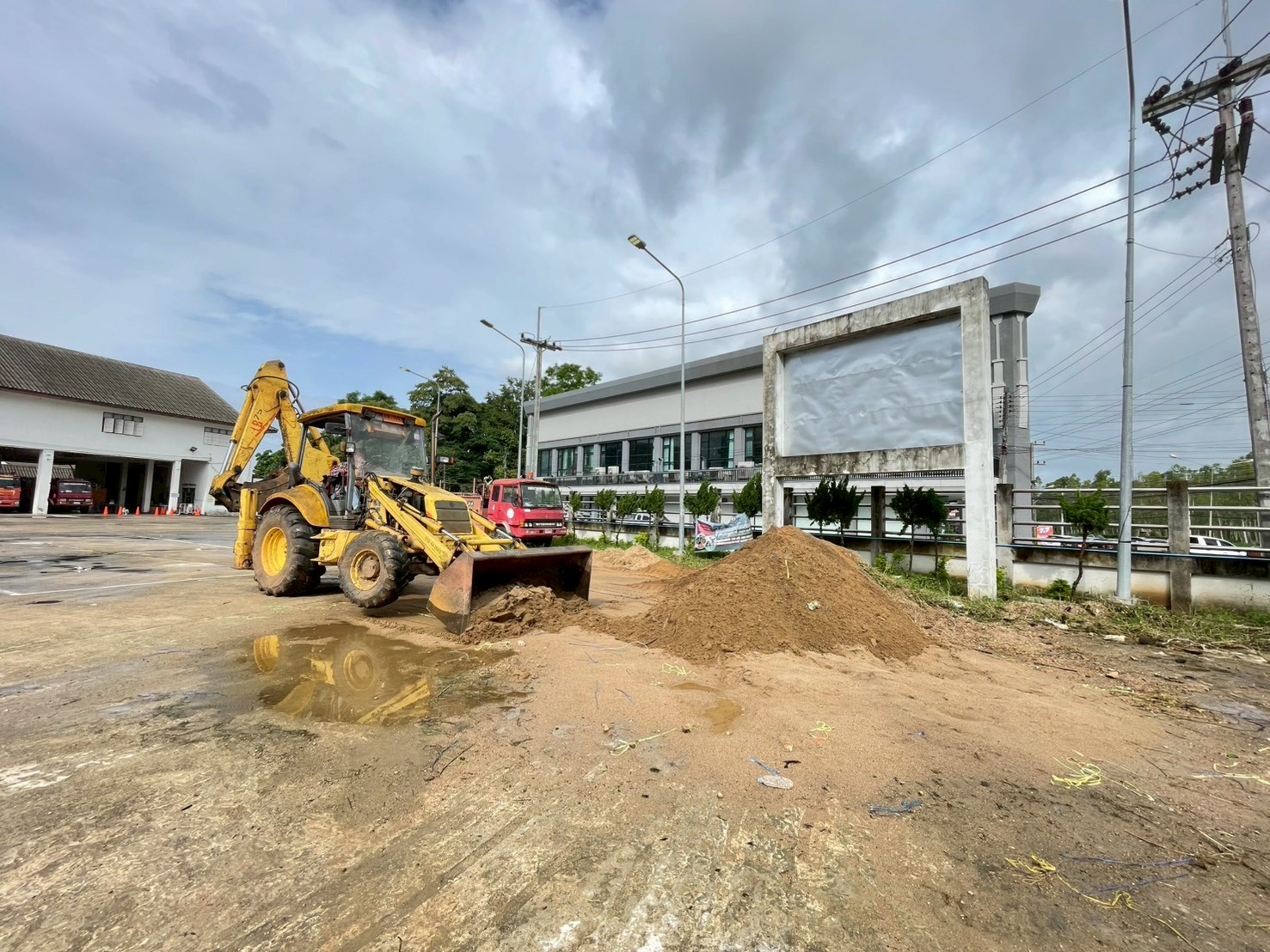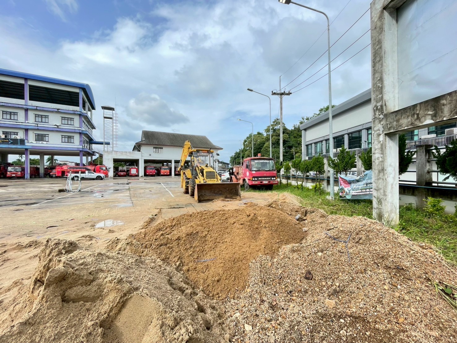1. ได้เข้าดำเนินการตักโกยกองทราย บริเวณหน้าสำนักงานงานป้องกันฯ