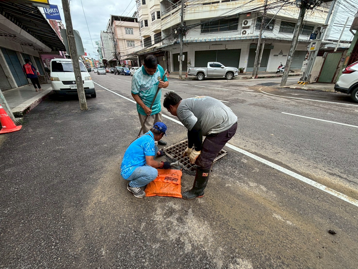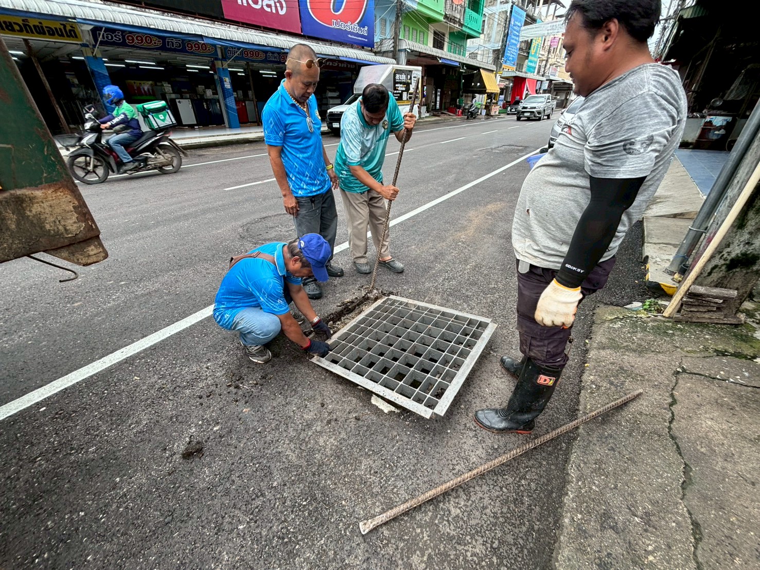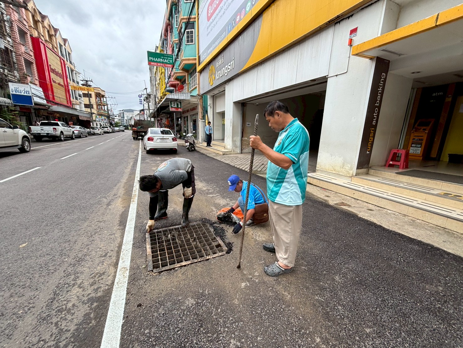 2. ได้เข้าดำเนินการขยับฝาท่อระบายน้ำให้ตรงกับบ่อพัก บริเวณหน้าธนาคารกรุงศรี ตรงข้ามข้าวมันไก่เจ้แว่น