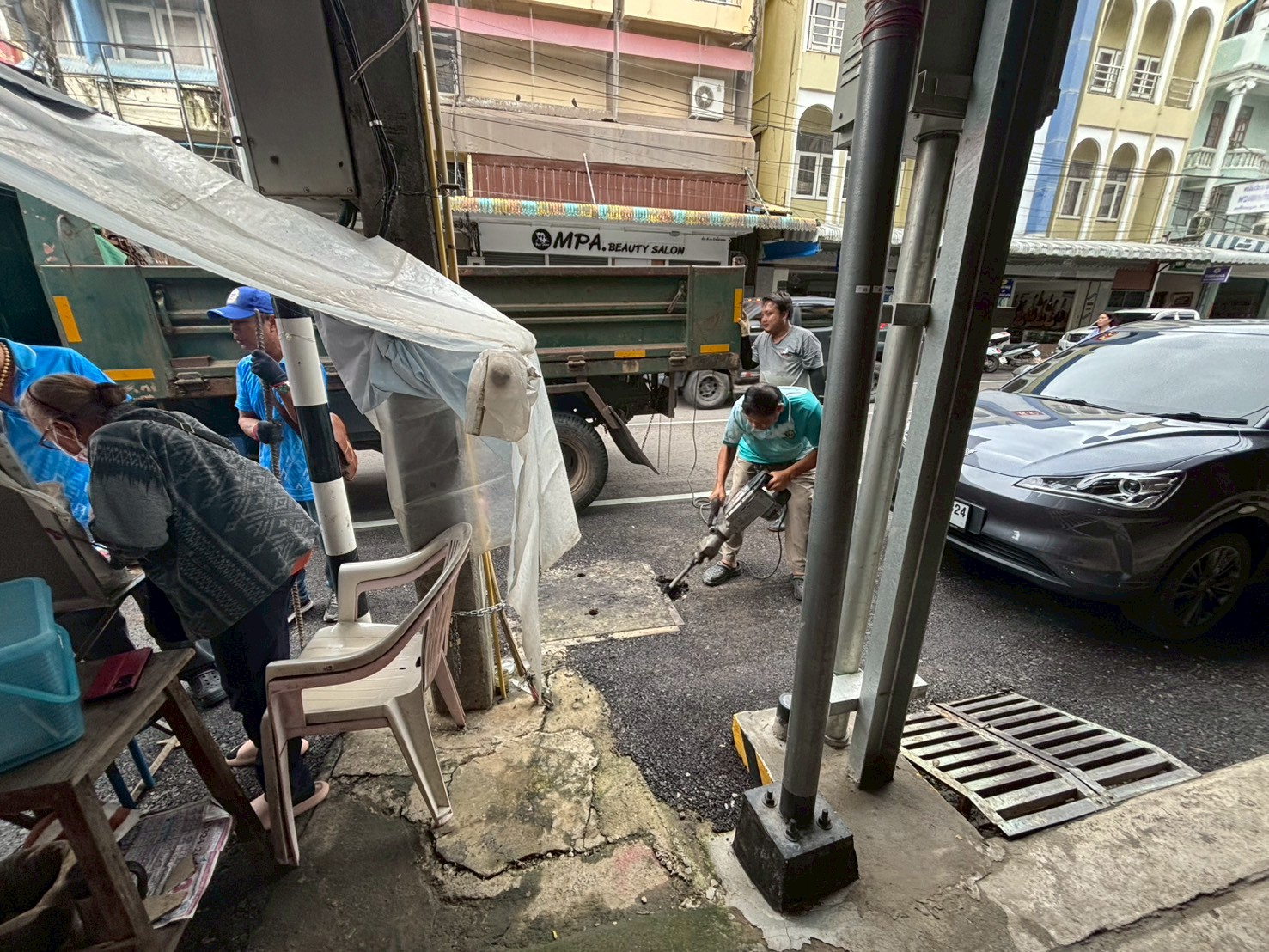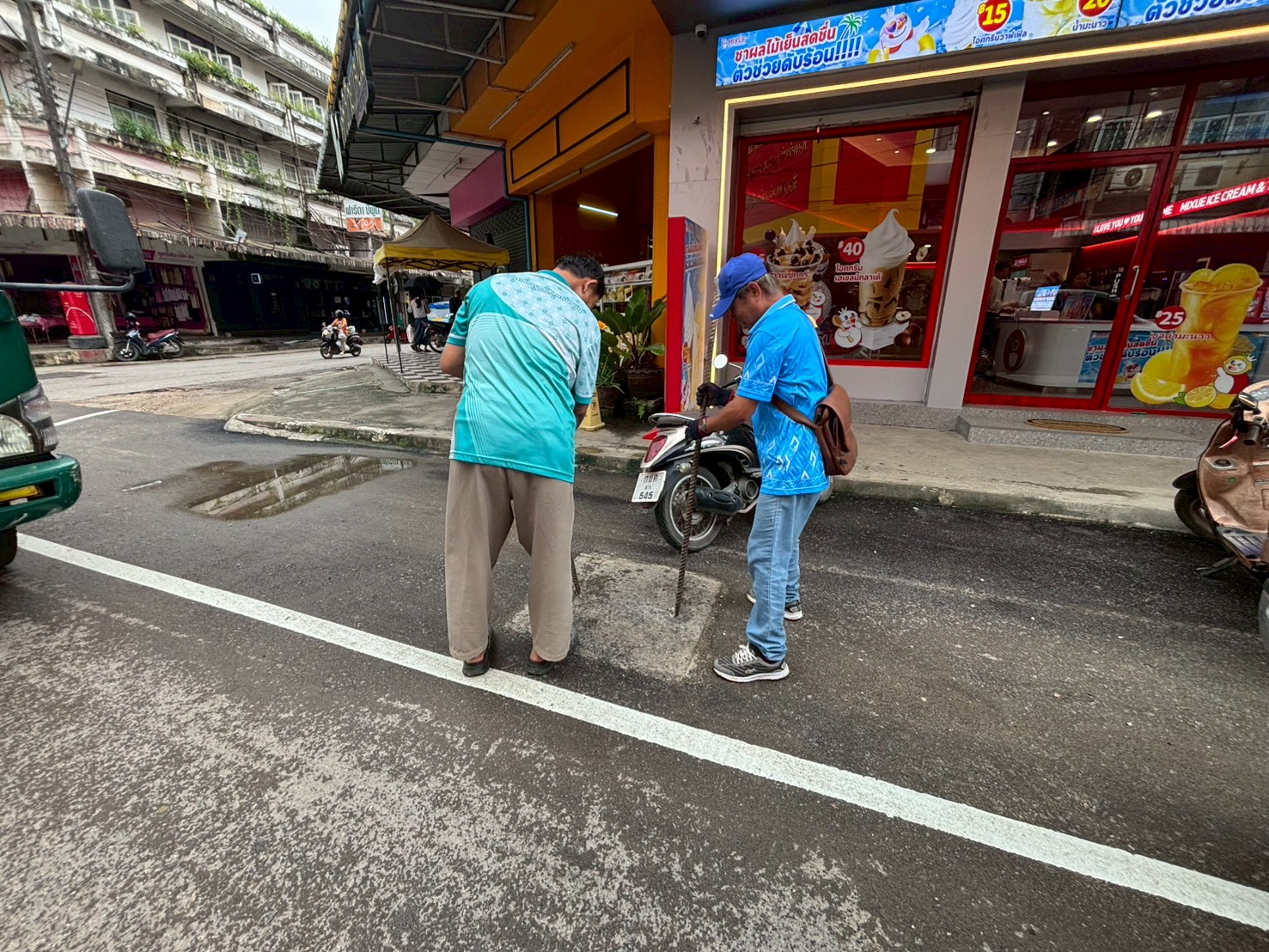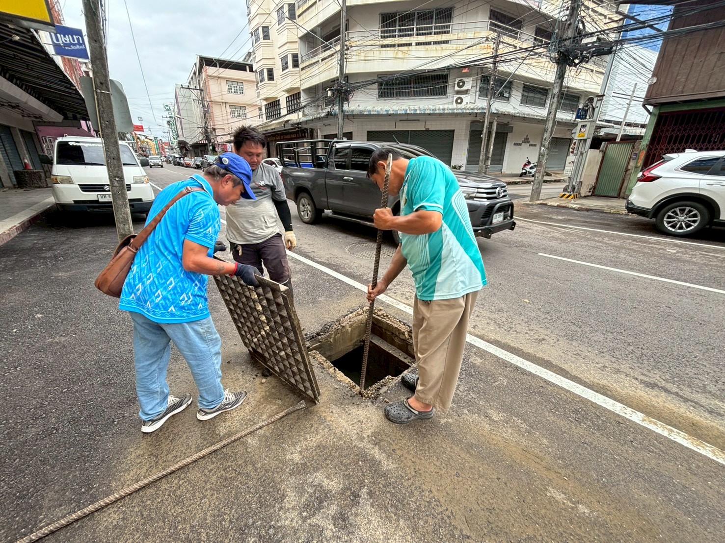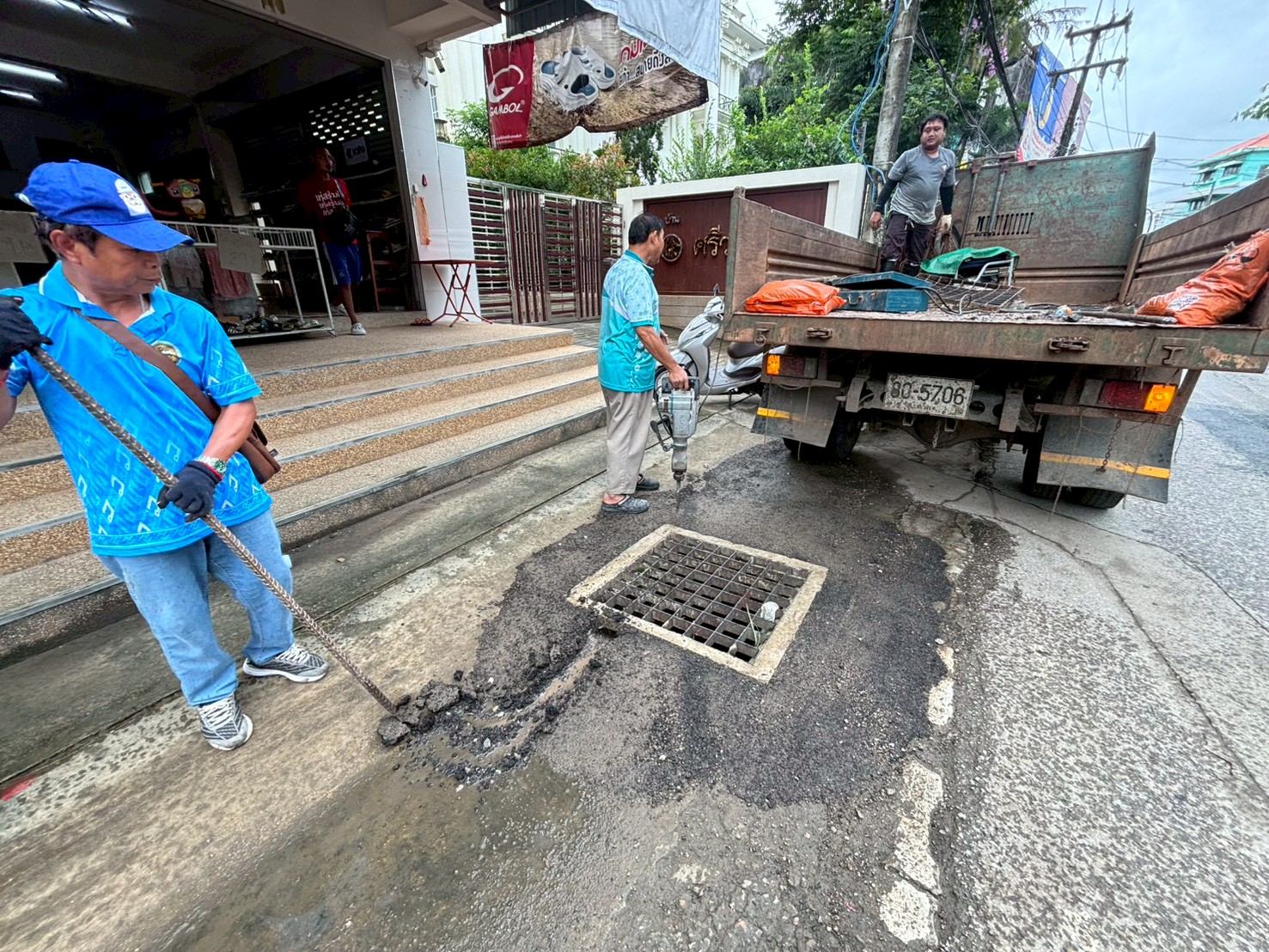 2. ได้เข้าดำเนินการขยับฝาท่อระบายน้ำให้ตรงกับบ่อพัก บริเวณหน้าธนาคารกรุงศรี ตรงข้ามข้าวมันไก่เจ้แว่น