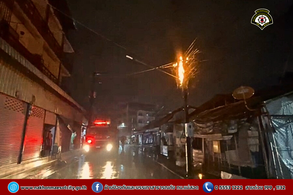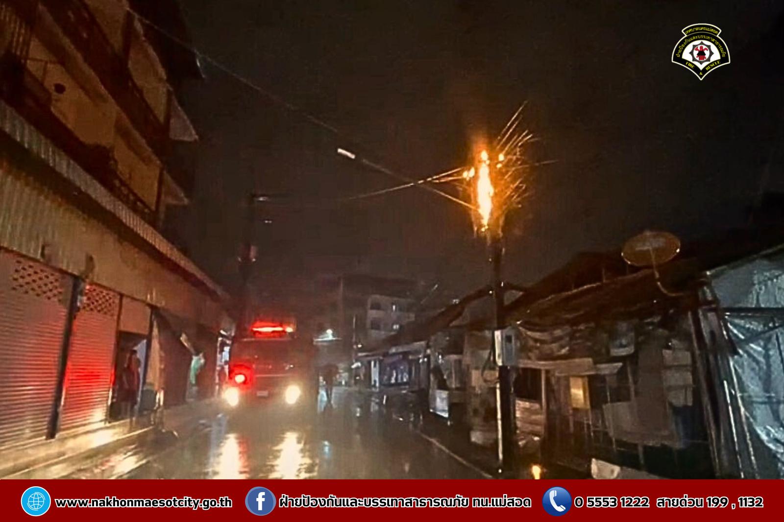 ดับเพลิงนครแม่สอด ออกระงับเหตุไฟฟ้าลัดวงจร บริเวณถนนราษฎร์อุทิศ ใกล้เคียงโรงพยาบาลแม่สอด-ราม