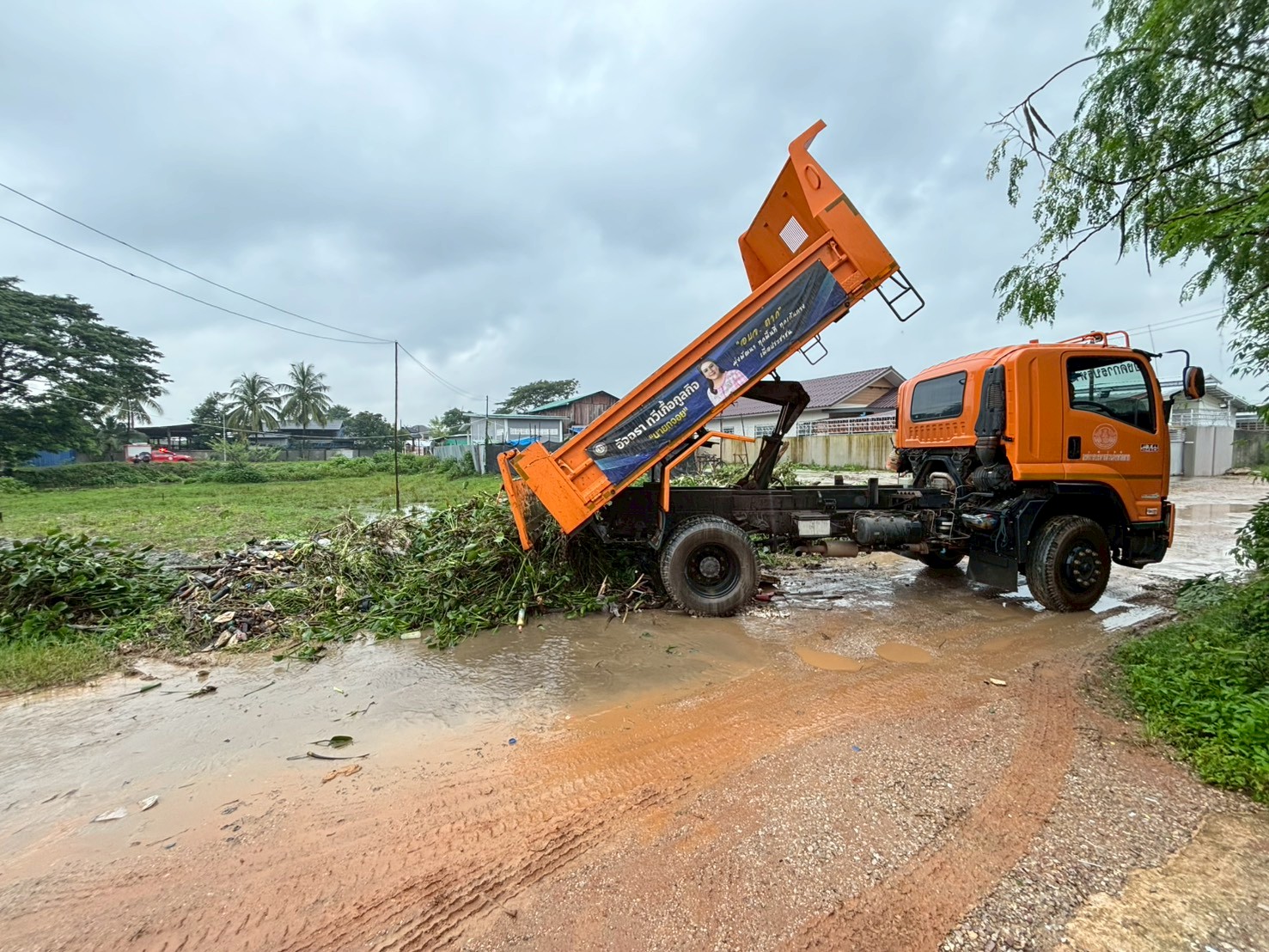 ได้เข้าดำเนินการปรับเกลี่ยเศษวัชพืช อำนวยความสะดวกให้ อบจ. ในการขุดลอกผักตบชวา บริเวณเลียบคลองชลประทาน