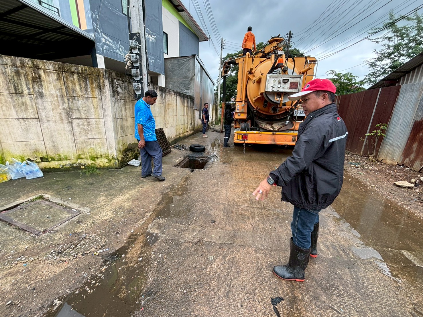 2. ได้เข้าดำเนินการดูดโคลนลอกท่อระบายน้ำ บริเวณหมู่บ้านถุงทอง ชุมชนวัดหลวง