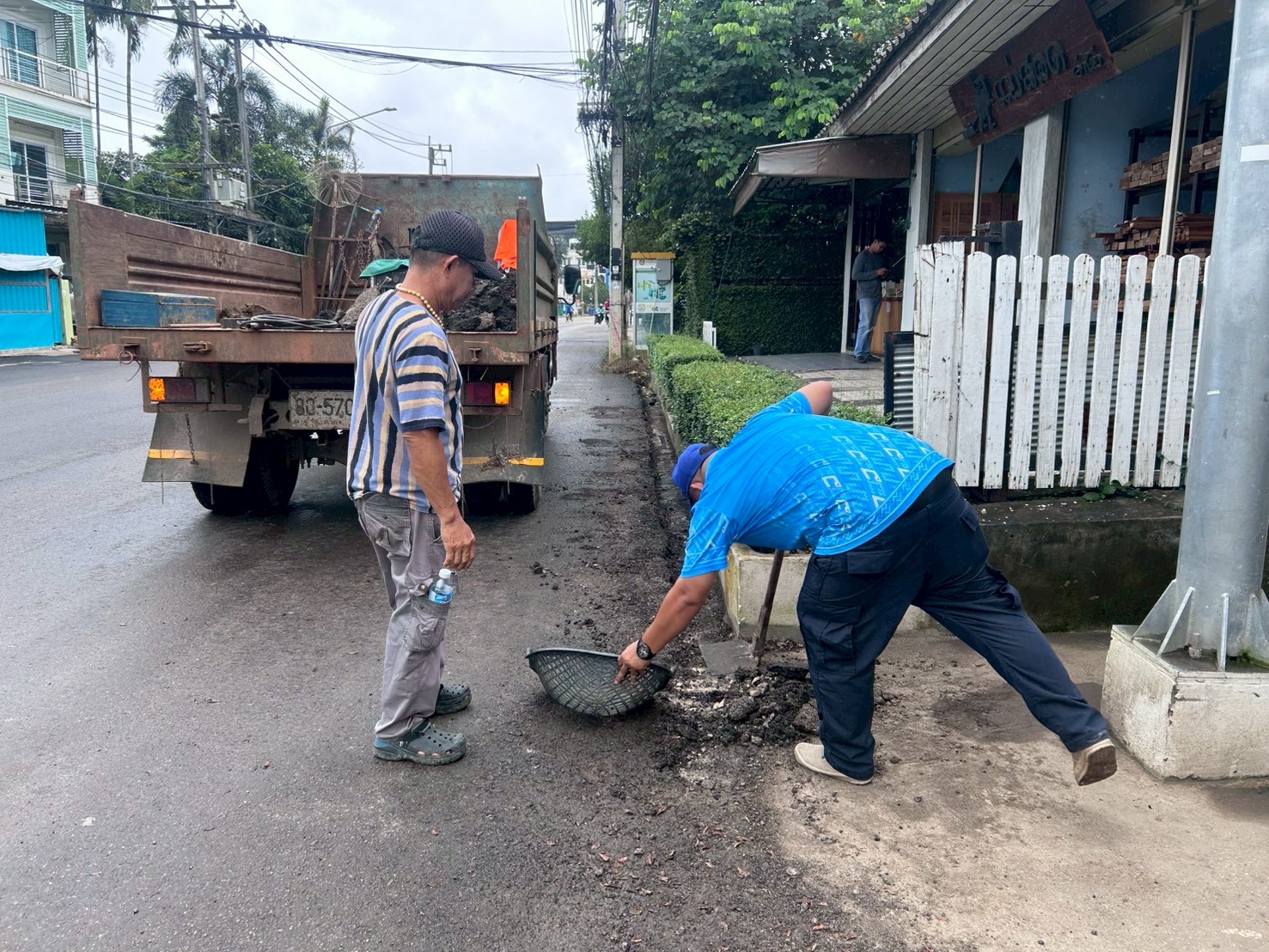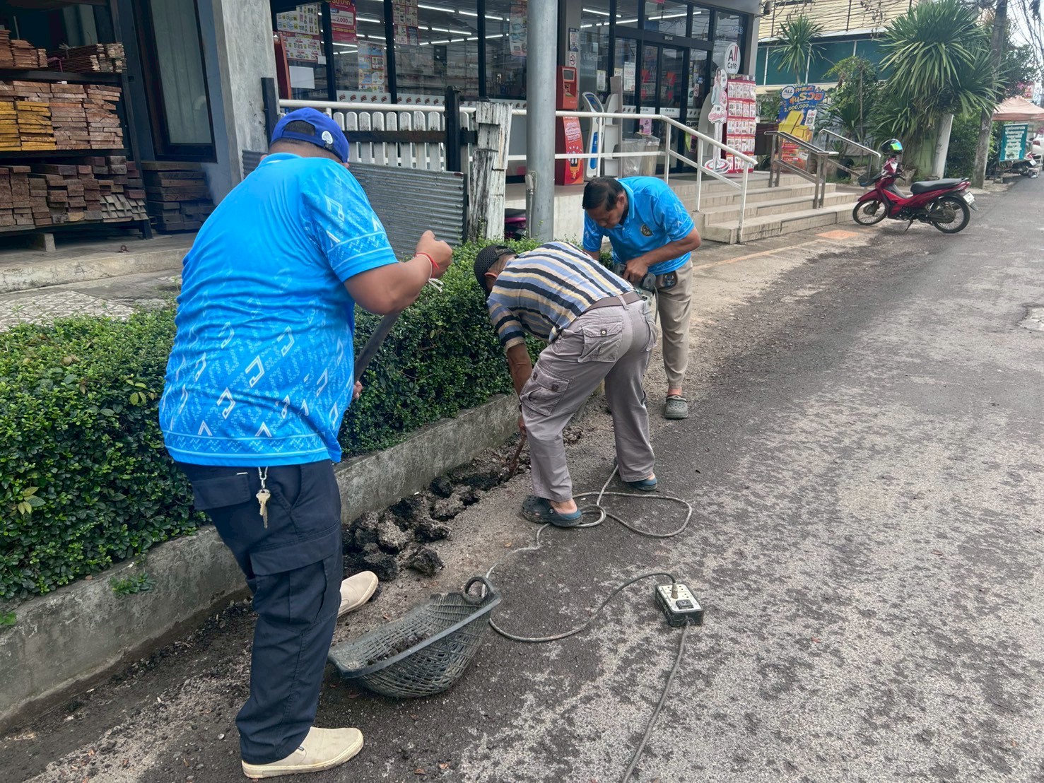 2. ได้เข้าดำเนินการขุดร่องระบายน้ำ บริเวณหน้าร้านขายไม้ติดกับร่านเซเว่น แยกเจ้าสัว