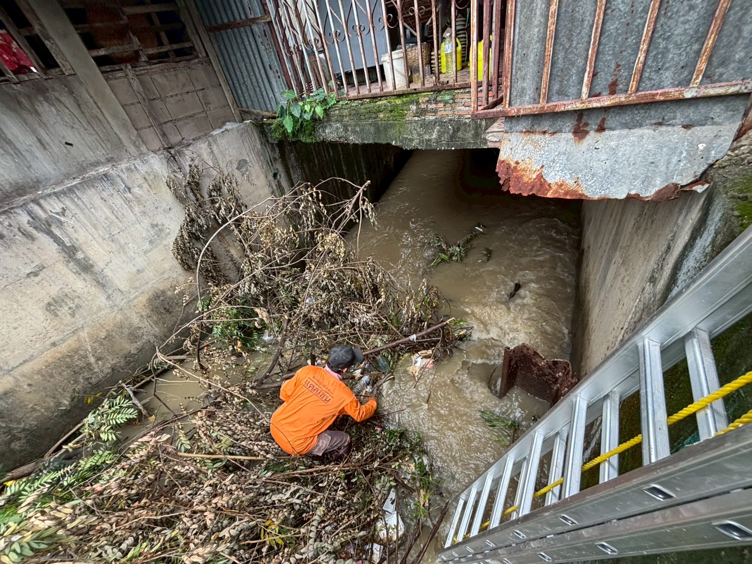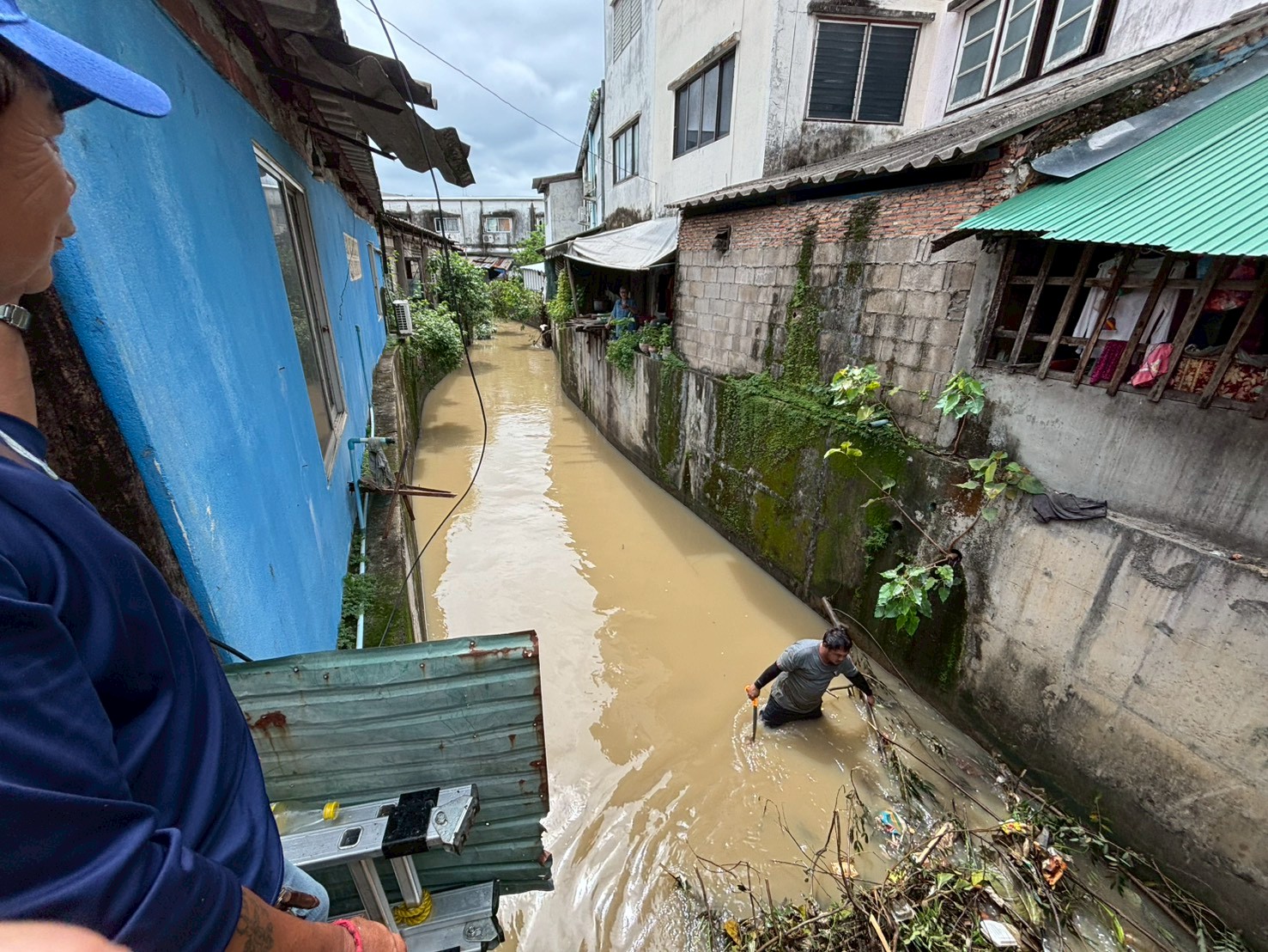 3. ได้เข้าดำเนินการเก็บเคลียร์กิ่งไม้ออกจากรางระบายน้ำ บริเวณศาลพ่อท้าว ตลาดศรีมอย