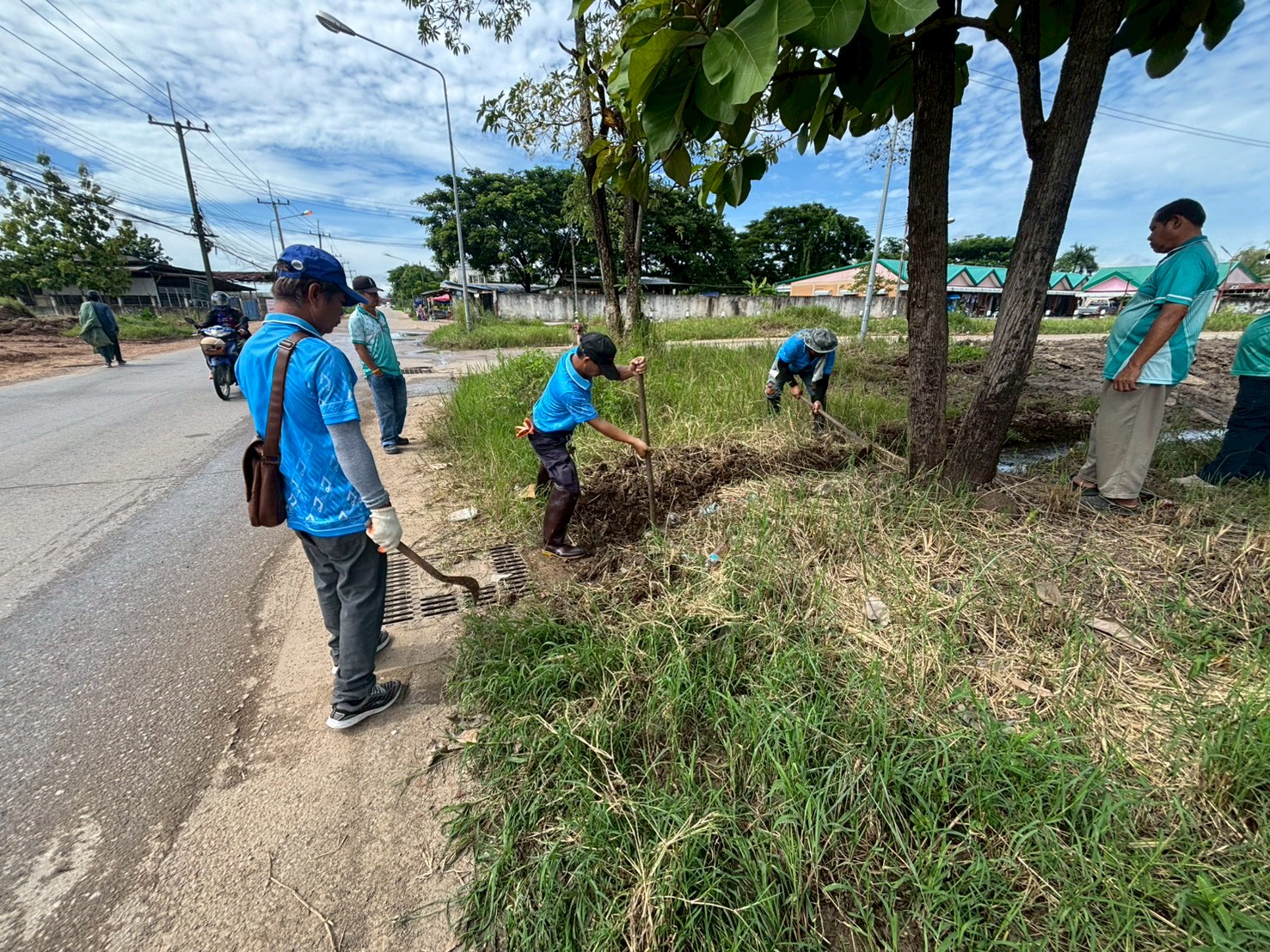 2. ได้เข้าดำเนินการขุดร่องระบายน้ำ บริเวณสี่แยกสะพานคลองชลประทาน ชุมชนอิสลาม
